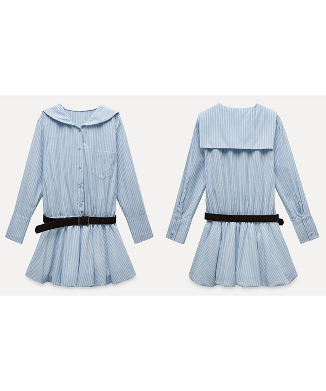 セーラーカラーが目を惹く、爽やかなストライプ柄のワンピースです。