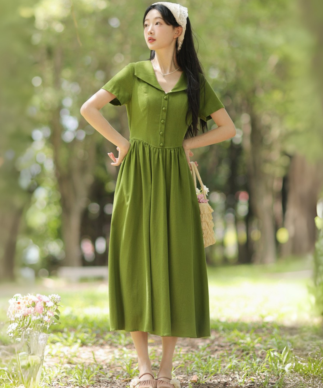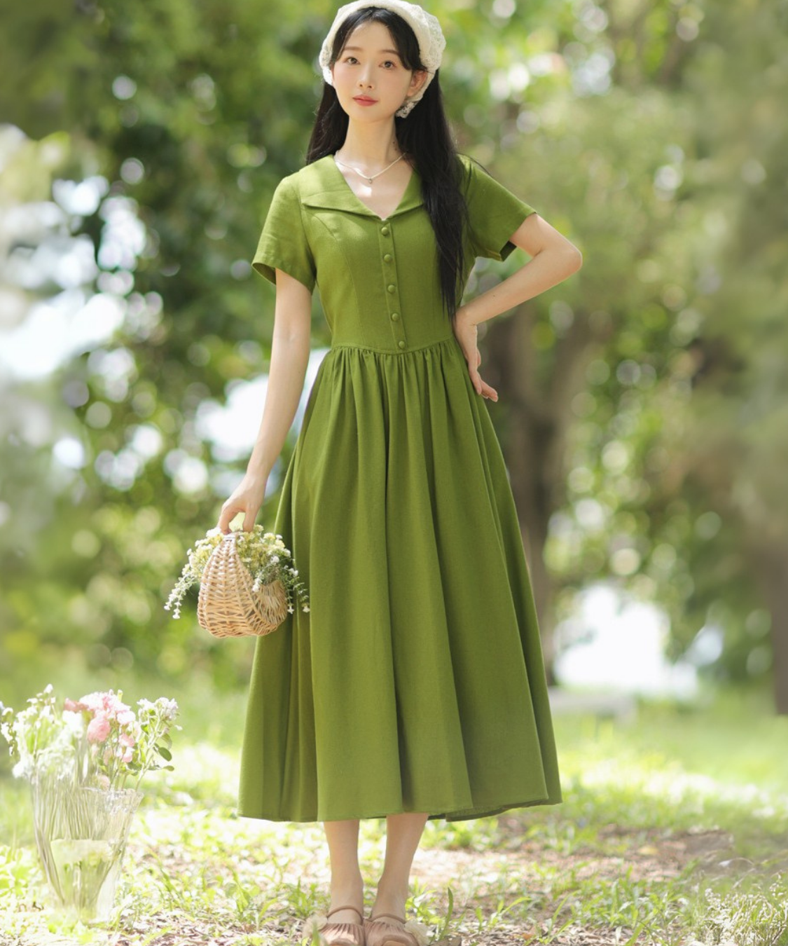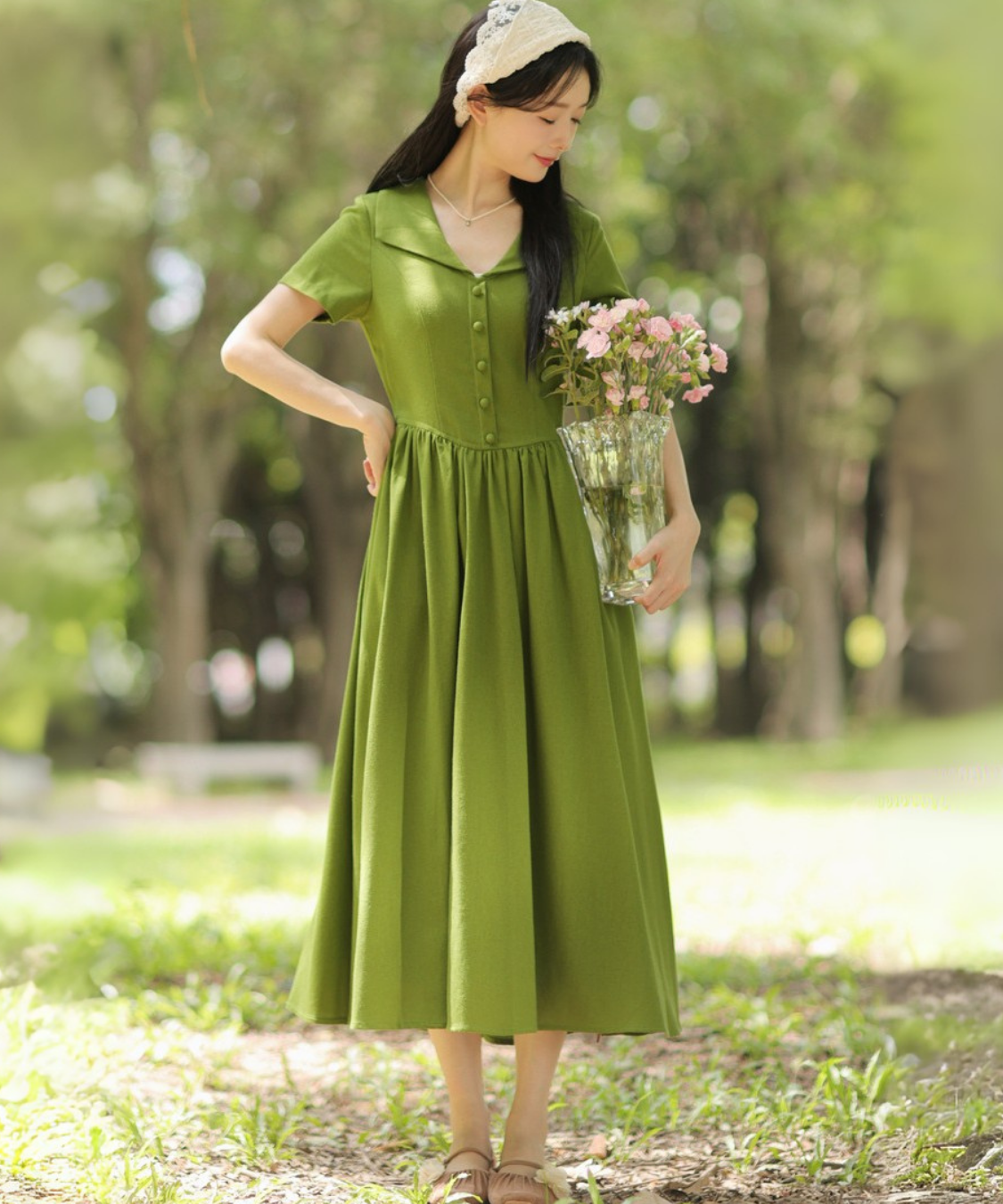 くるみボタンとふんわり広がるシルエットが可愛らしさをプラス♡