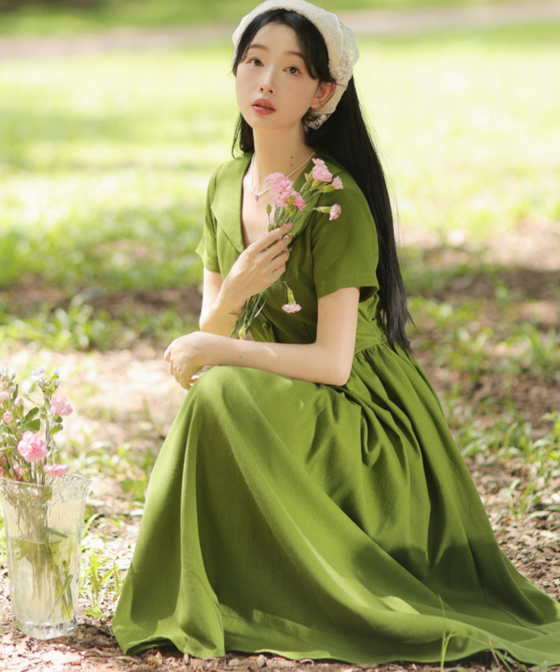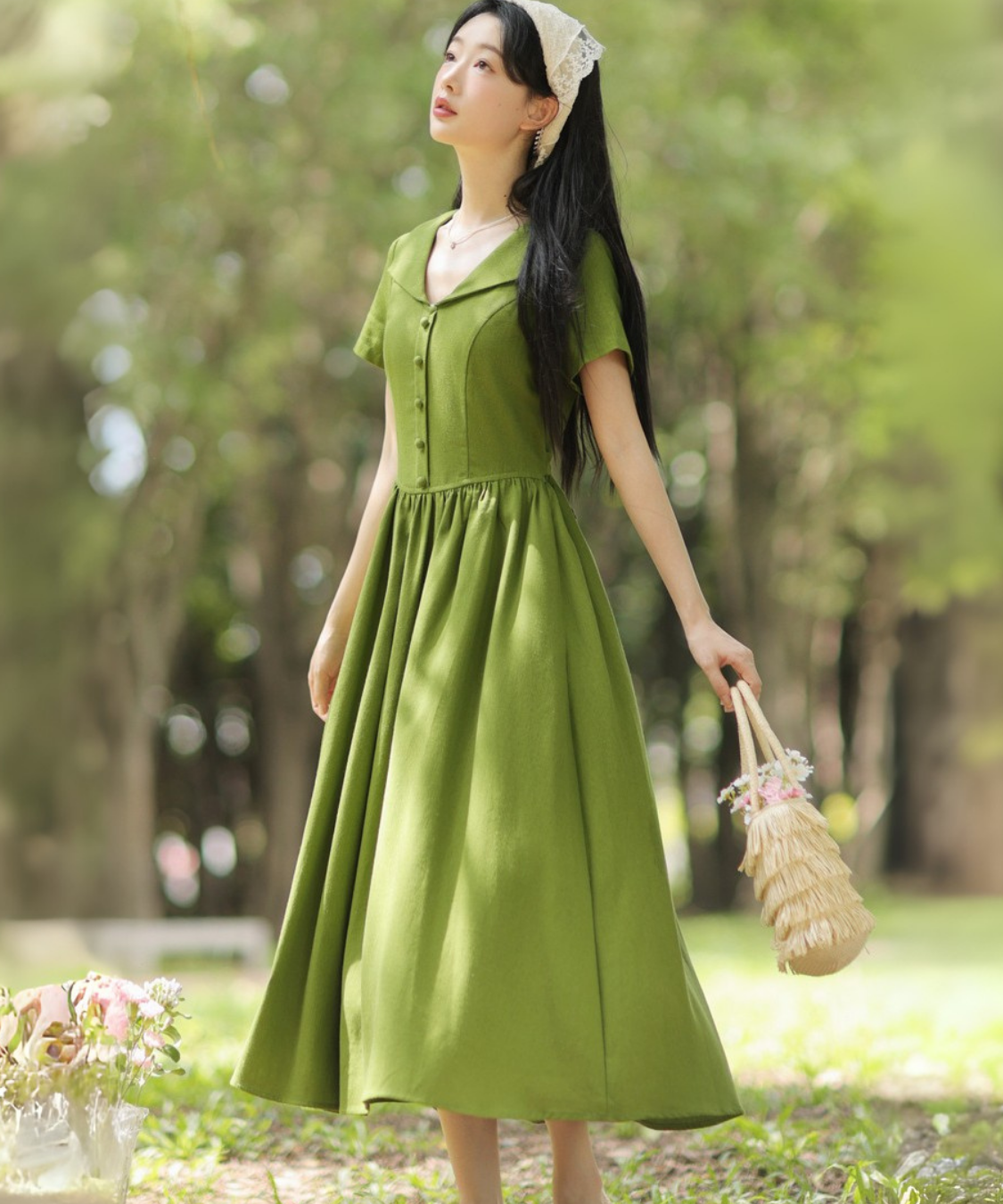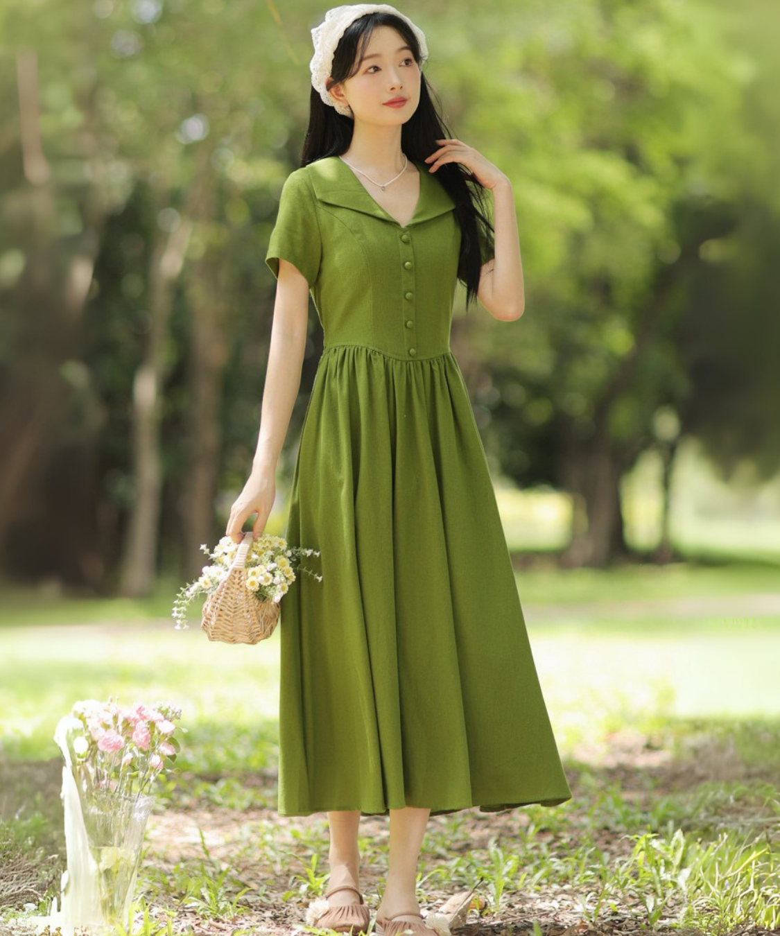 くるみボタンとふんわり広がるシルエットが可愛らしさをプラス♡