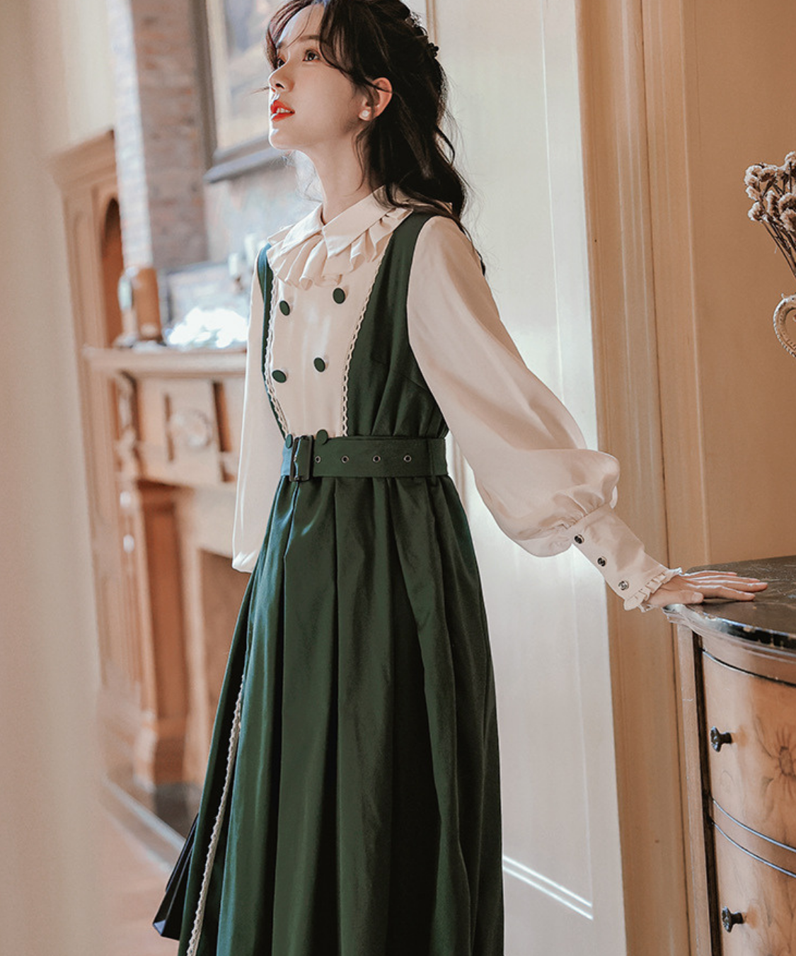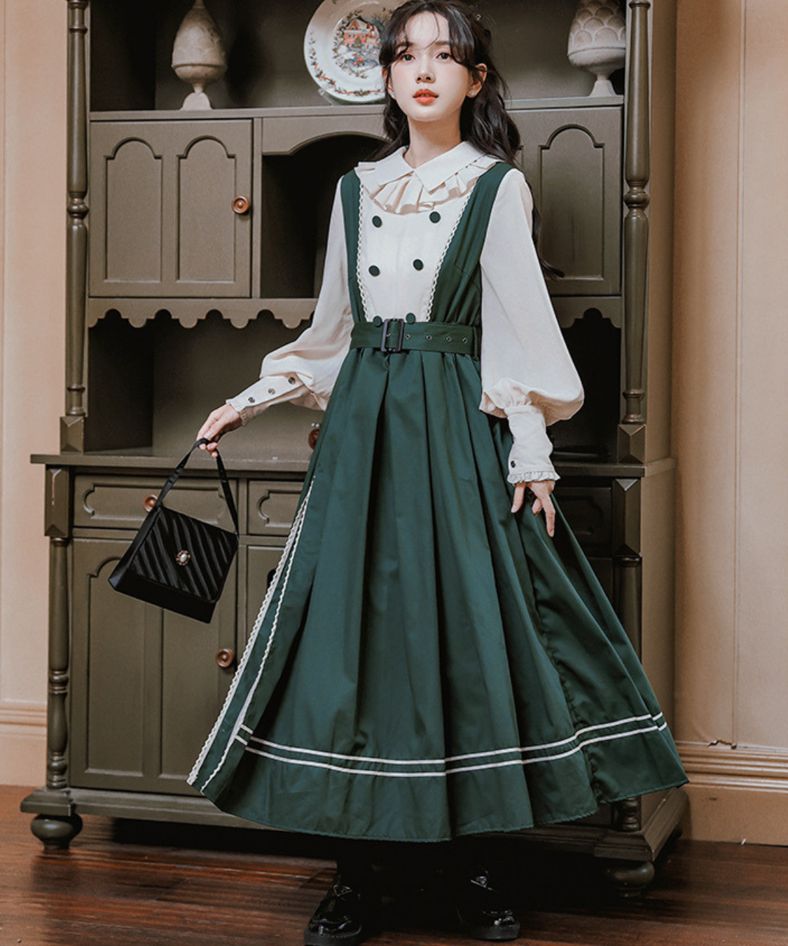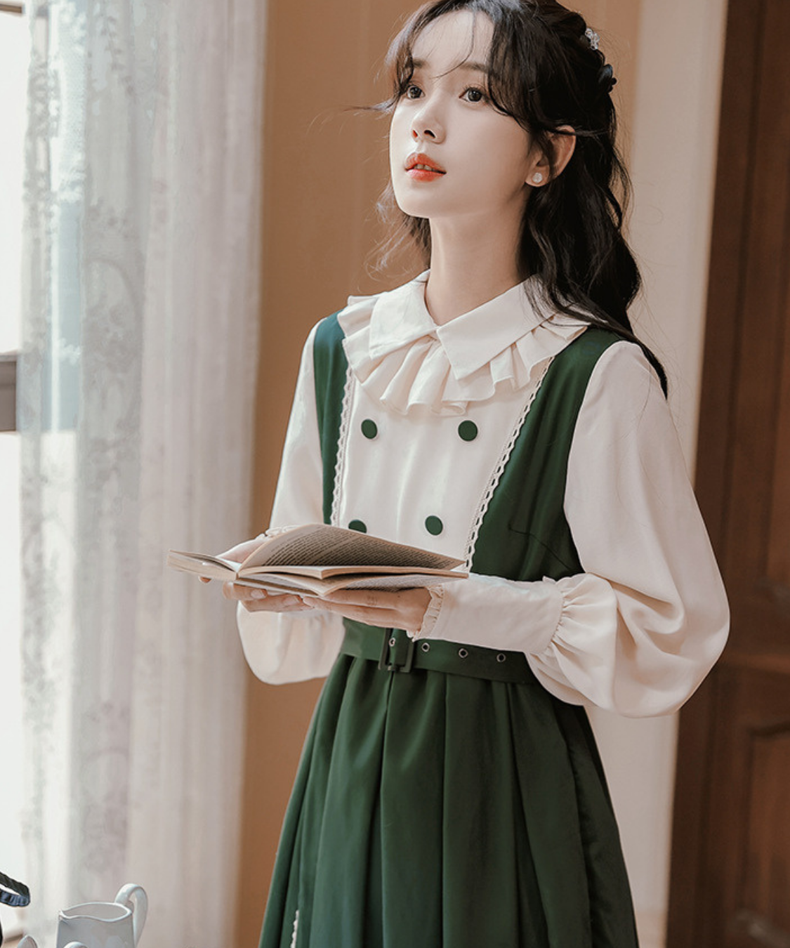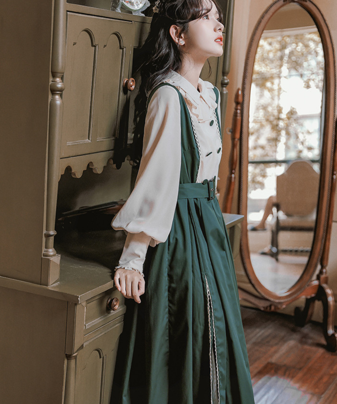 襟と袖のデザインがレトロでツボ。紅茶と本が似合う休日にぴったりのワンピースです☕