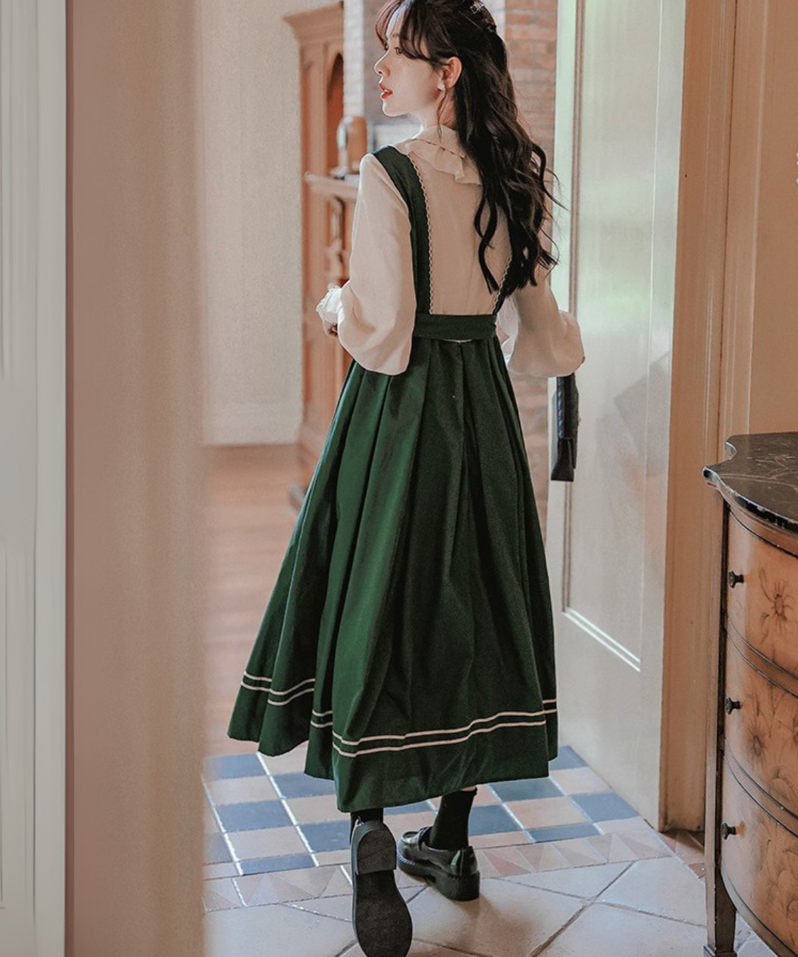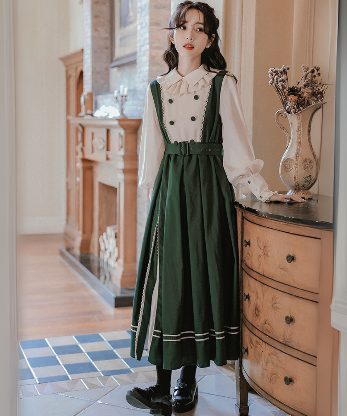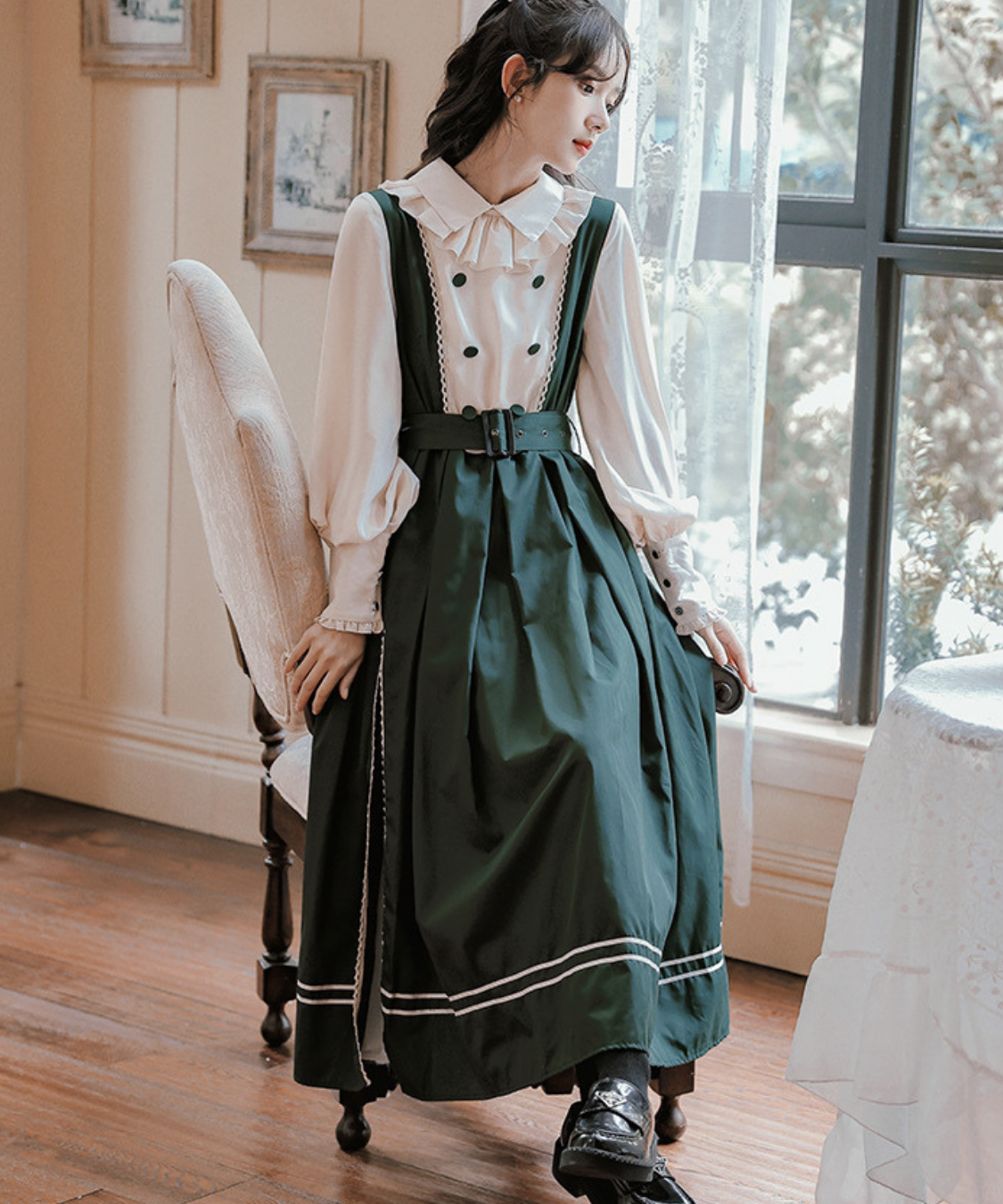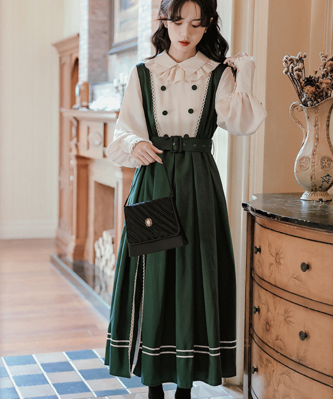 襟と袖のデザインがレトロでツボ。紅茶と本が似合う休日にぴったりのワンピースです☕