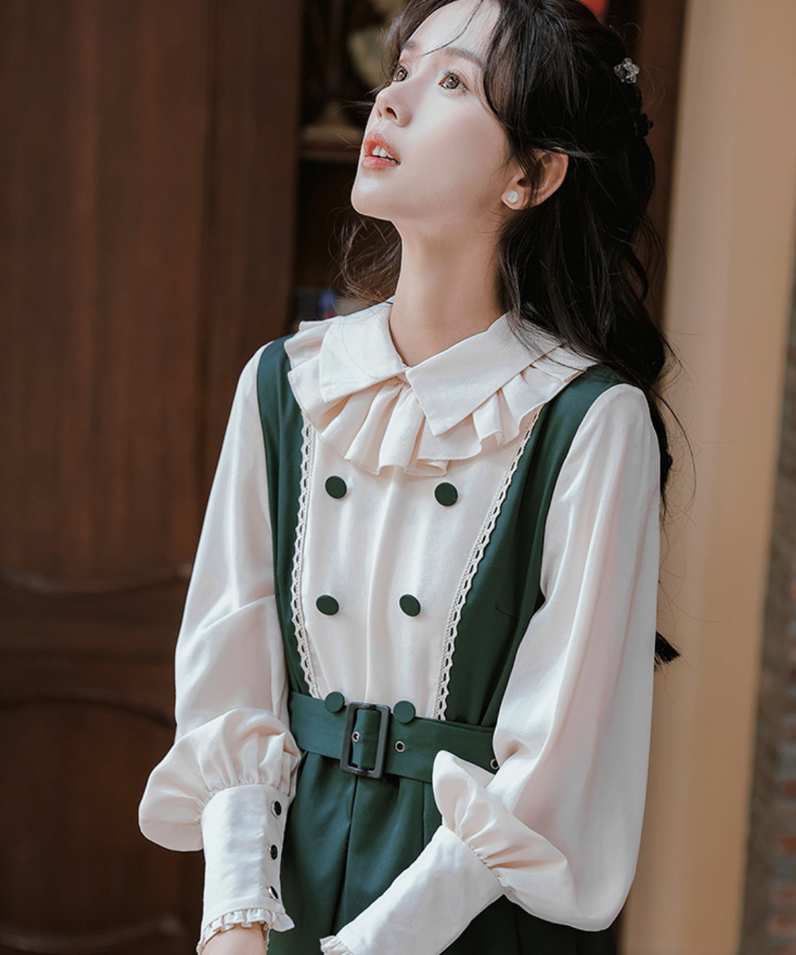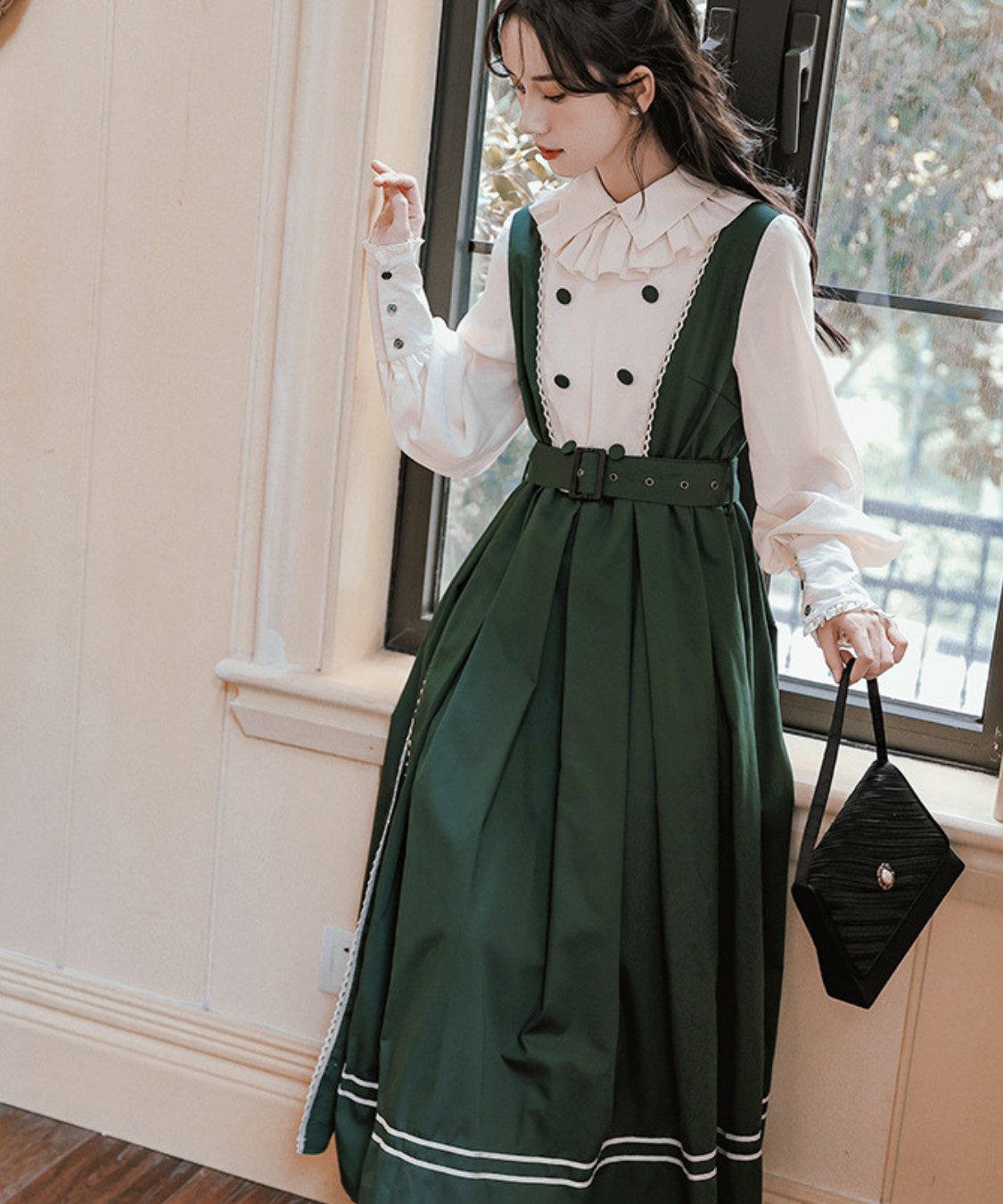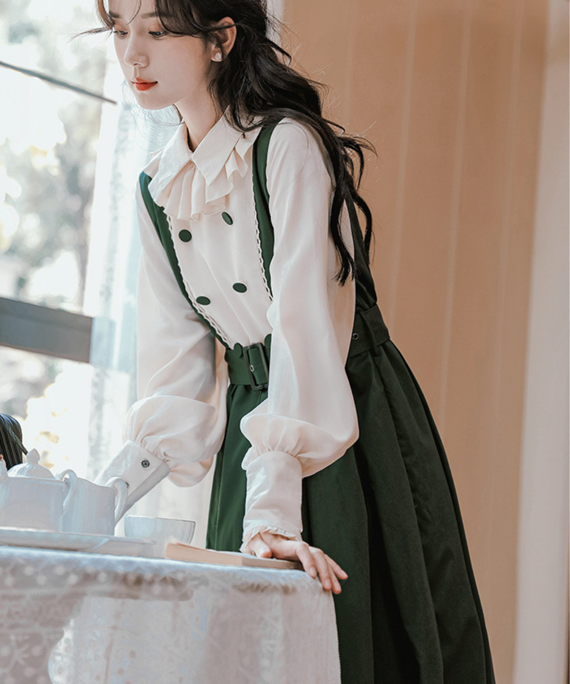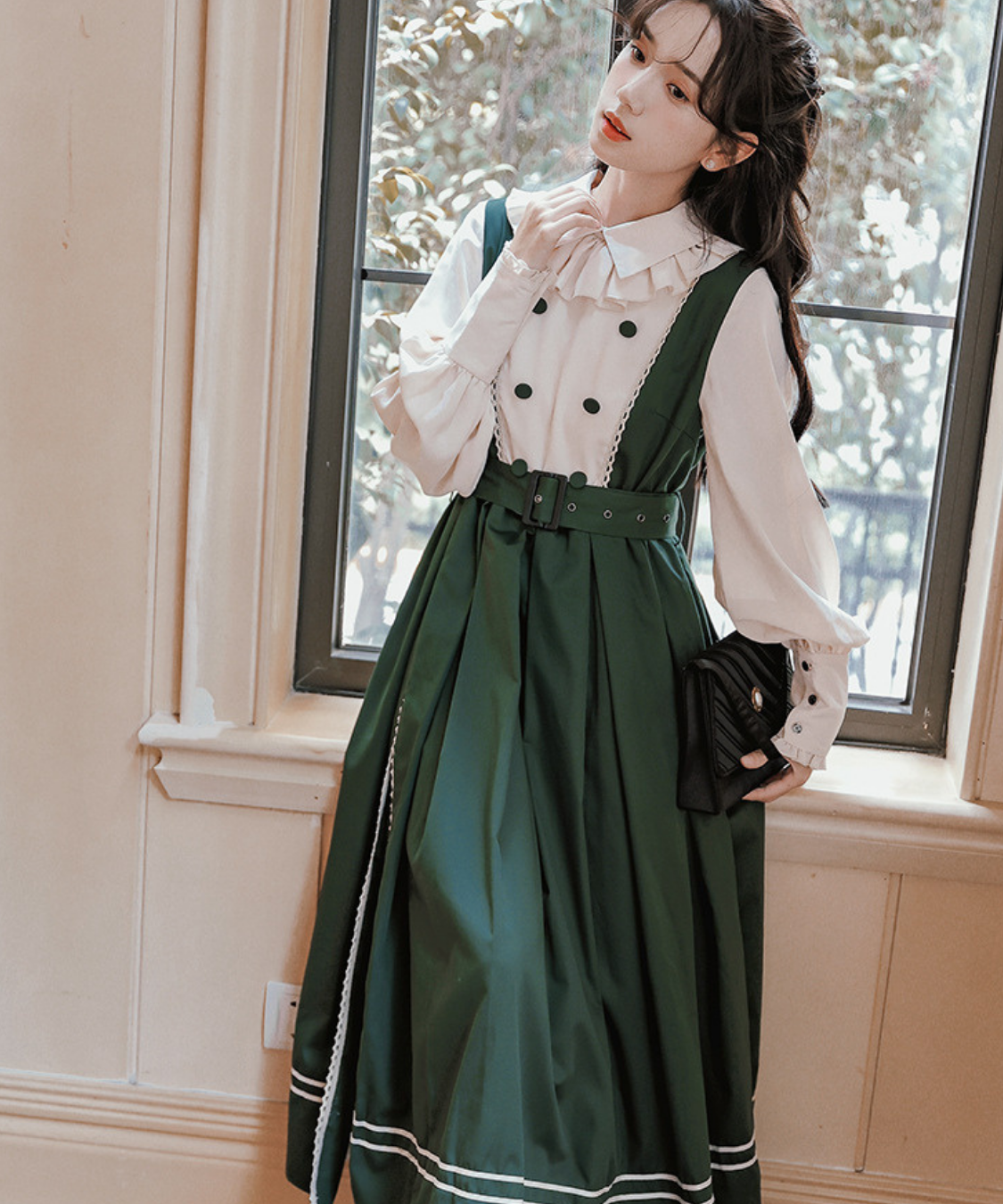 襟と袖のデザインがレトロでツボ。紅茶と本が似合う休日にぴったりのワンピースです☕
