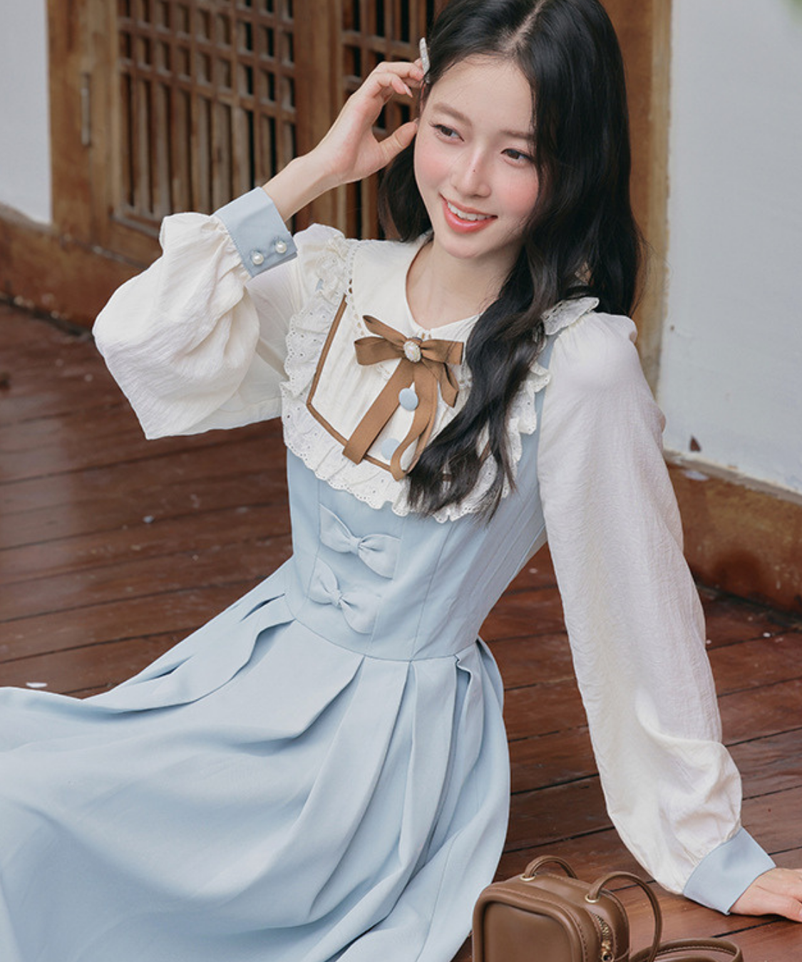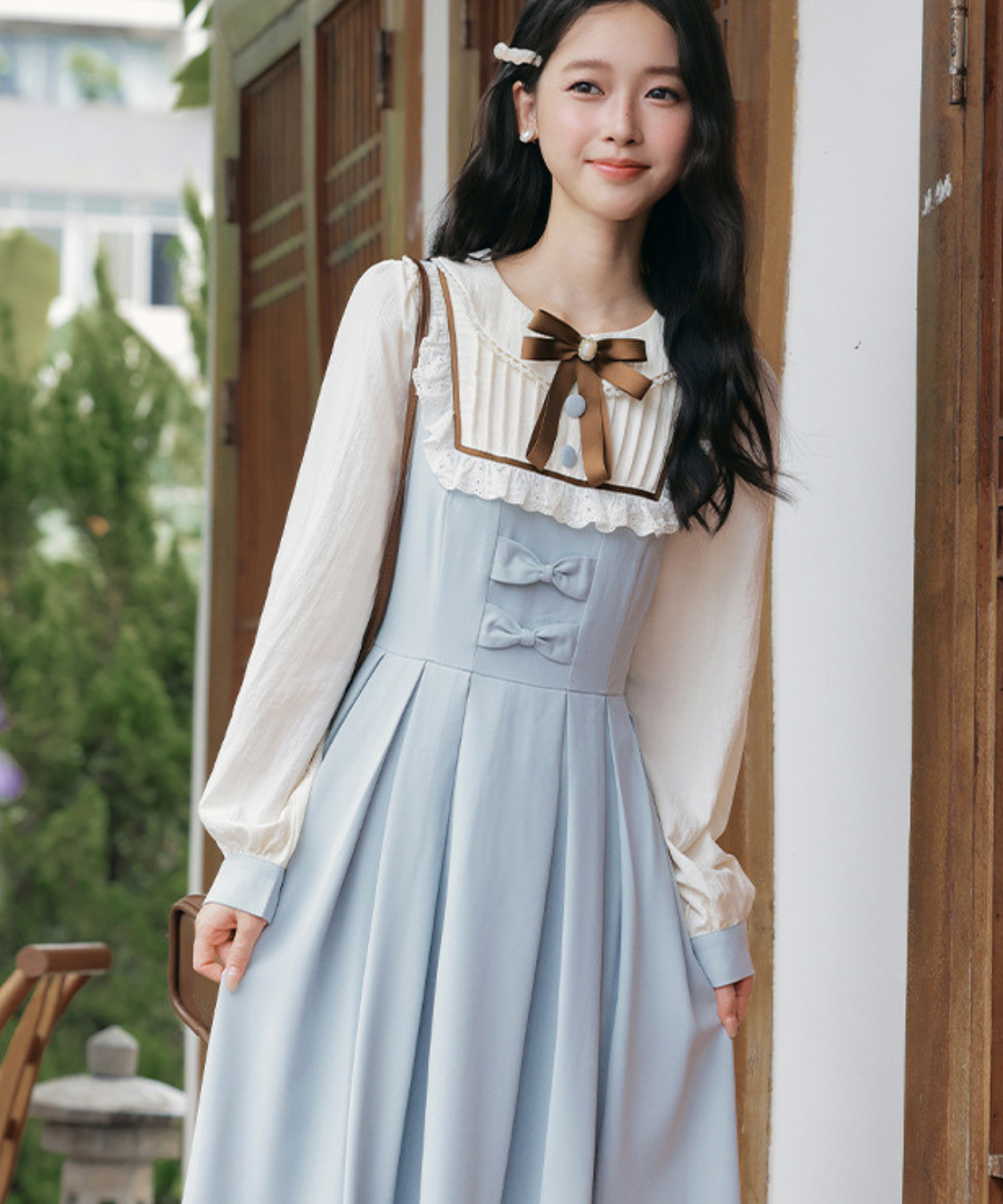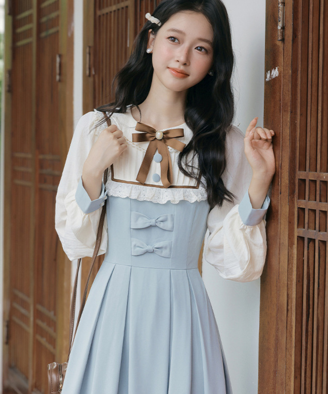 大きめのリボンタイやレースの切替が乙女心をくすぐります♡