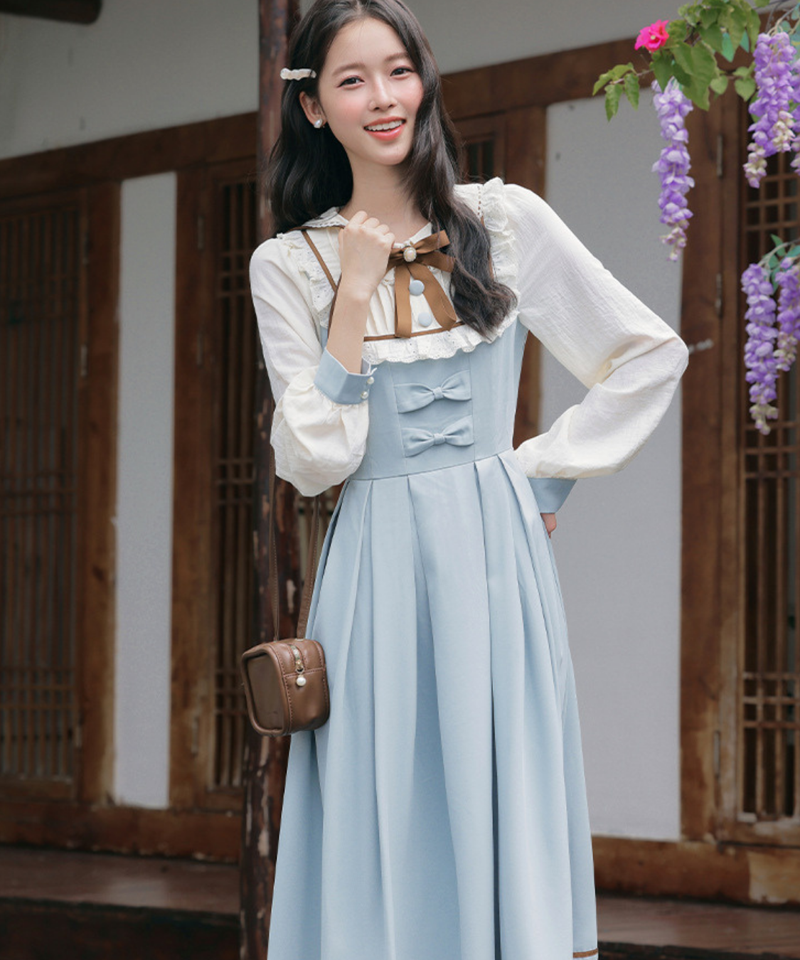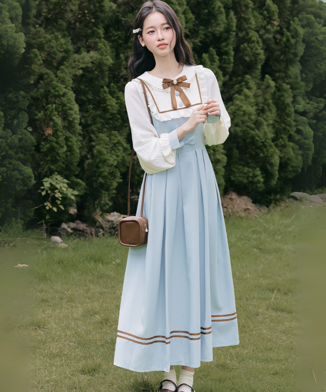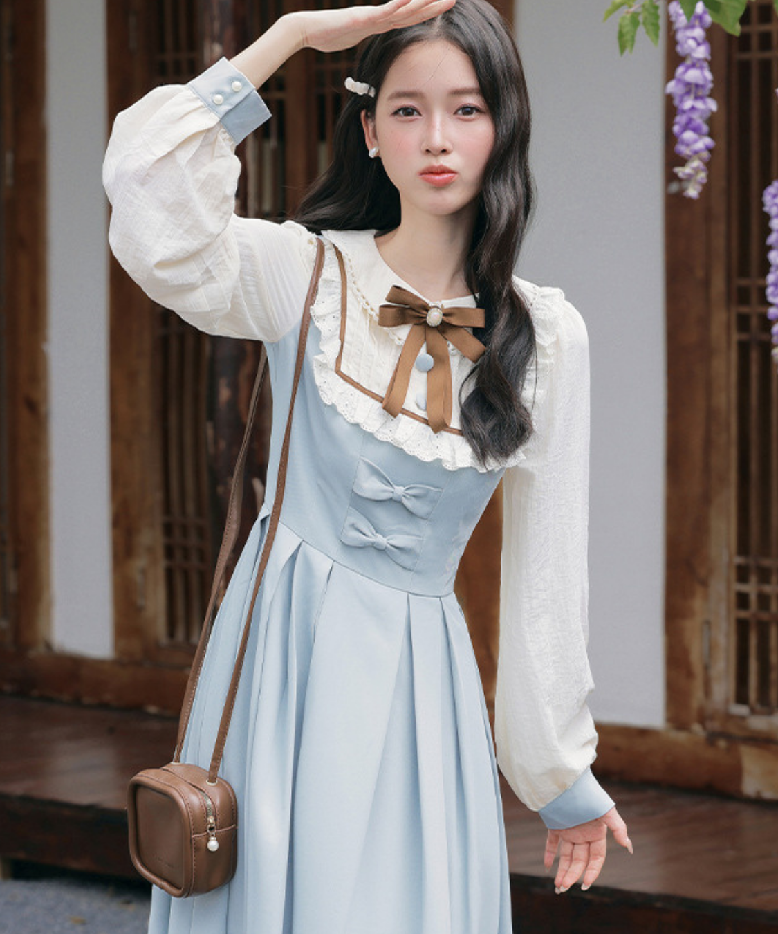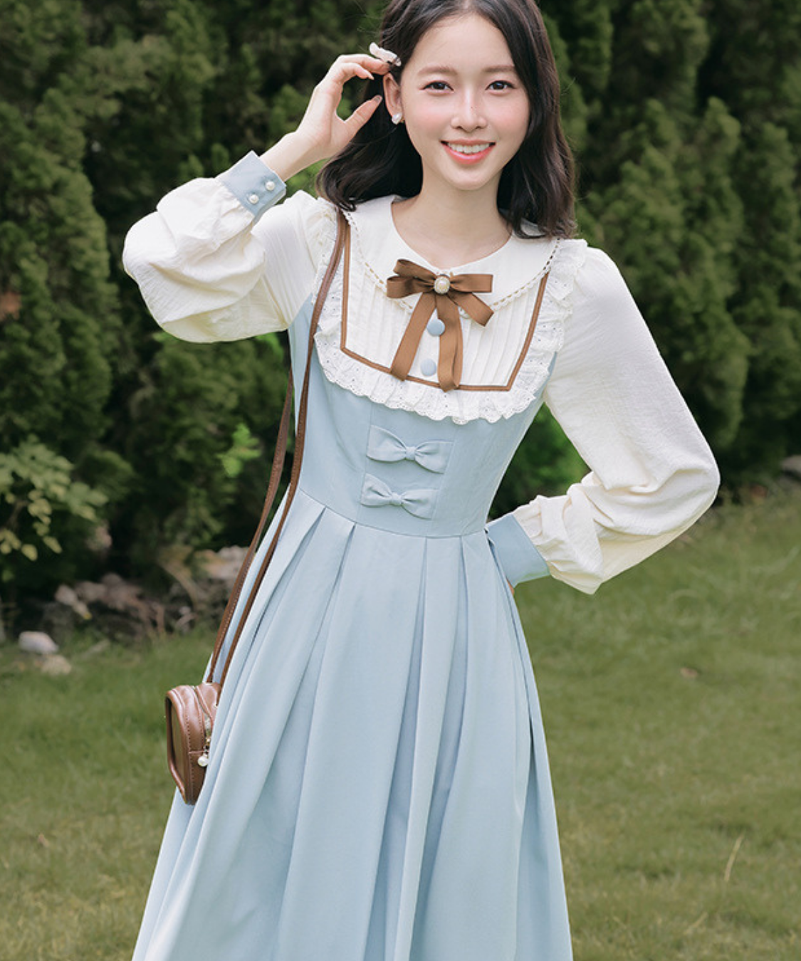 大きめのリボンタイやレースの切替が乙女心をくすぐります♡