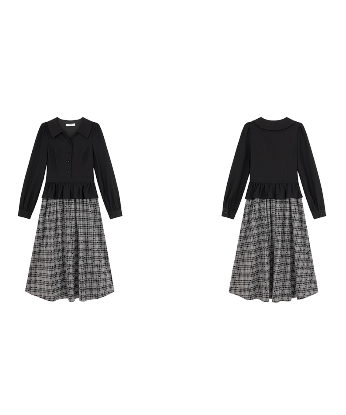 ペプラム切替チェック柄レイヤード風ワンピース