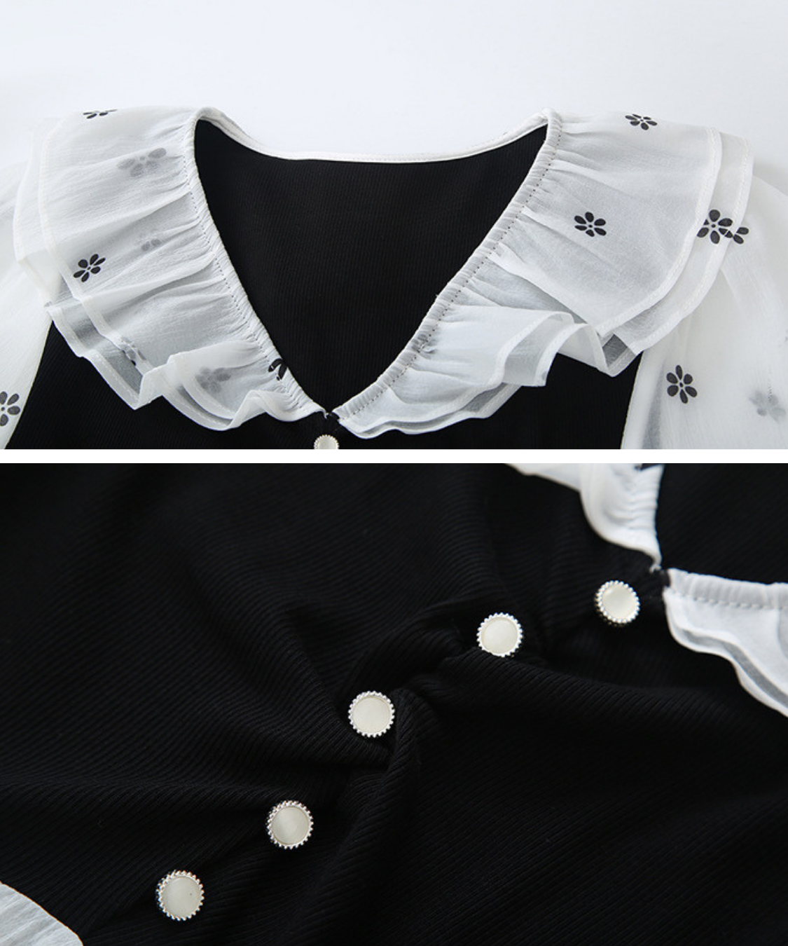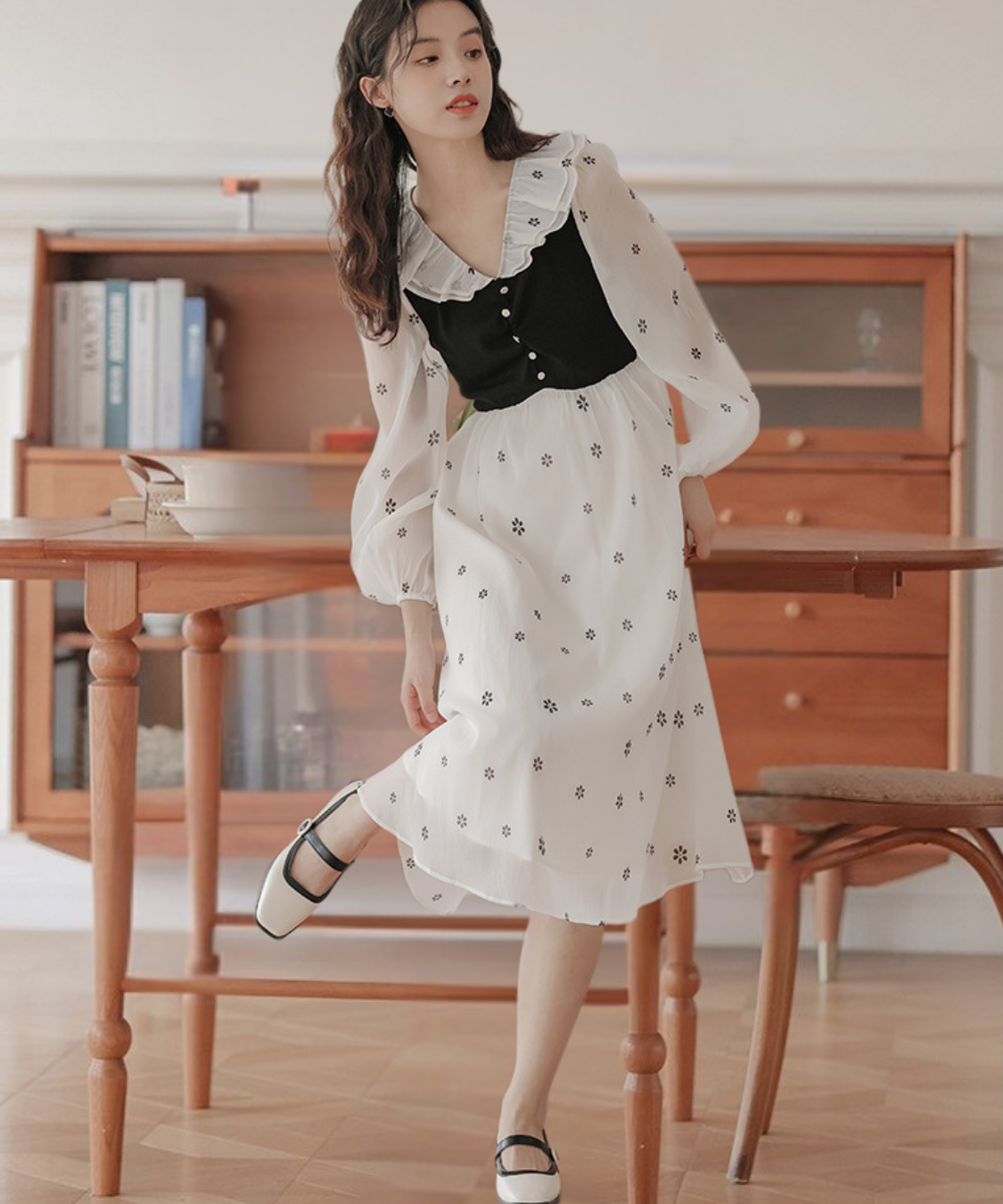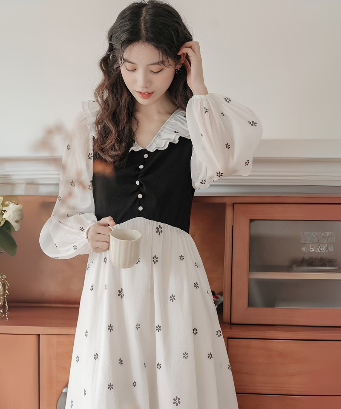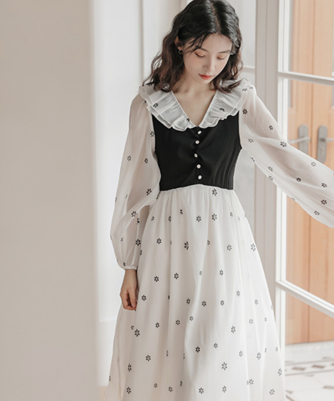小花柄とフリル襟の組み合わせが、甘く上品な印象に仕上げてくれます♡