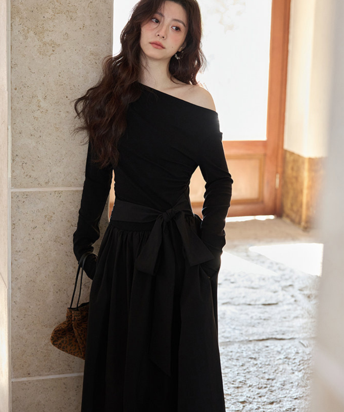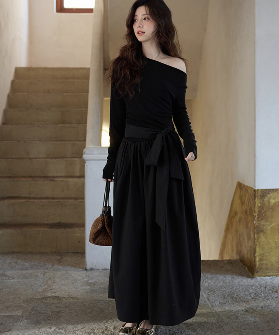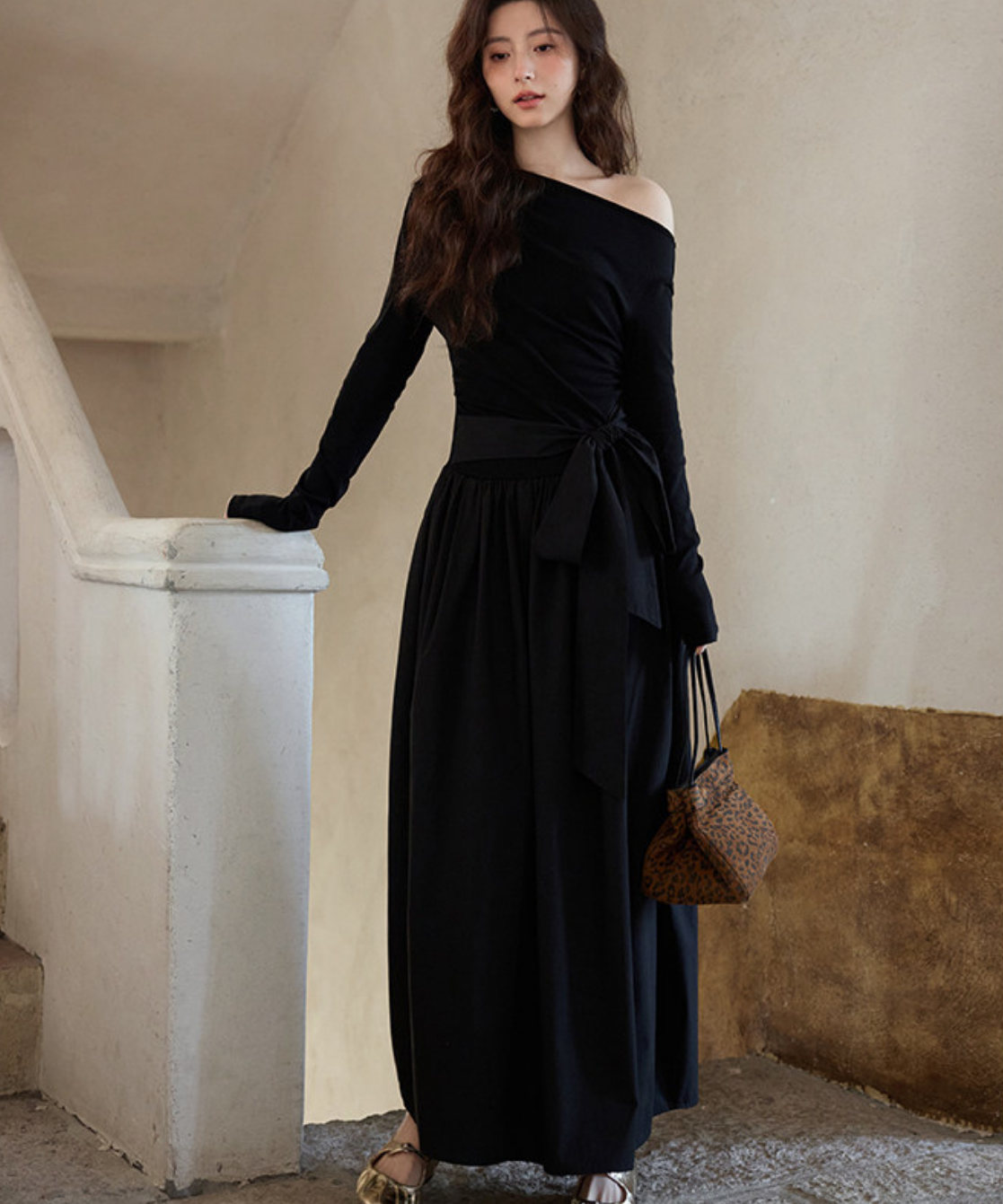 大胆なワンショルダーデザインが女性らしさを引き立てるロングワンピースです。