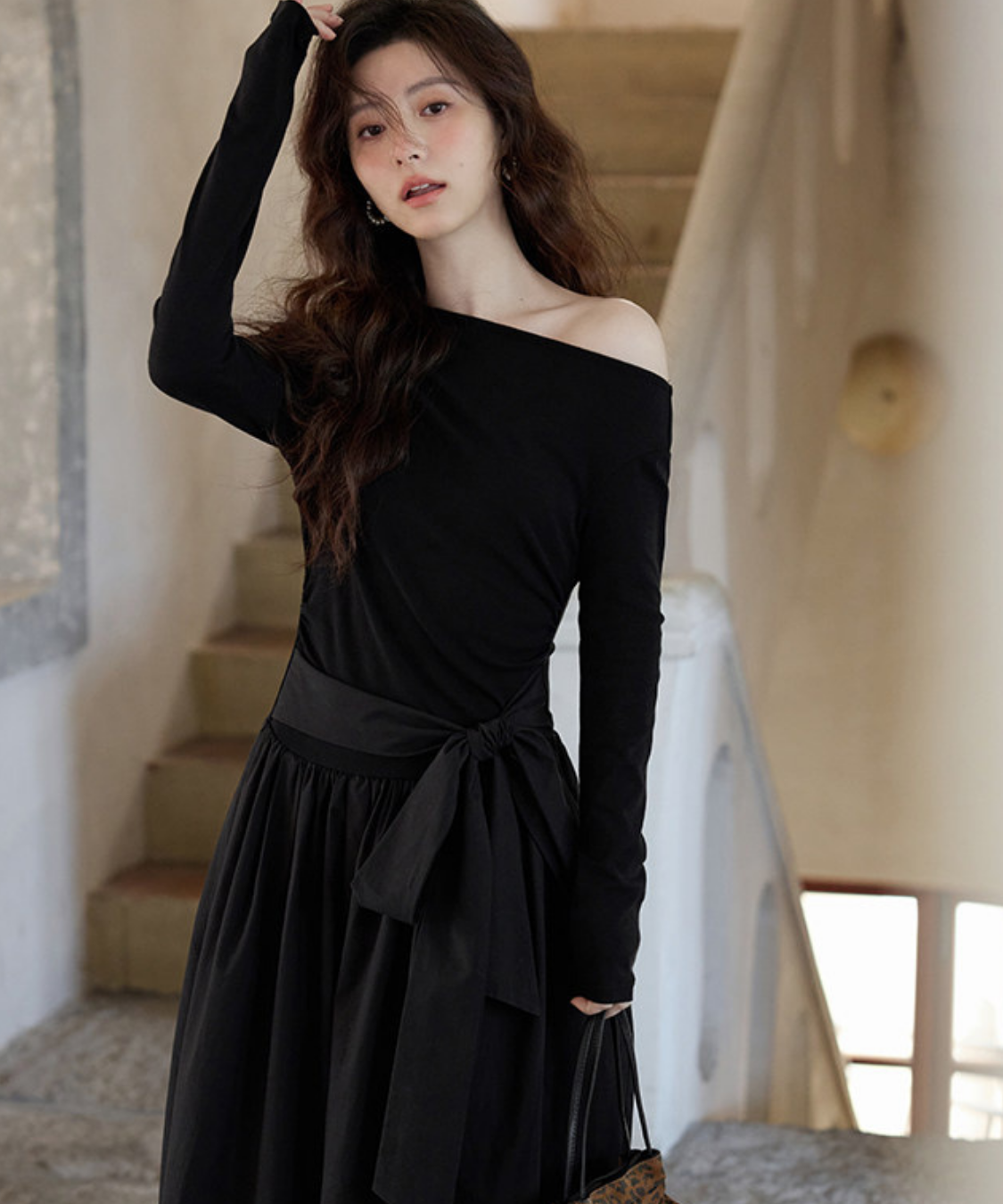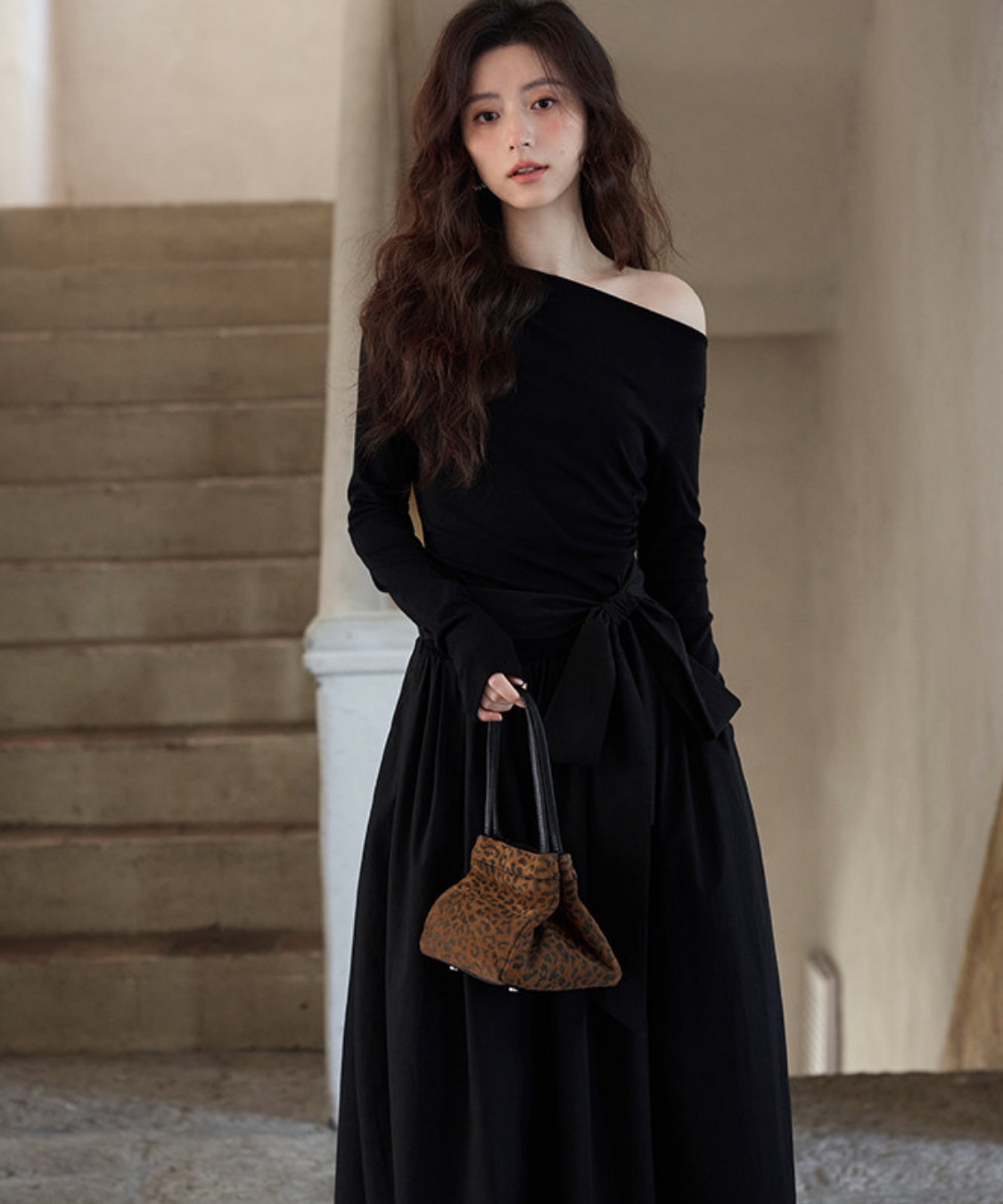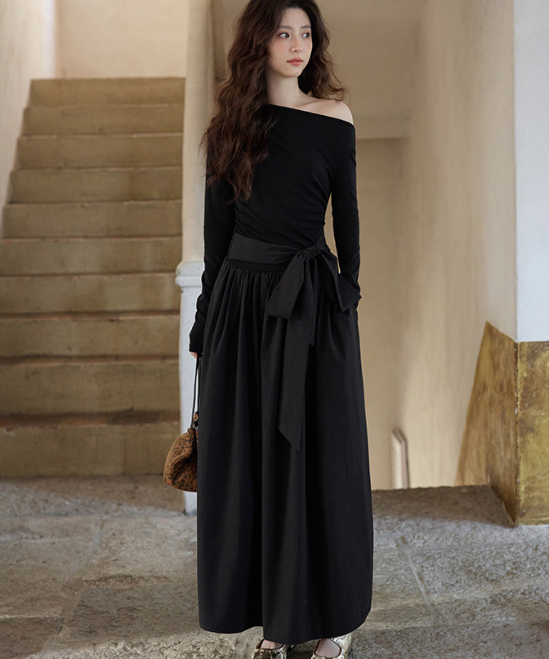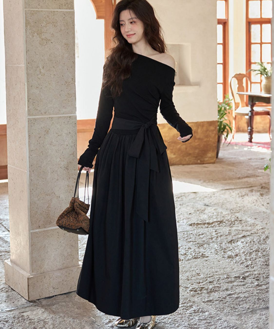 大胆なワンショルダーデザインが女性らしさを引き立てるロングワンピースです。