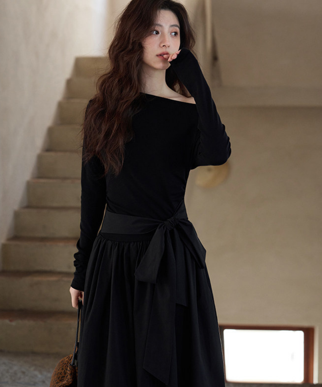 ウエストのリボンがアクセントになり、メリハリのあるシルエットを叶えます♡