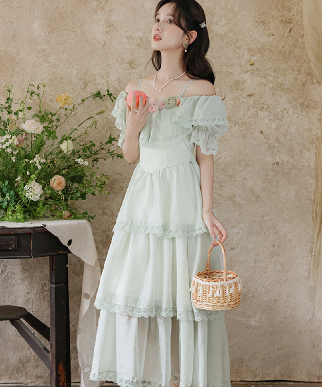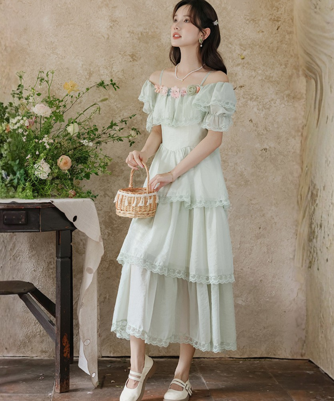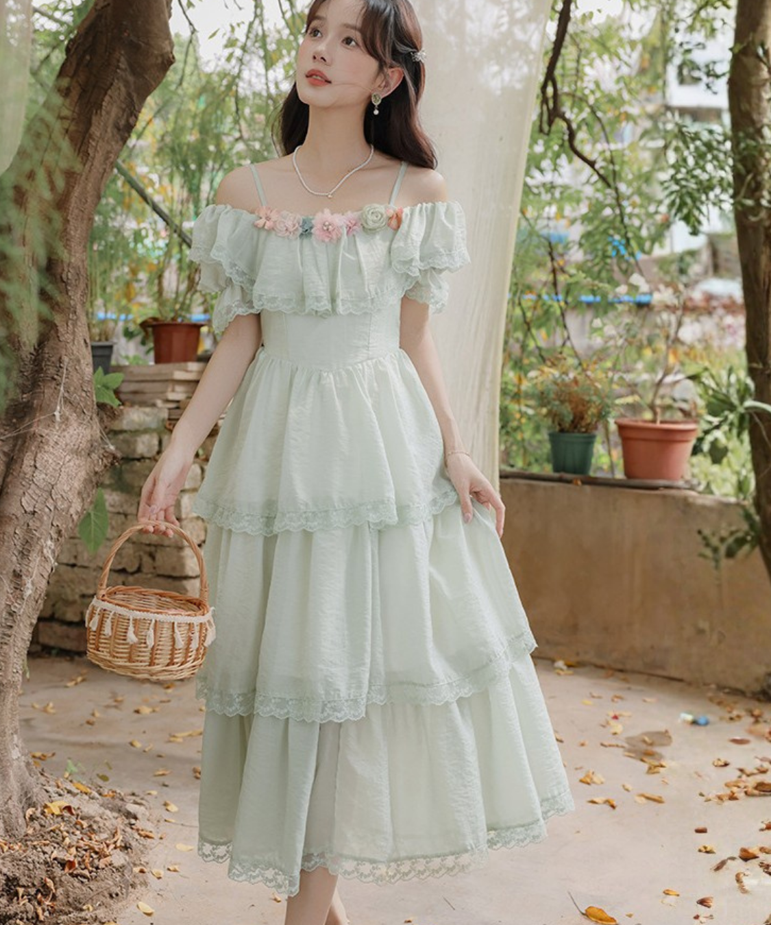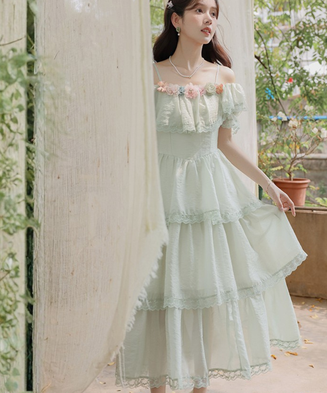 ティアードデザインがふんわり広がり、動くたびに女性らしい雰囲気を引き立ててくれます♡