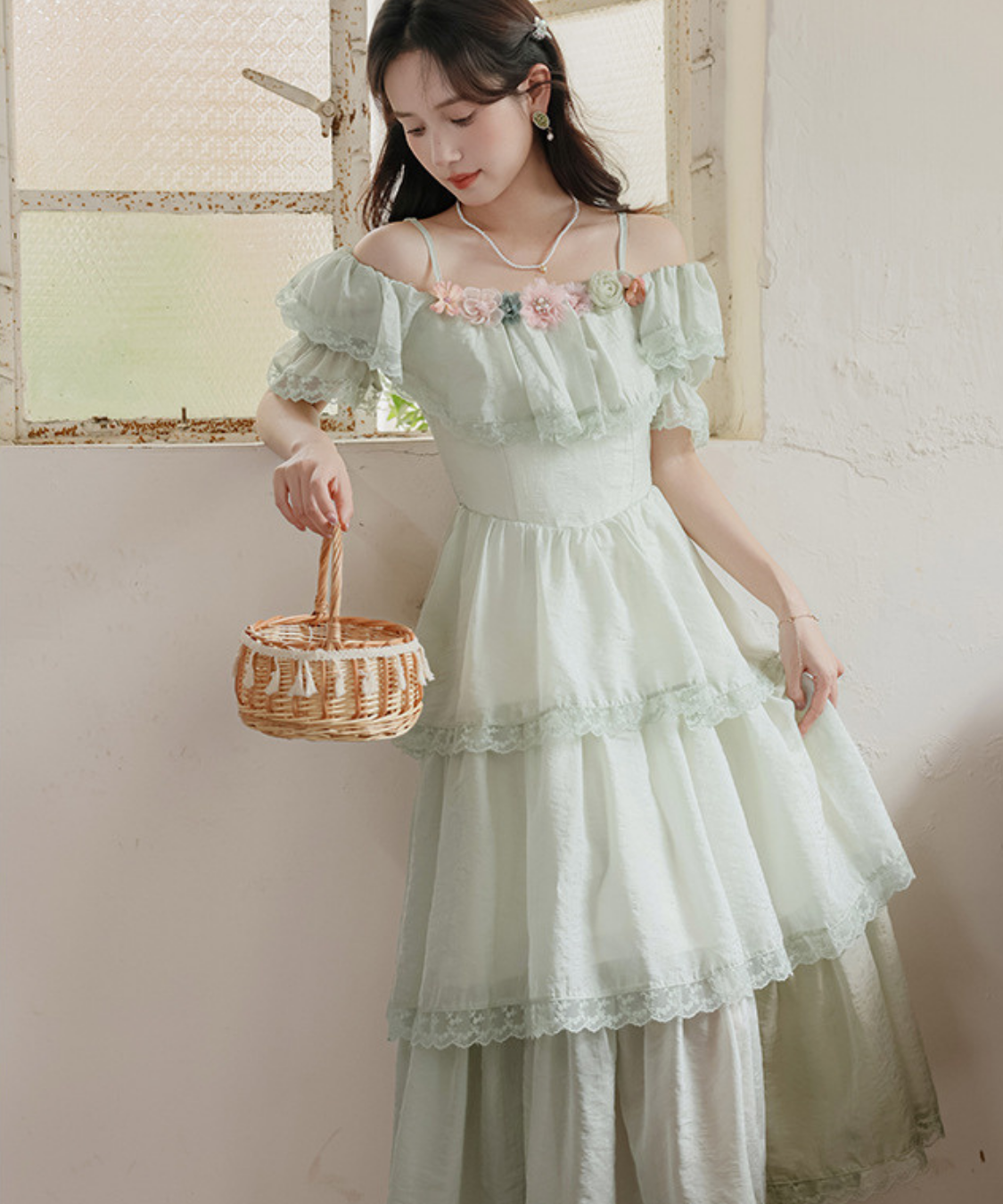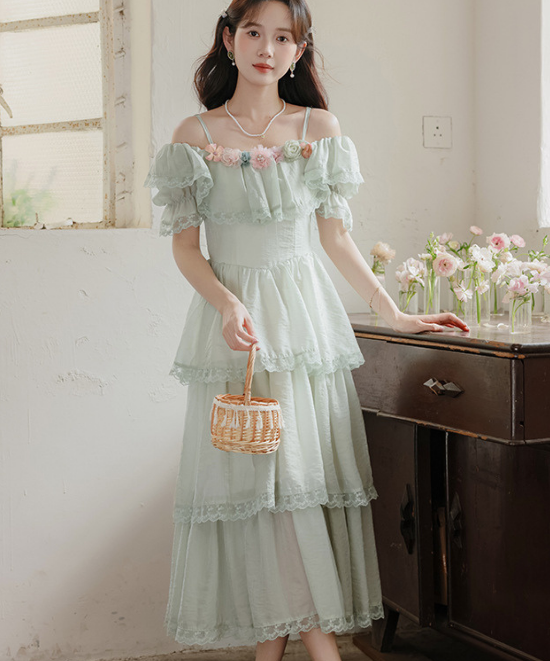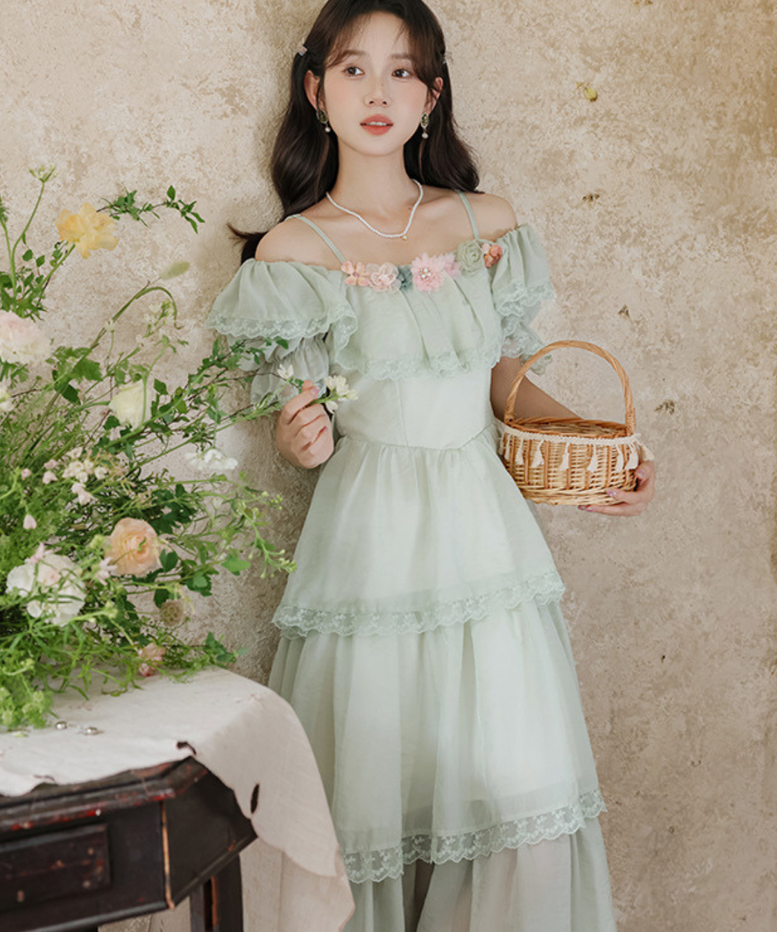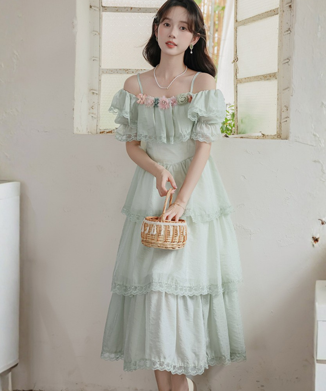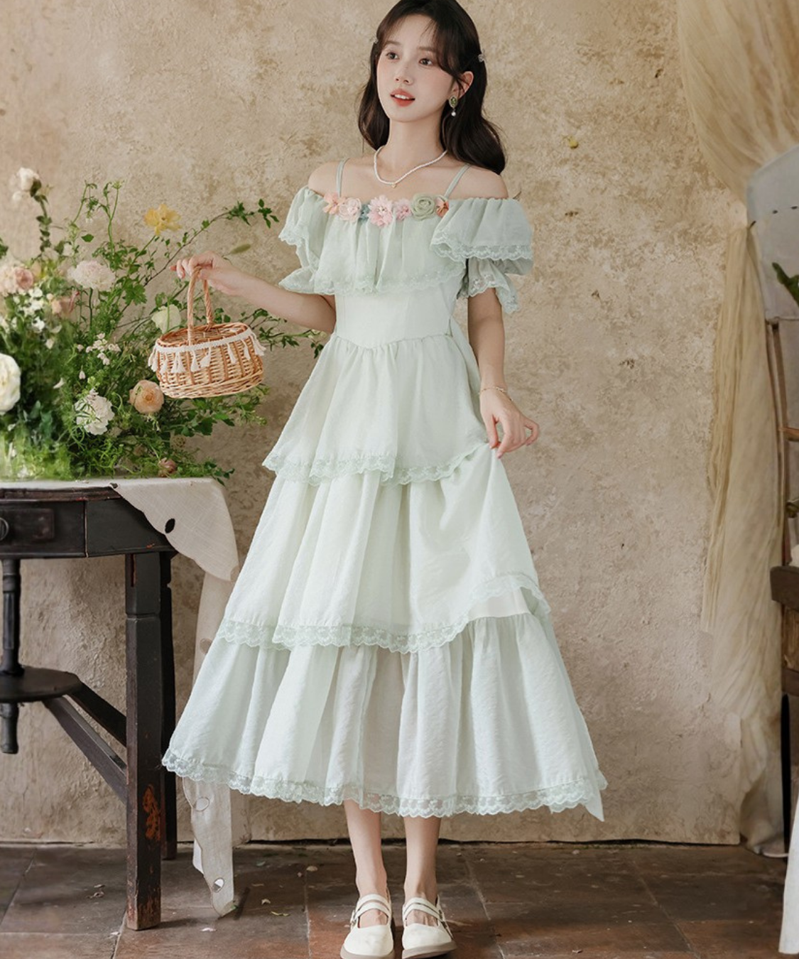 ティアードデザインがふんわり広がり、動くたびに女性らしい雰囲気を引き立ててくれます♡
