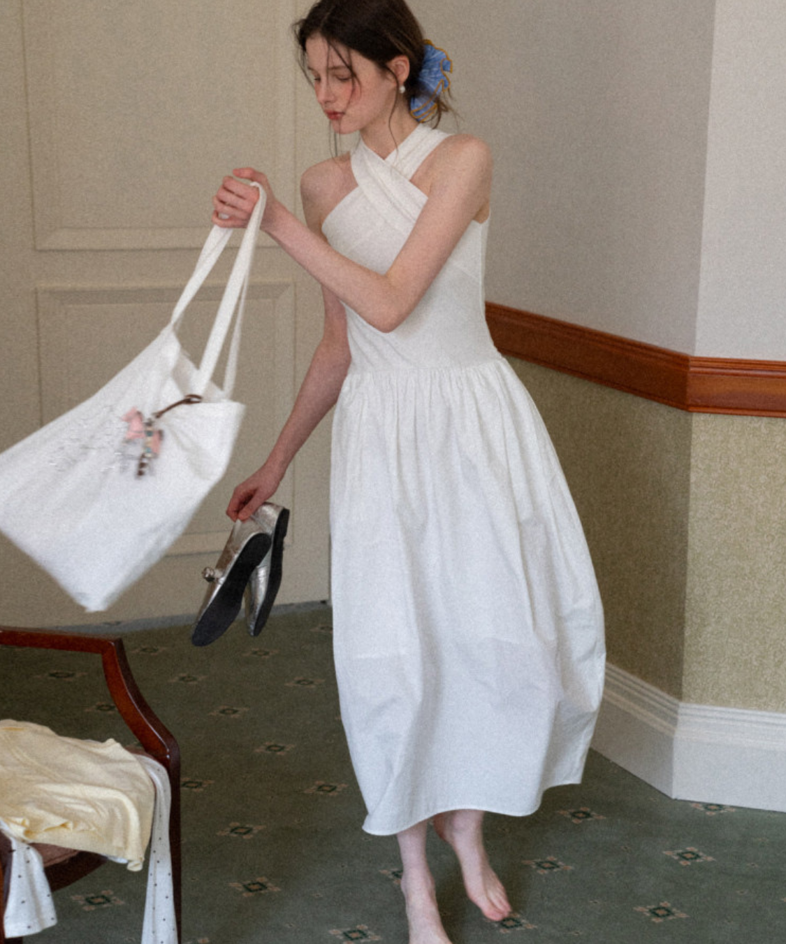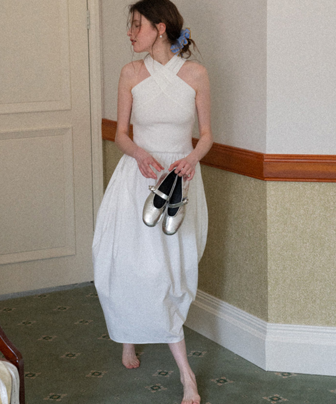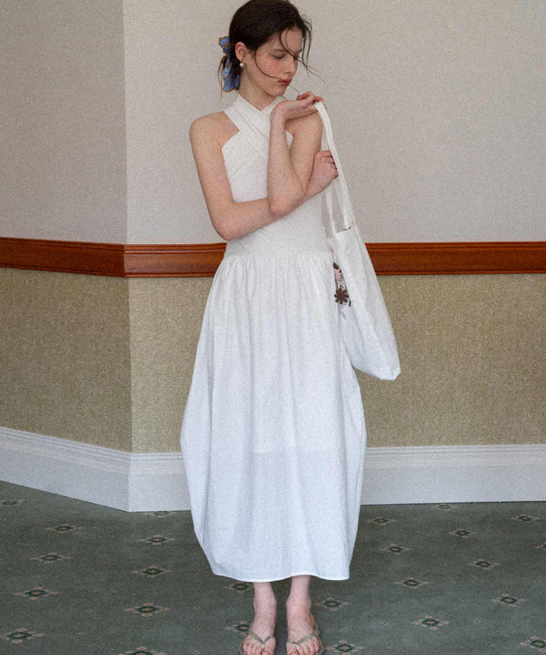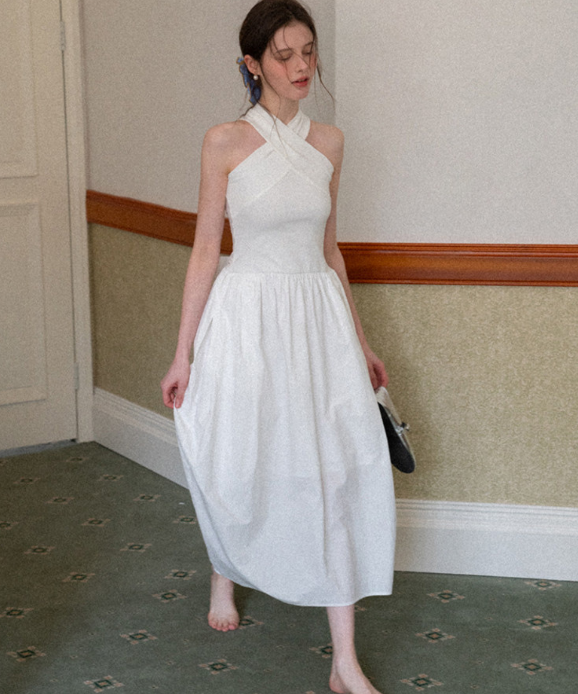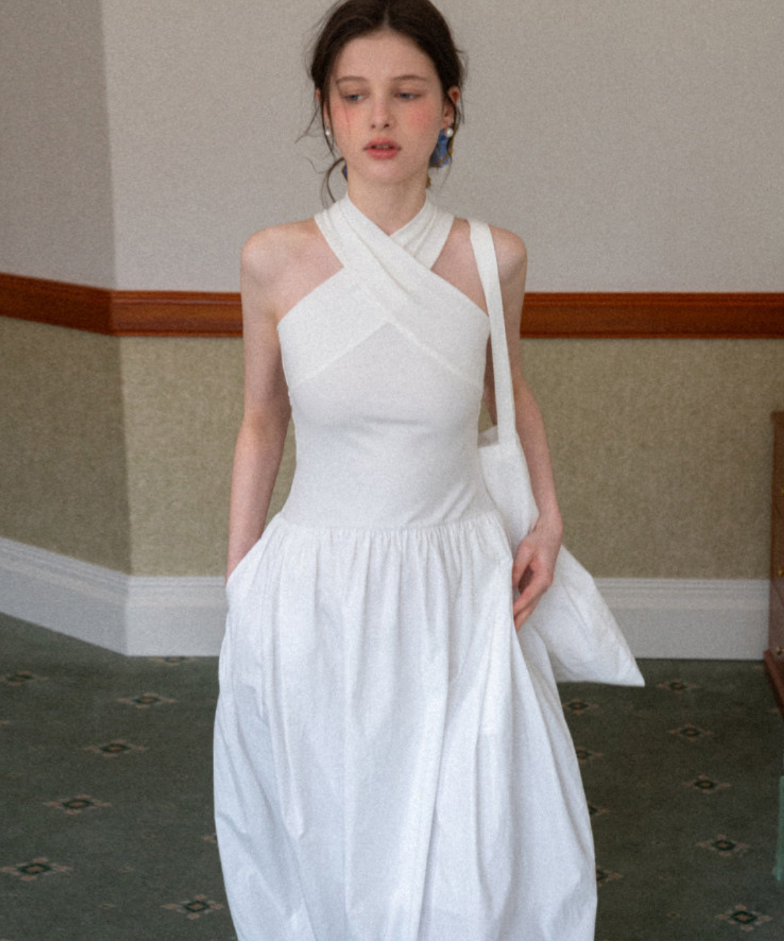 クロスネックフレアロングワンピース