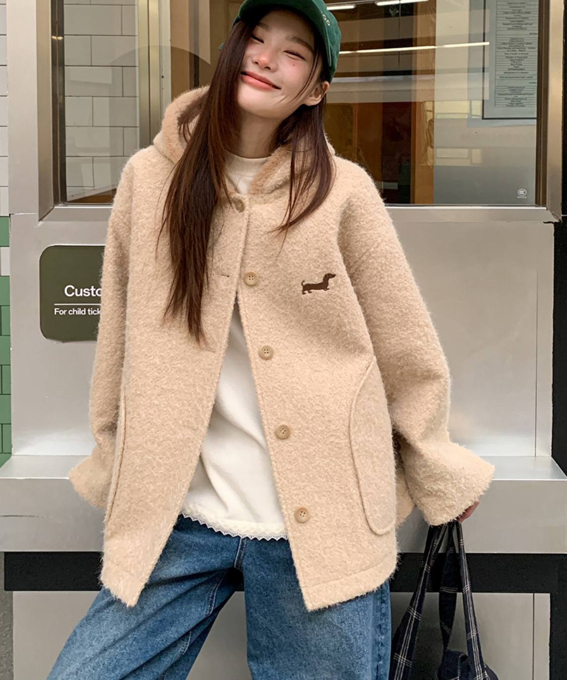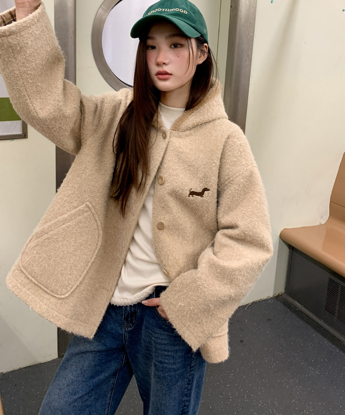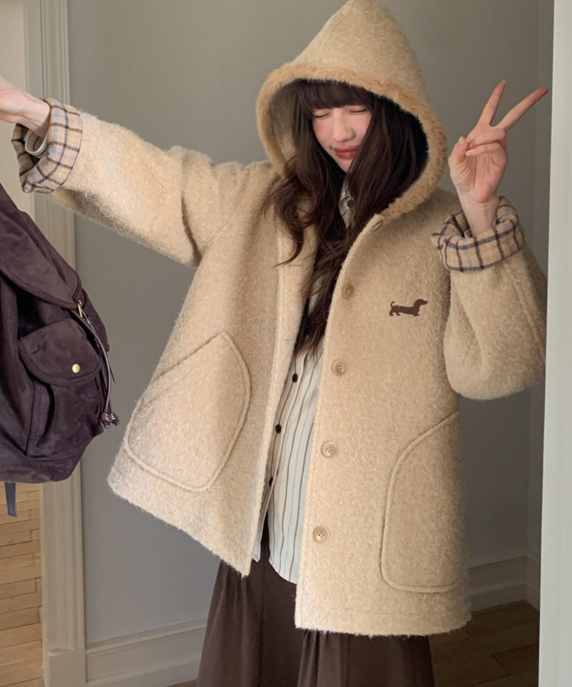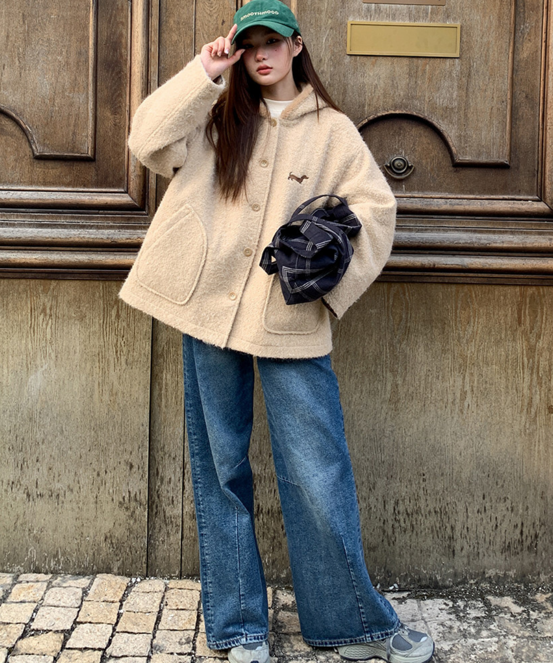 もこもこのボア素材がやさしく包み込んでくれる、ほっこり可愛いフード付きアウターです。