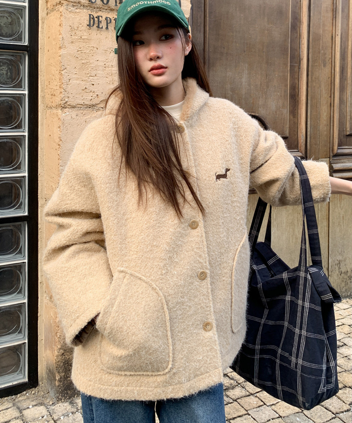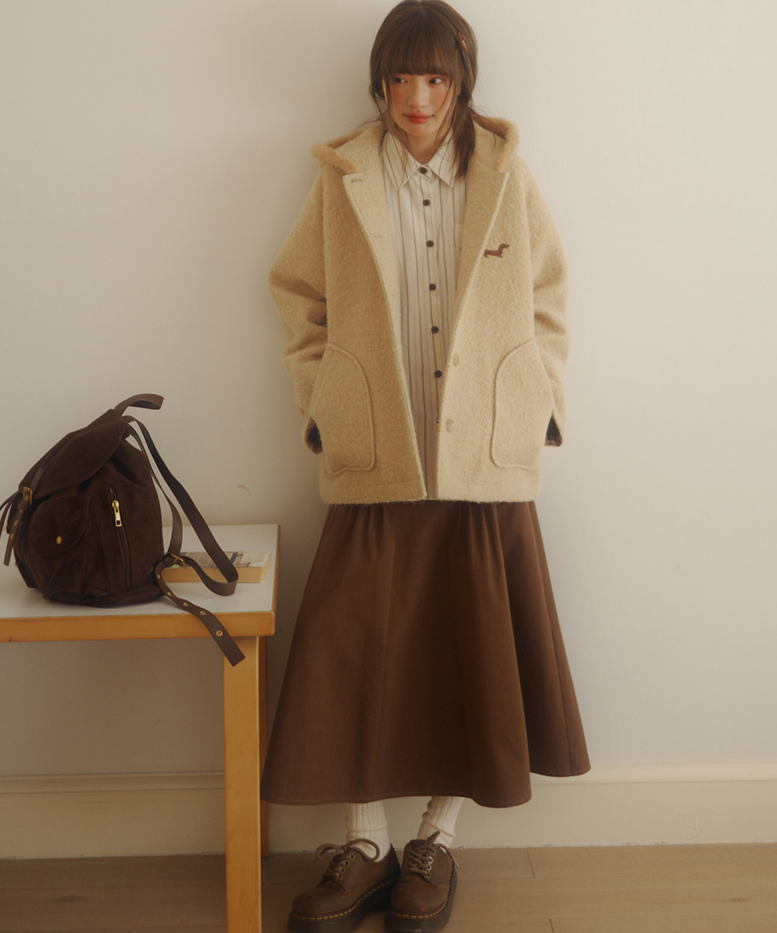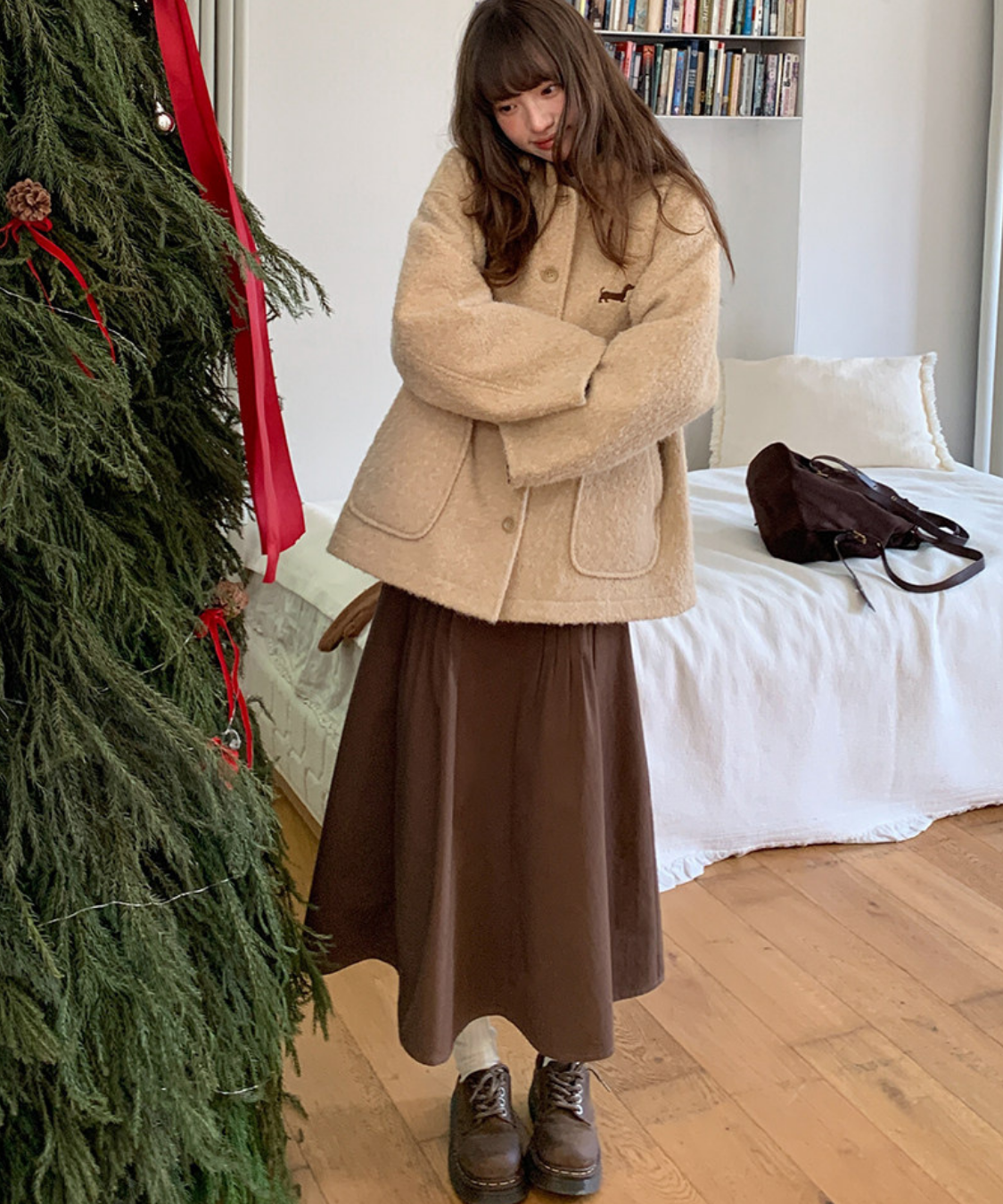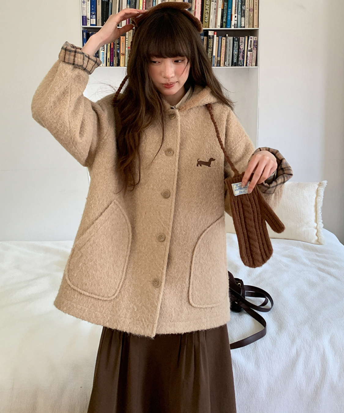 袖口のチェック柄と胸元の犬刺繍が遊び心を添えてくれます♡