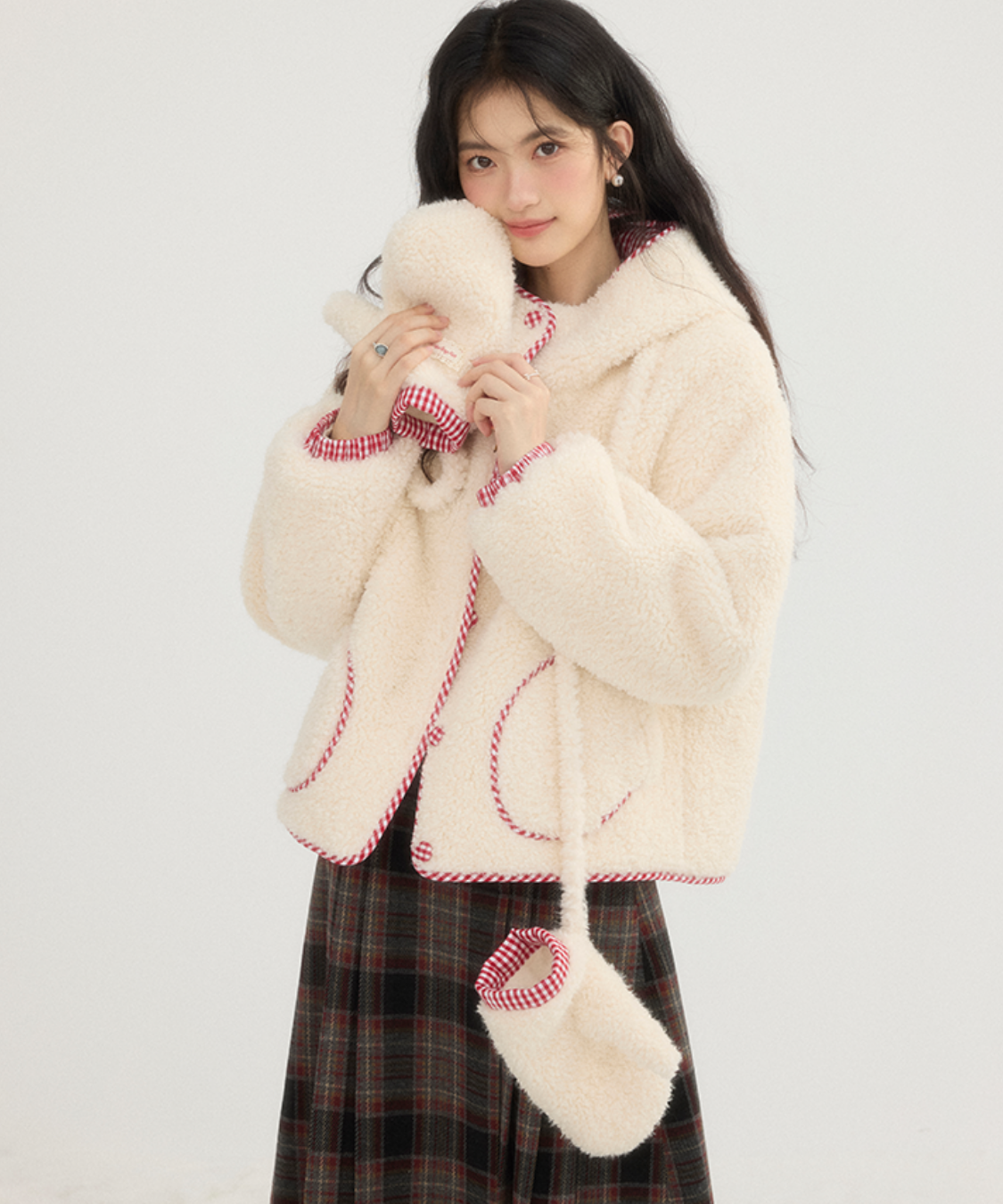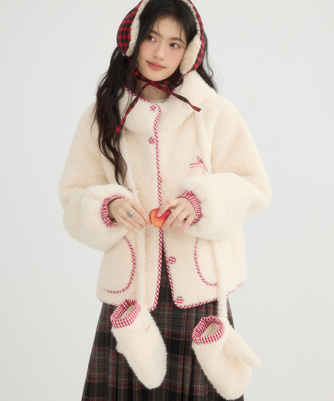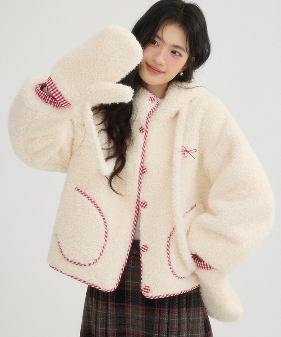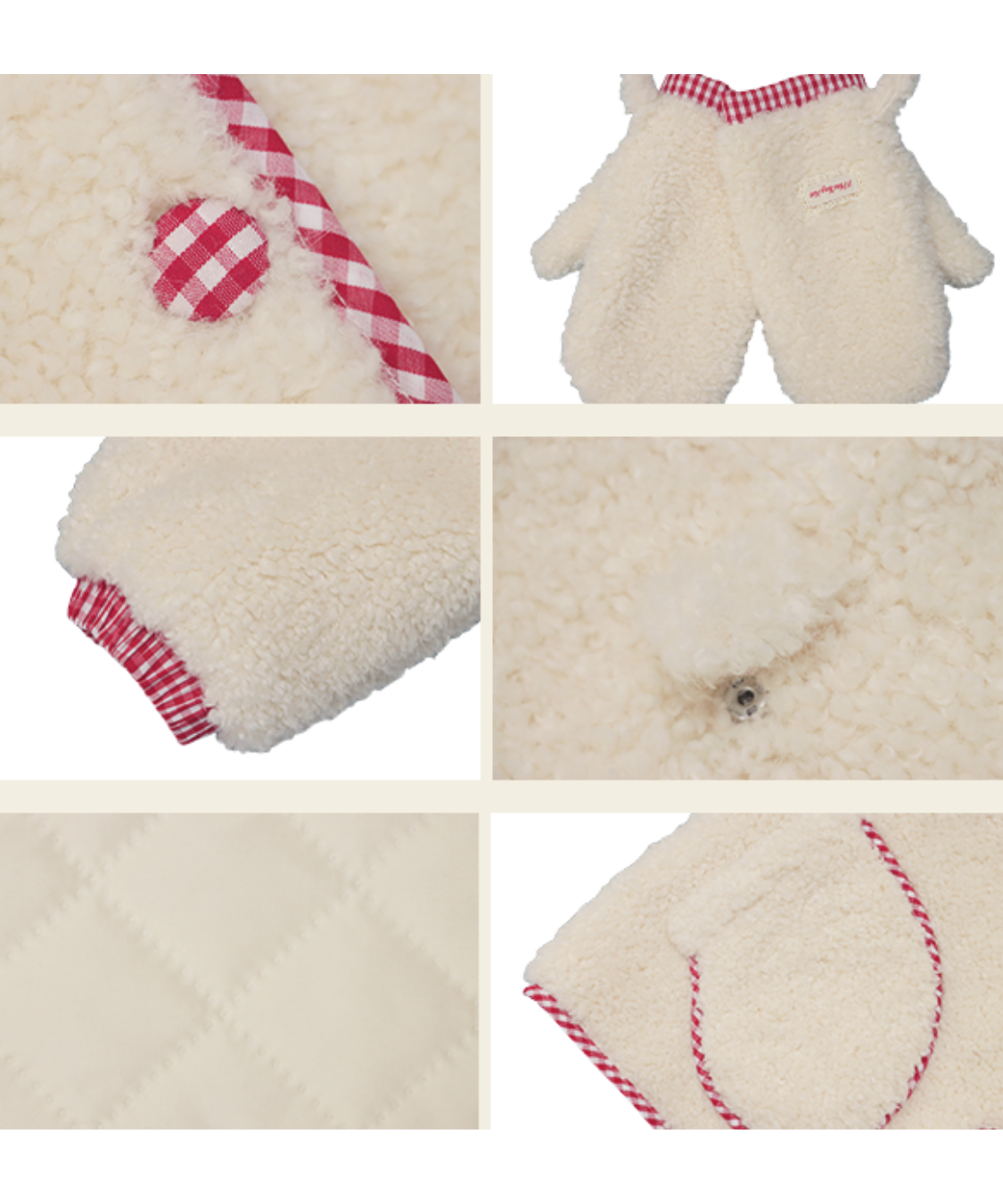 チェック柄のパイピングとミトンが、遊び心とかわいらしさをプラスします♡