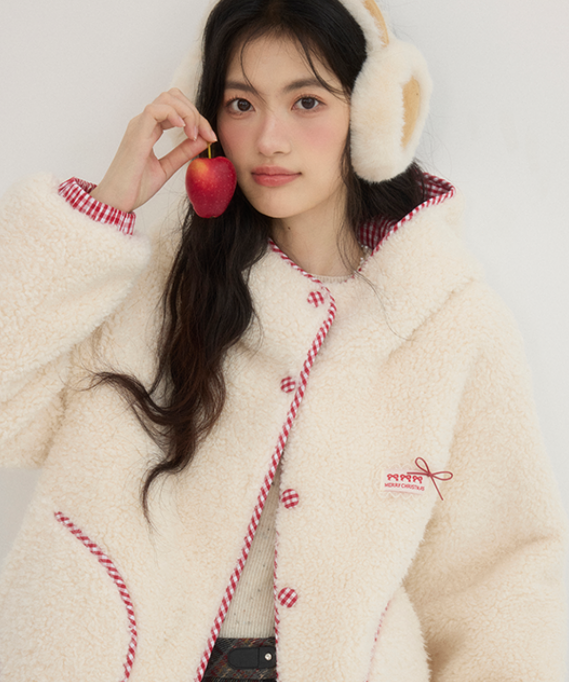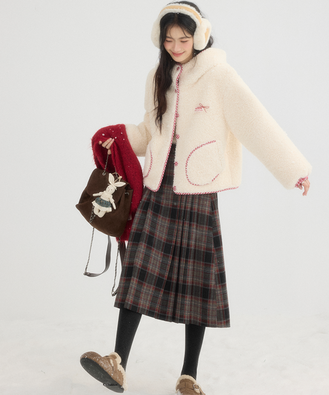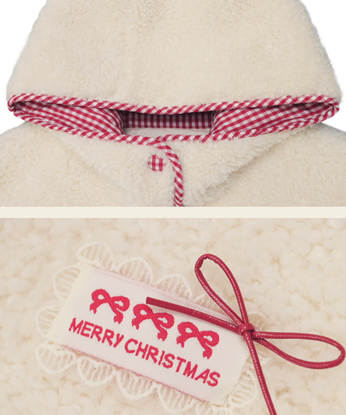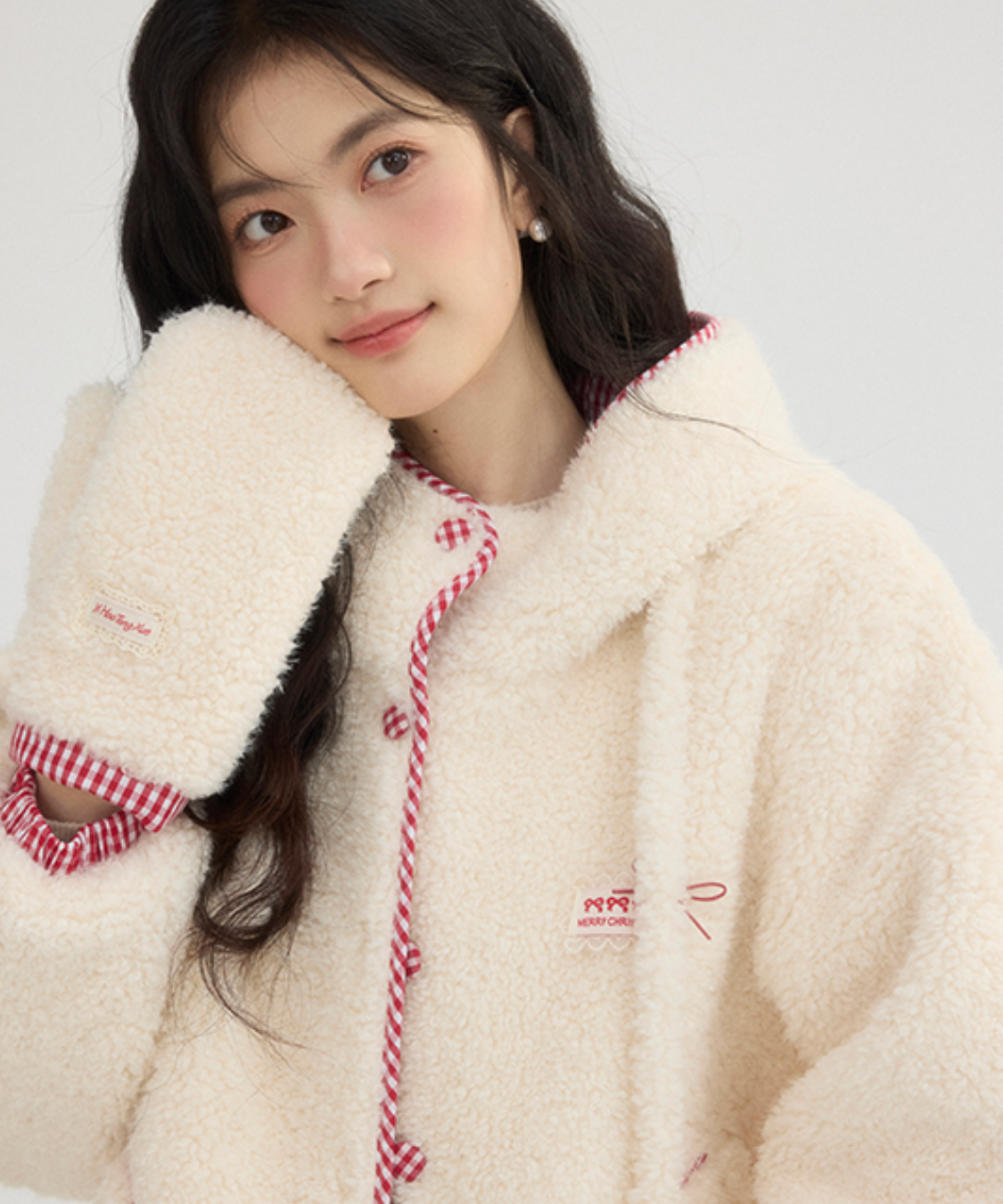 チェック柄のパイピングとミトンが、遊び心とかわいらしさをプラスします♡