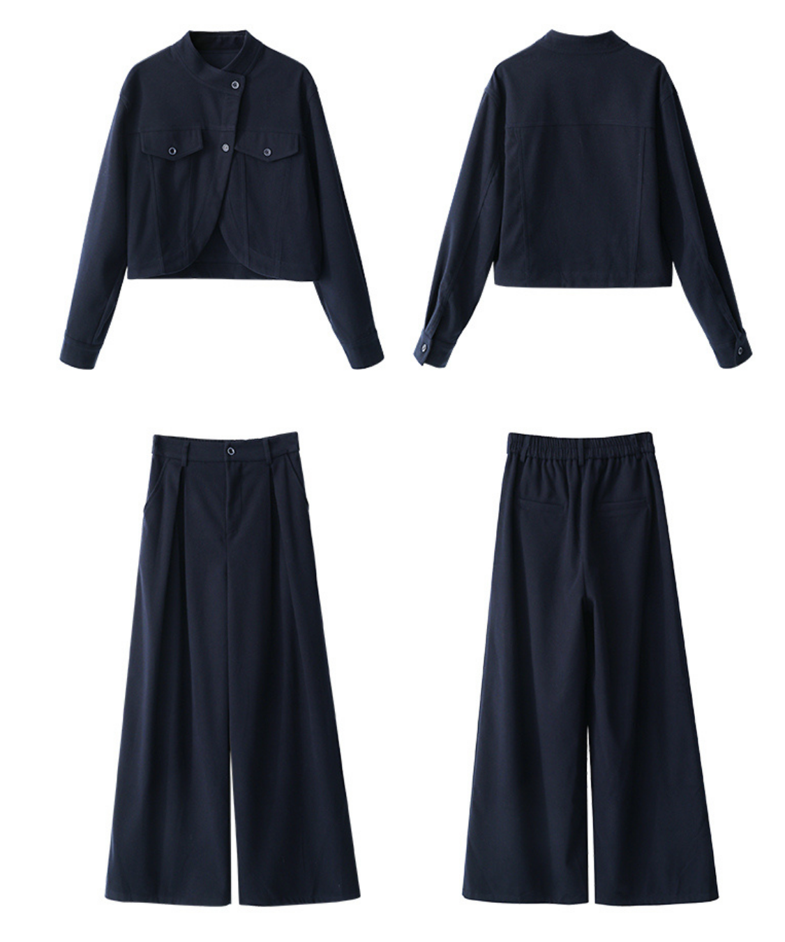 ノーカラージャケット+ウエストリボンキャミ+ワイドパンツ 3点セット
