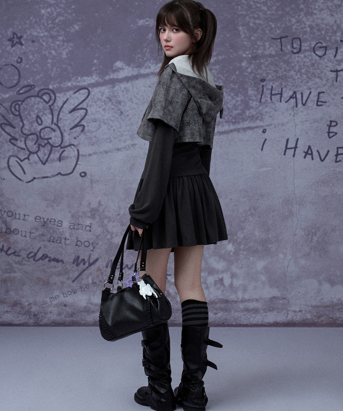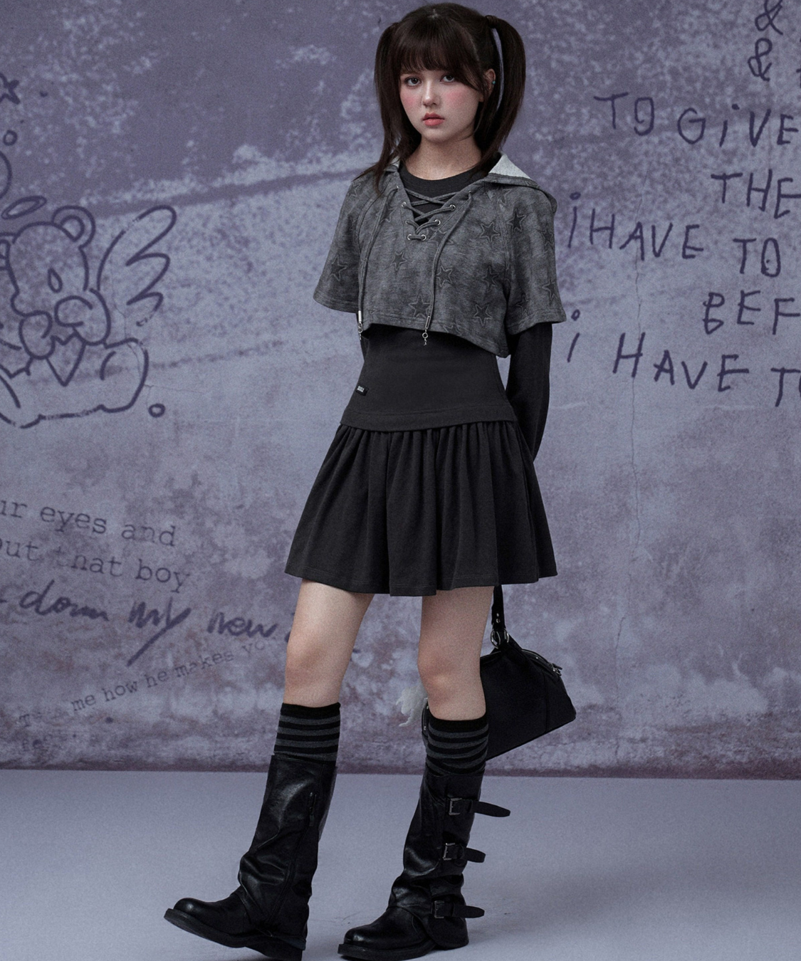 レースアップやスターモチーフが、程よくエッジィな印象をプラスします♡