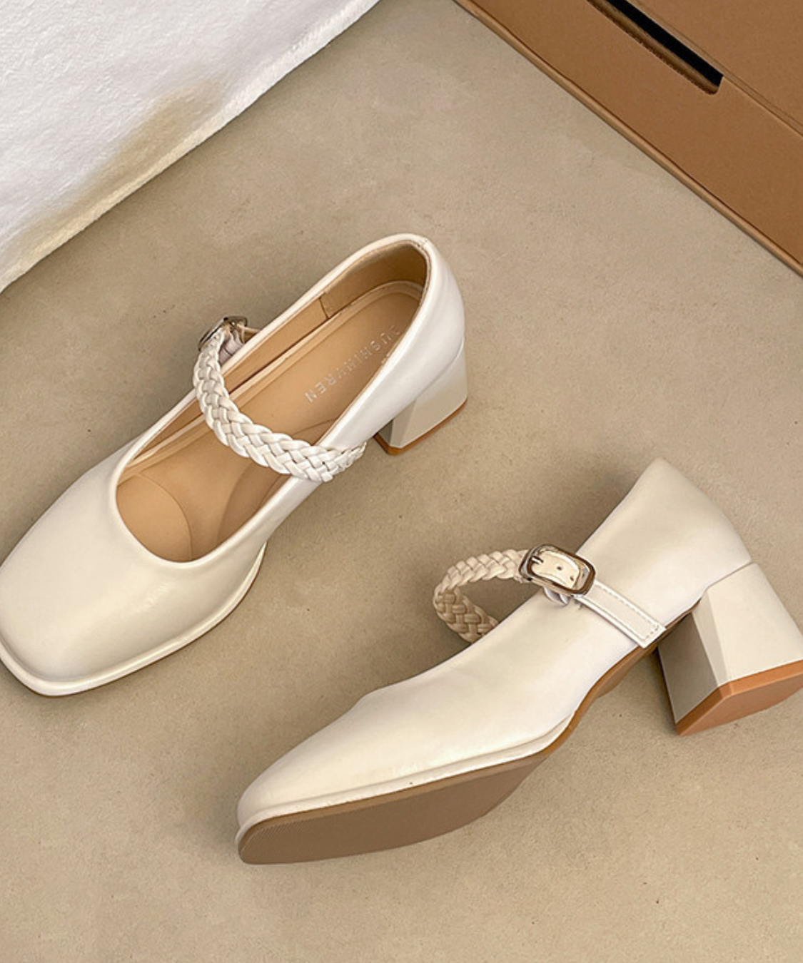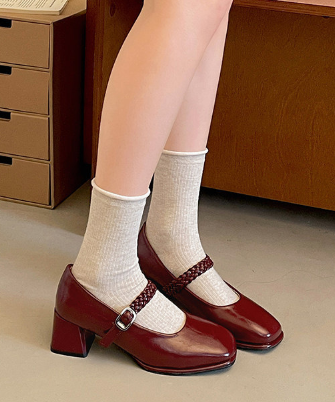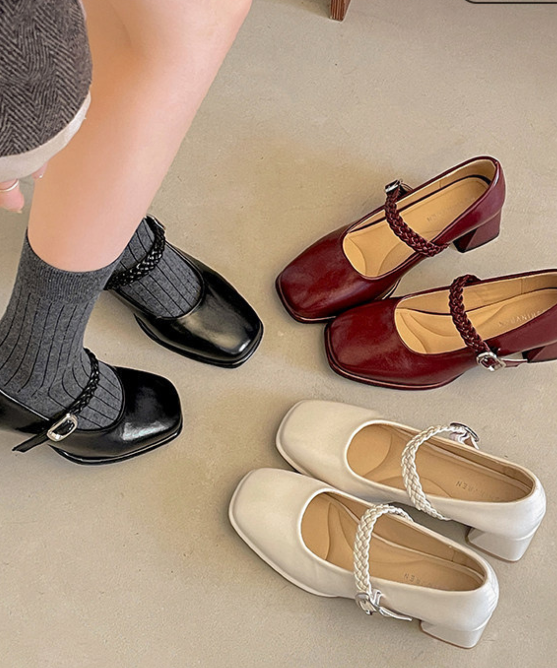 編み込みストラップメリージェーンパンプス
