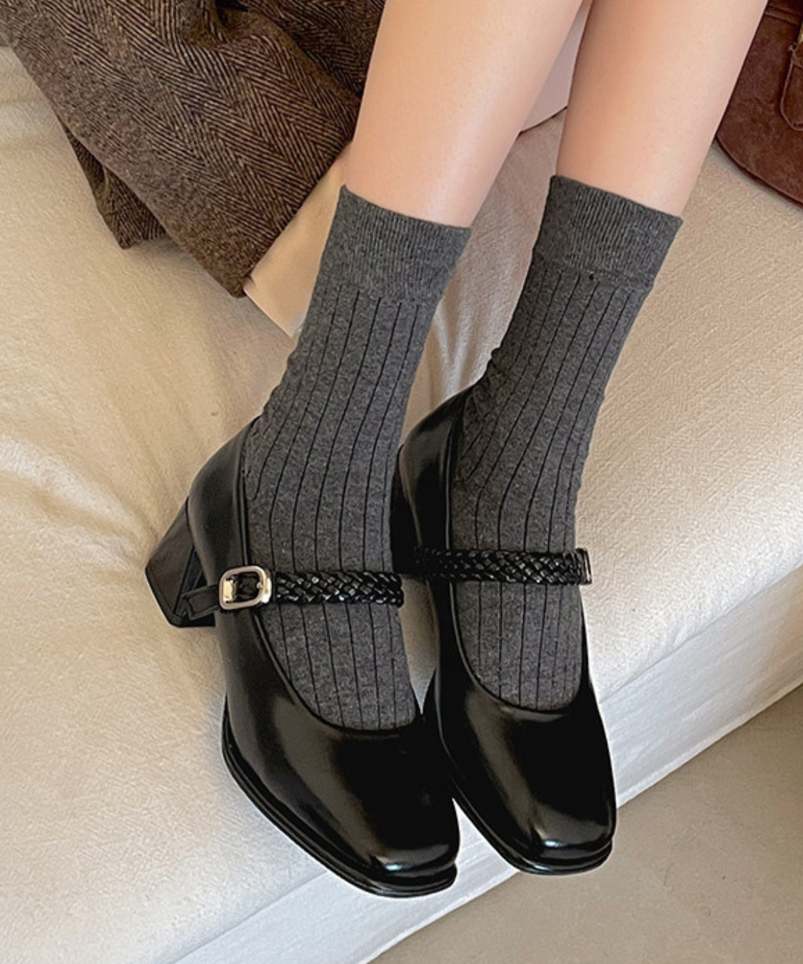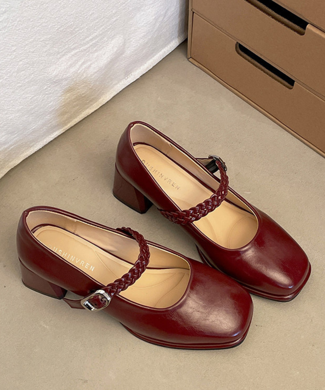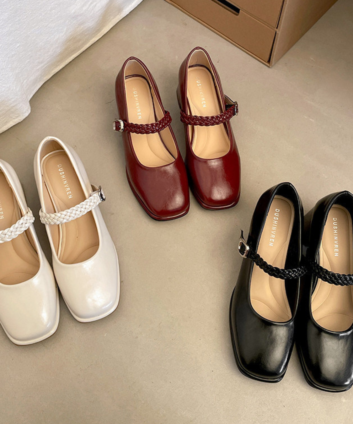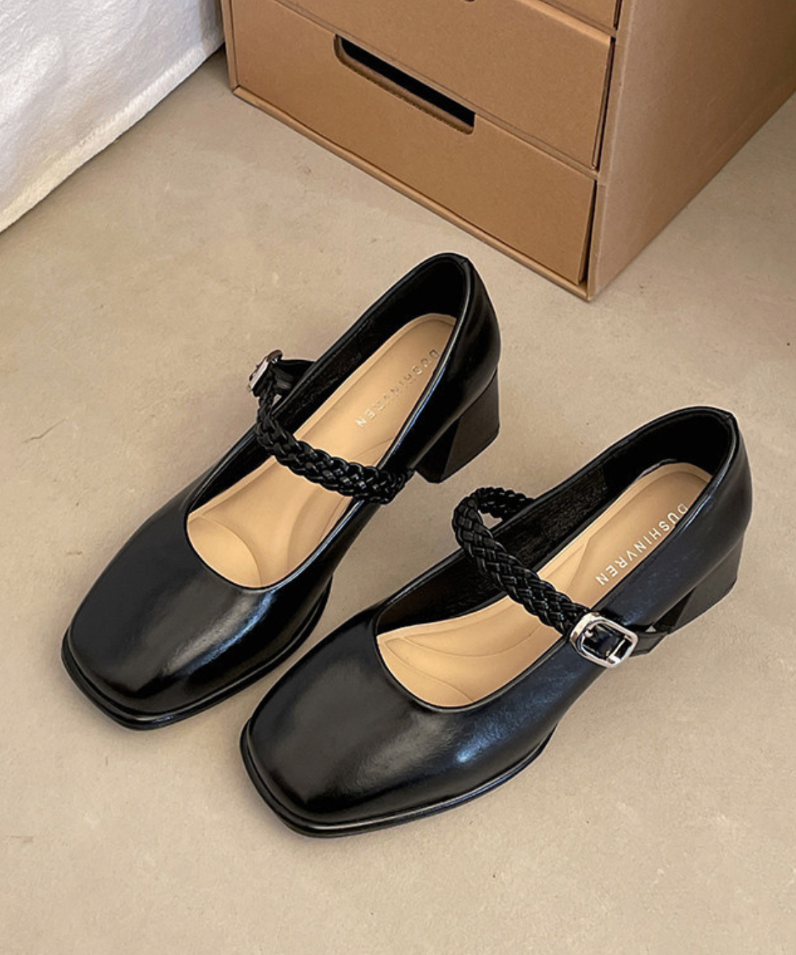 編み込みストラップメリージェーンパンプス