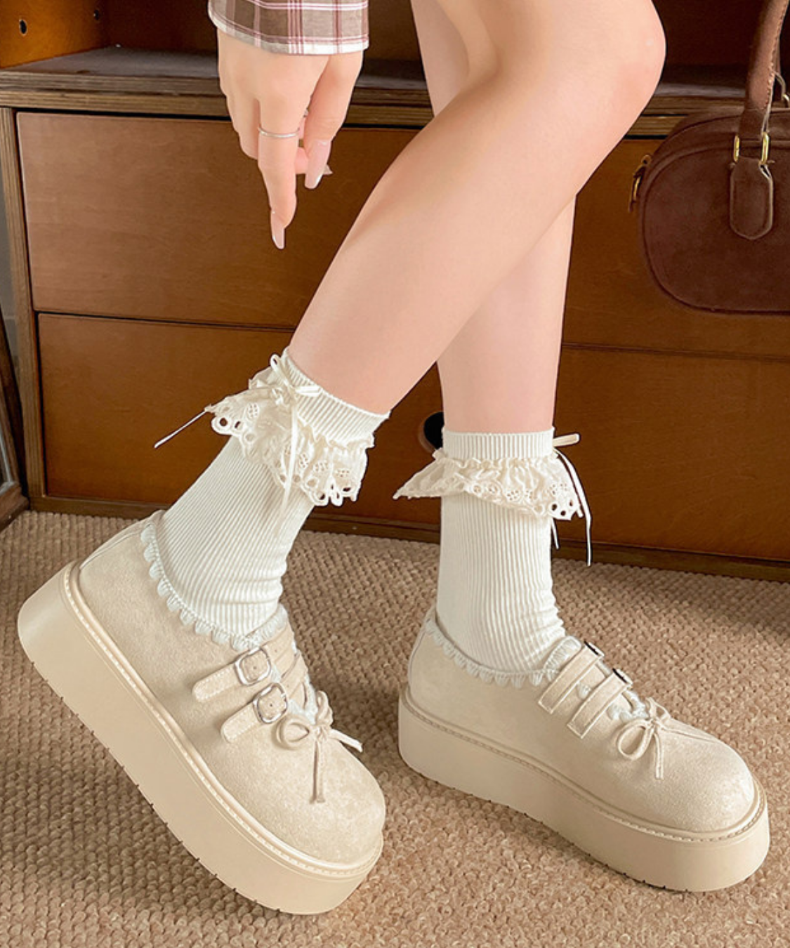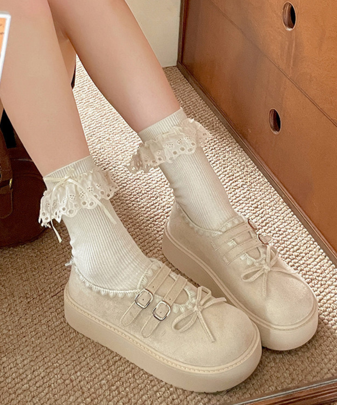筒周りにあしらった配色レースが、足元にさりげない可愛さを添えてくれます♡