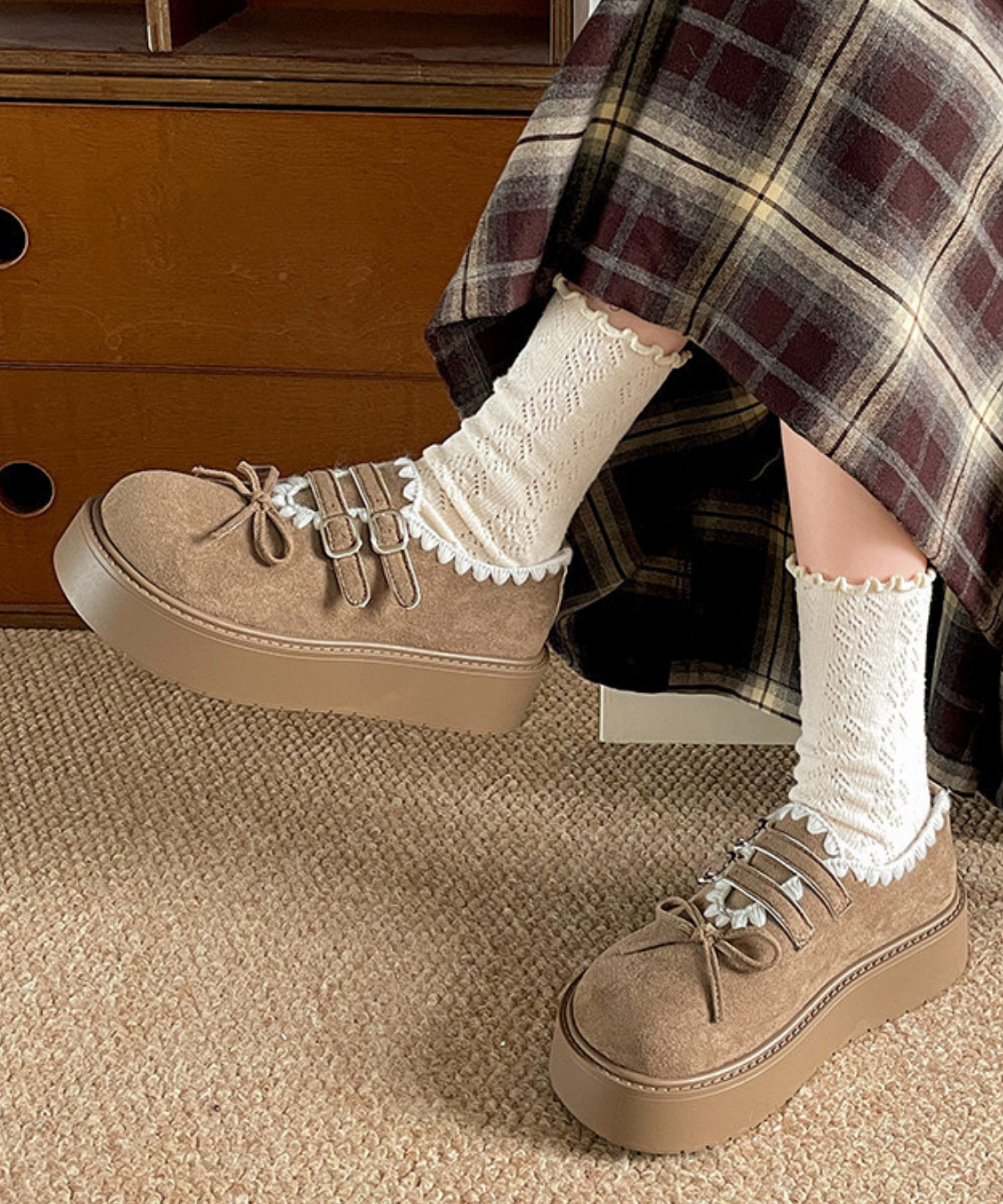 程よい厚みでスタイルアップを叶えつつ、足元にトレンド感をプラスしてくれます♡