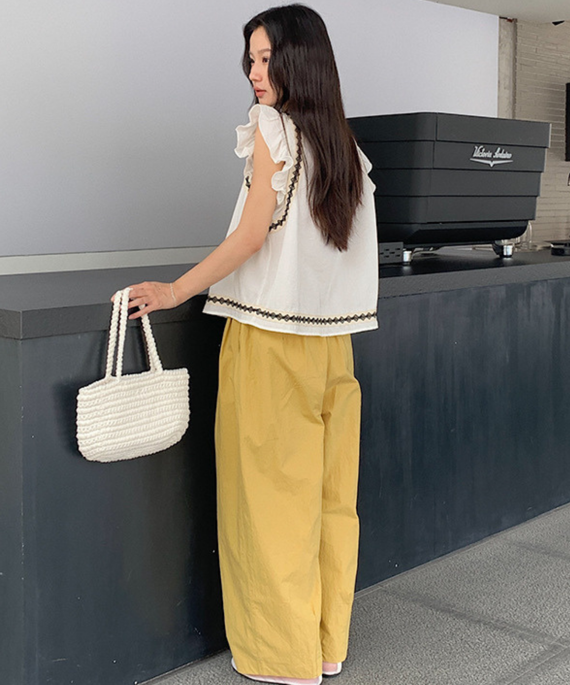 ふんわりとしたフリルスリーブがフェミニンなアクセントになるブラウスです。