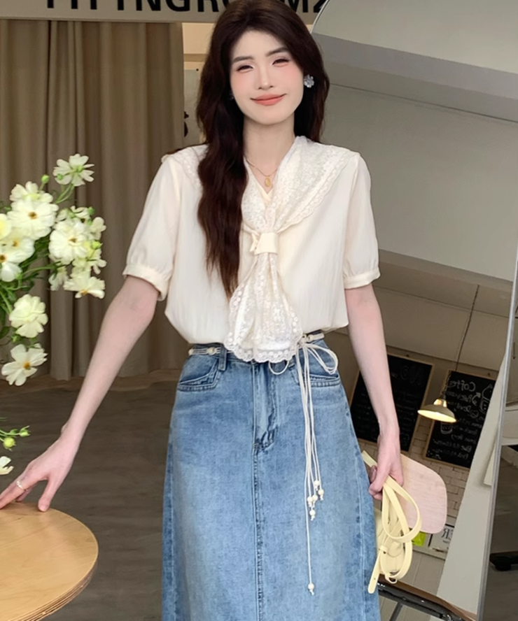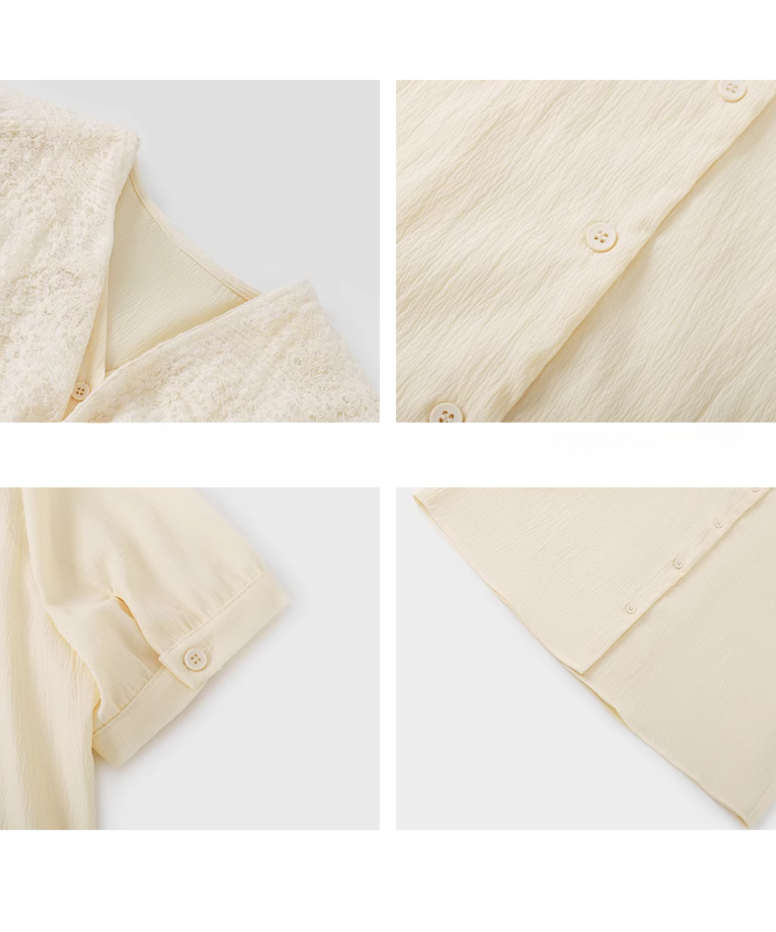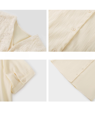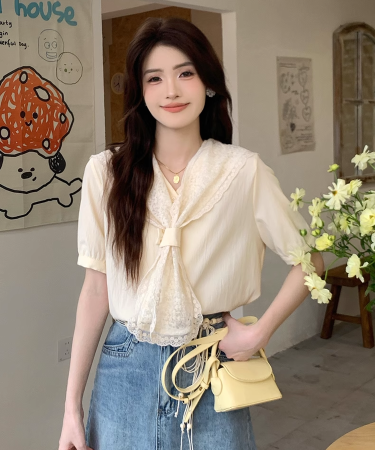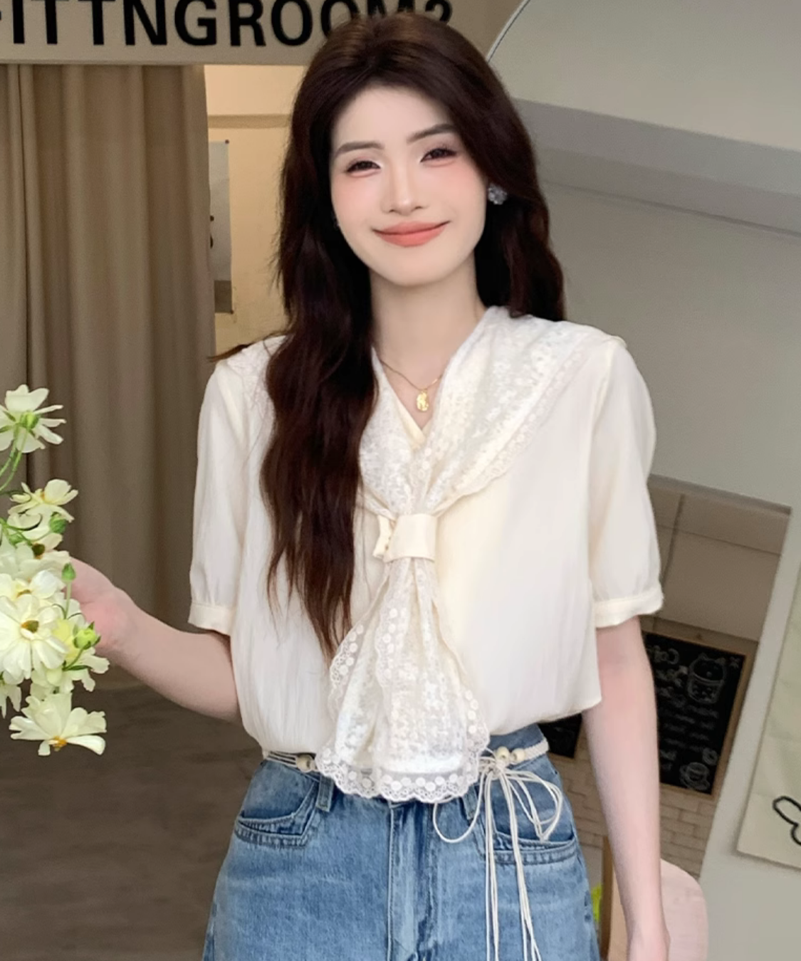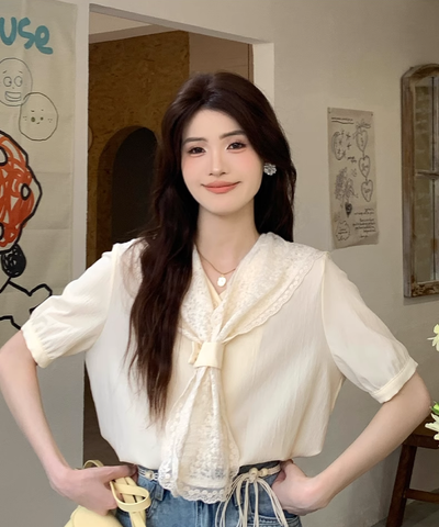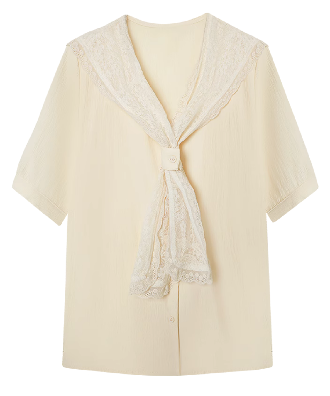 繊細なレースタイが上品な甘さをプラスするフェミニンブラウスです。