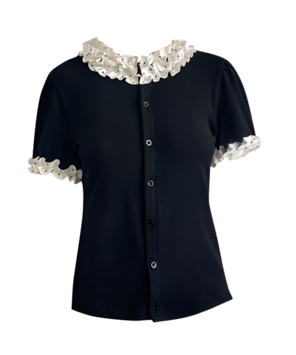 襟と袖のドットフリルが上品でレトロ感もあってお気に入り♡