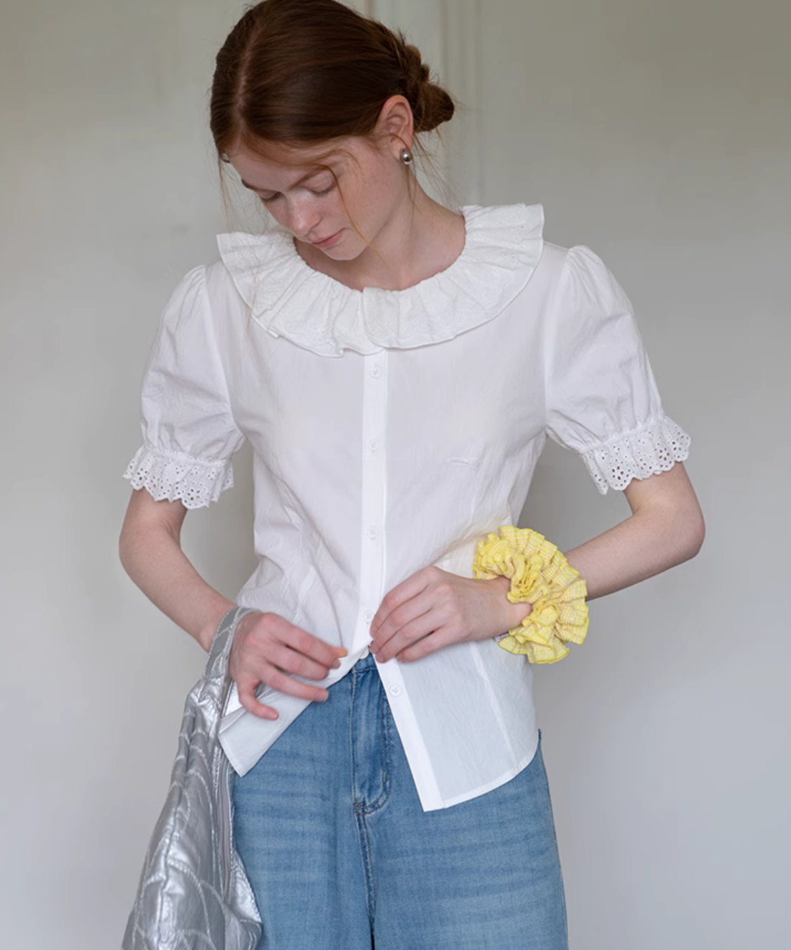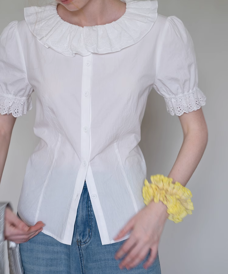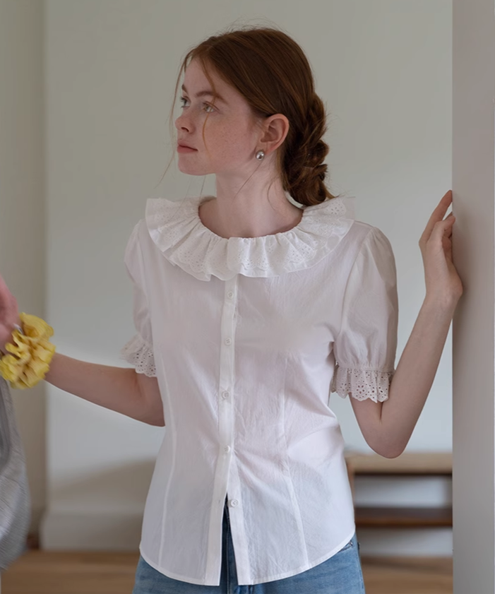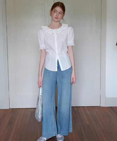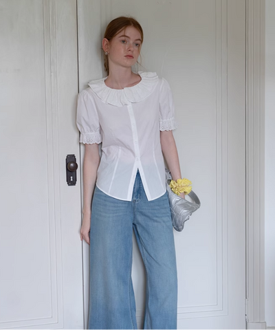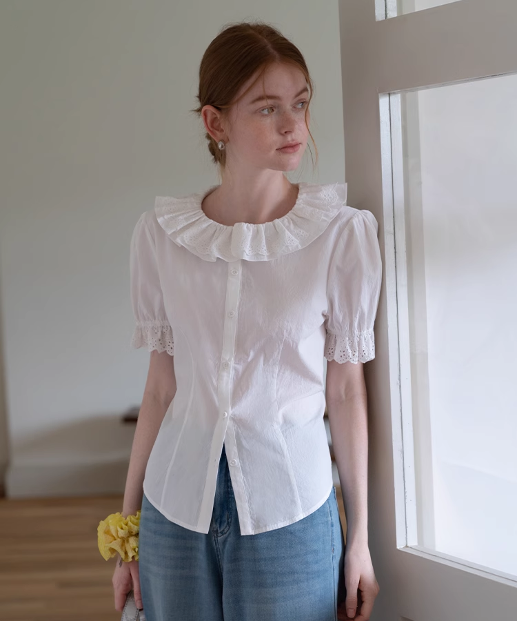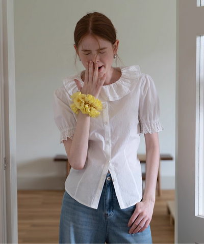 ふわっと広がる大きめ襟がガーリーすぎて可愛い♡袖のレースも繊細で、着るだけで気分アガる〜