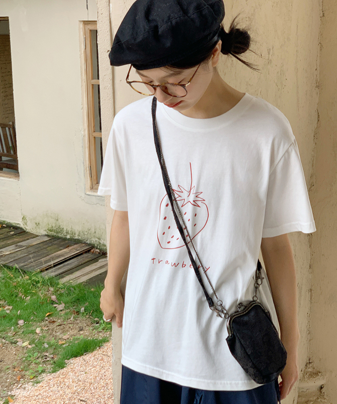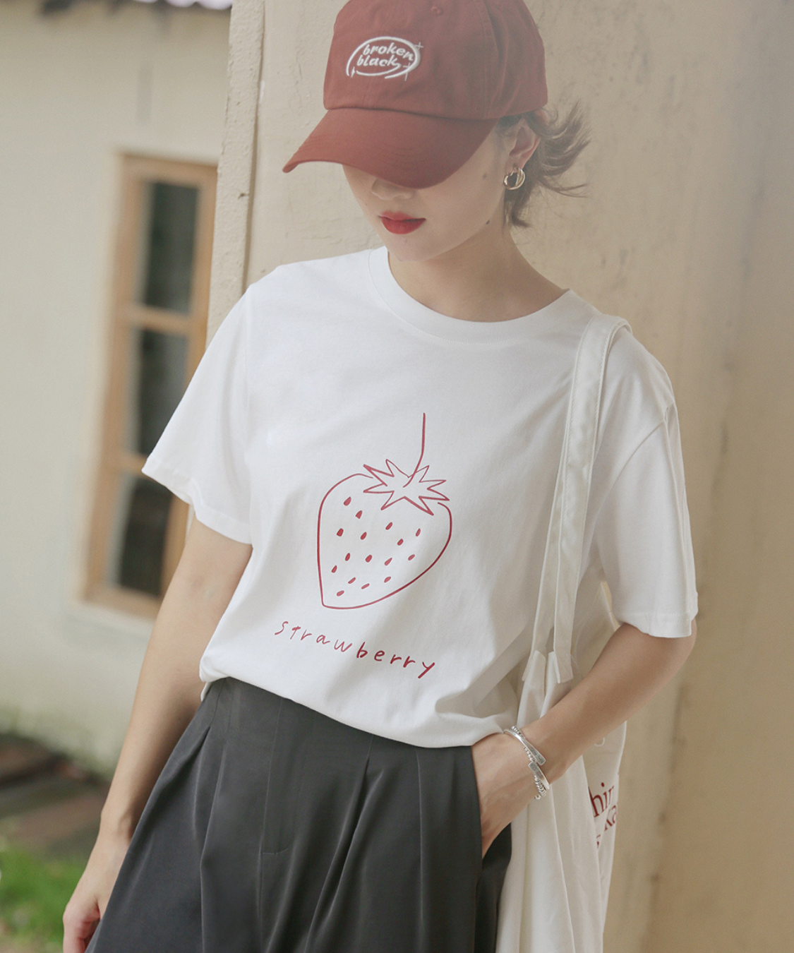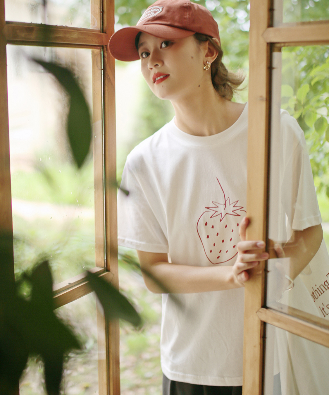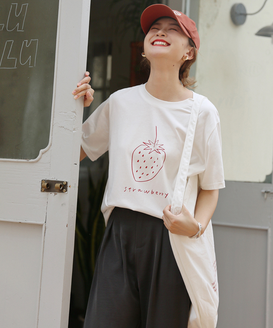 フロントのストロベリーロゴが遊び心のあるアクセントに♡