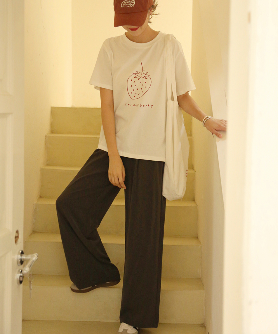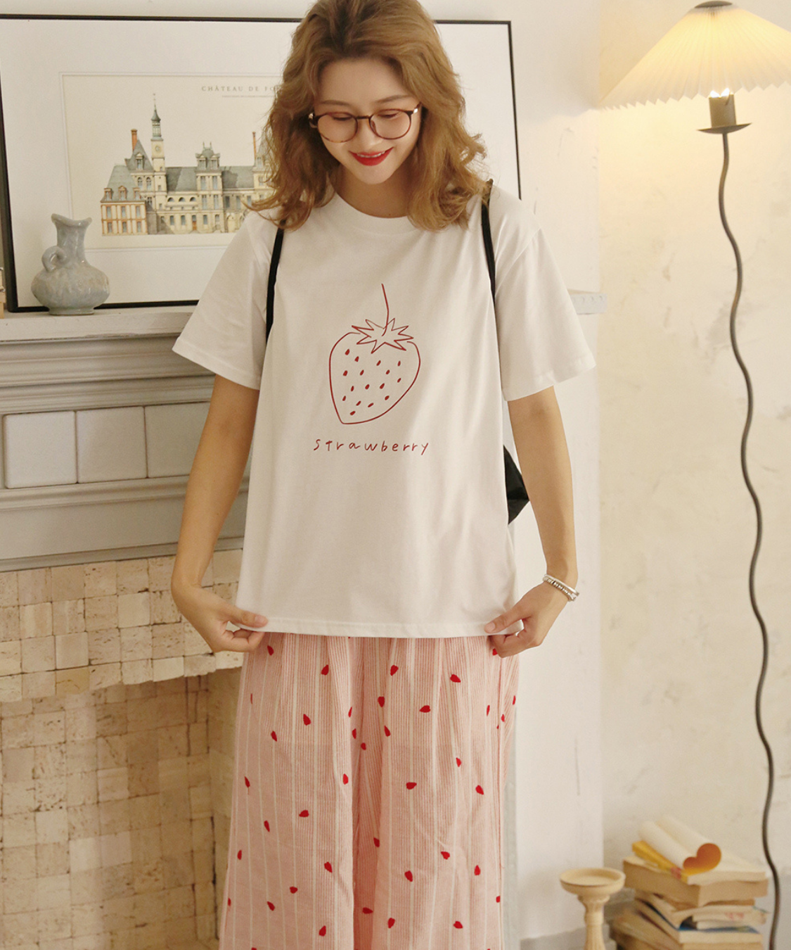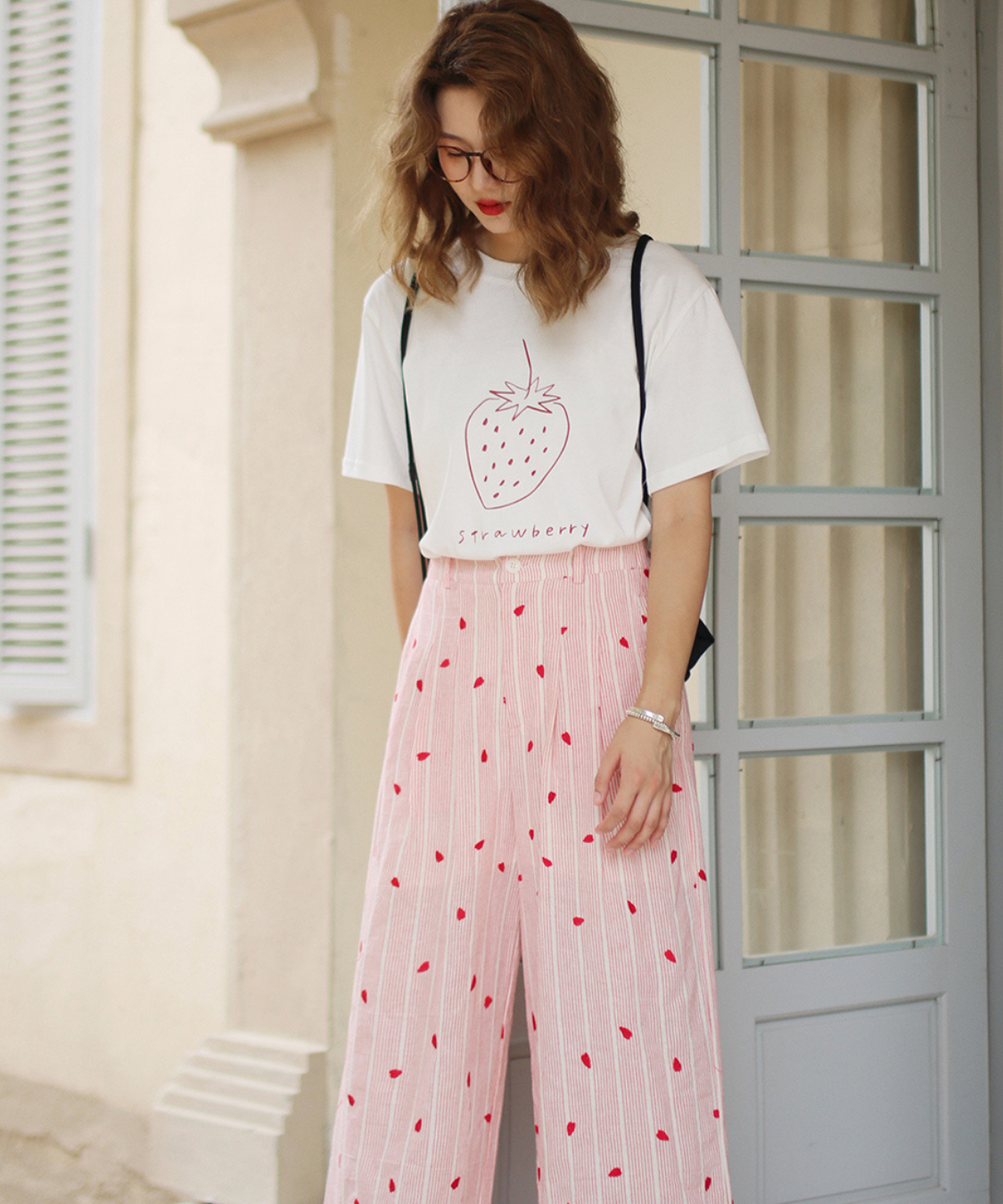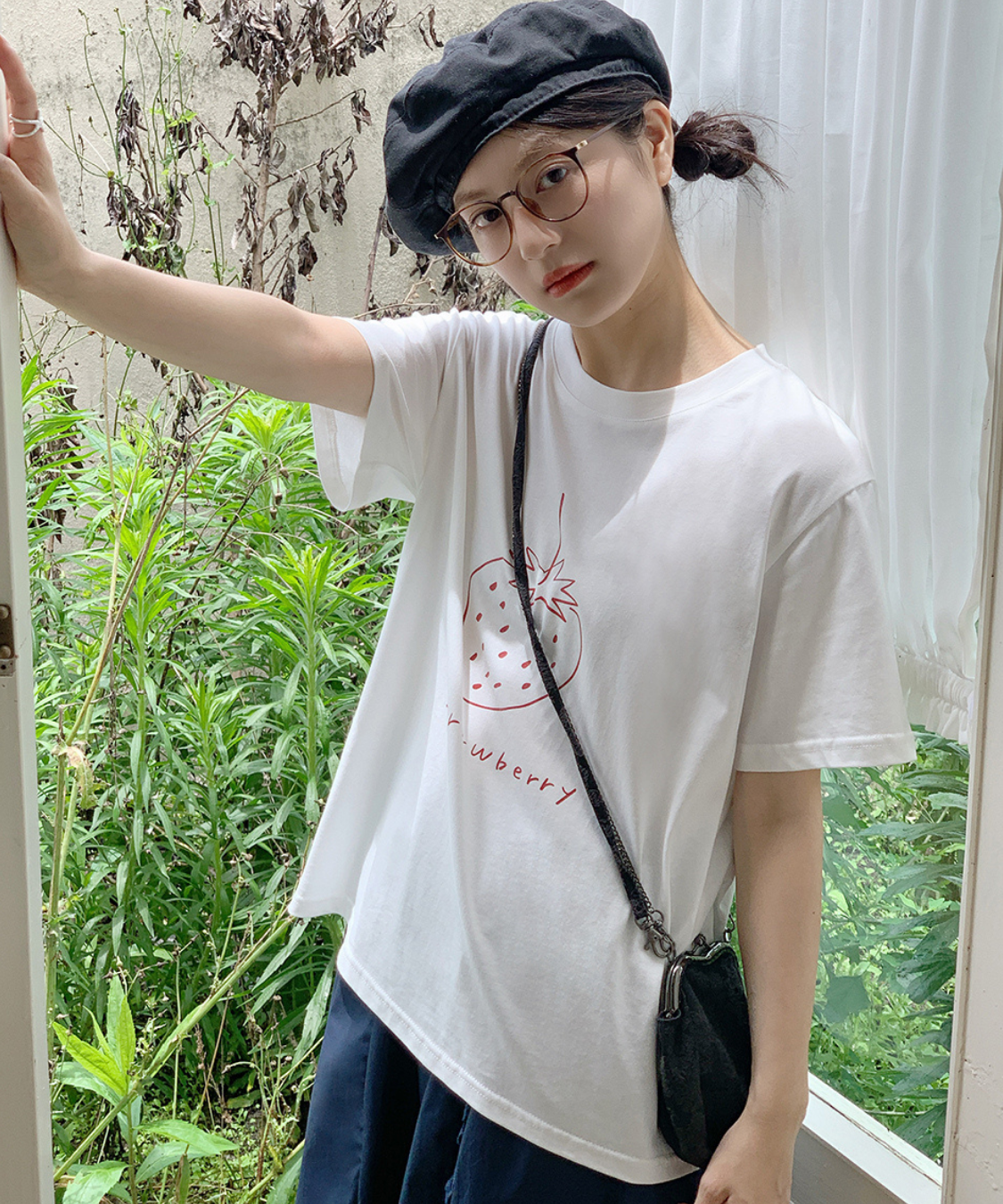フロントのストロベリーロゴが遊び心のあるアクセントに♡