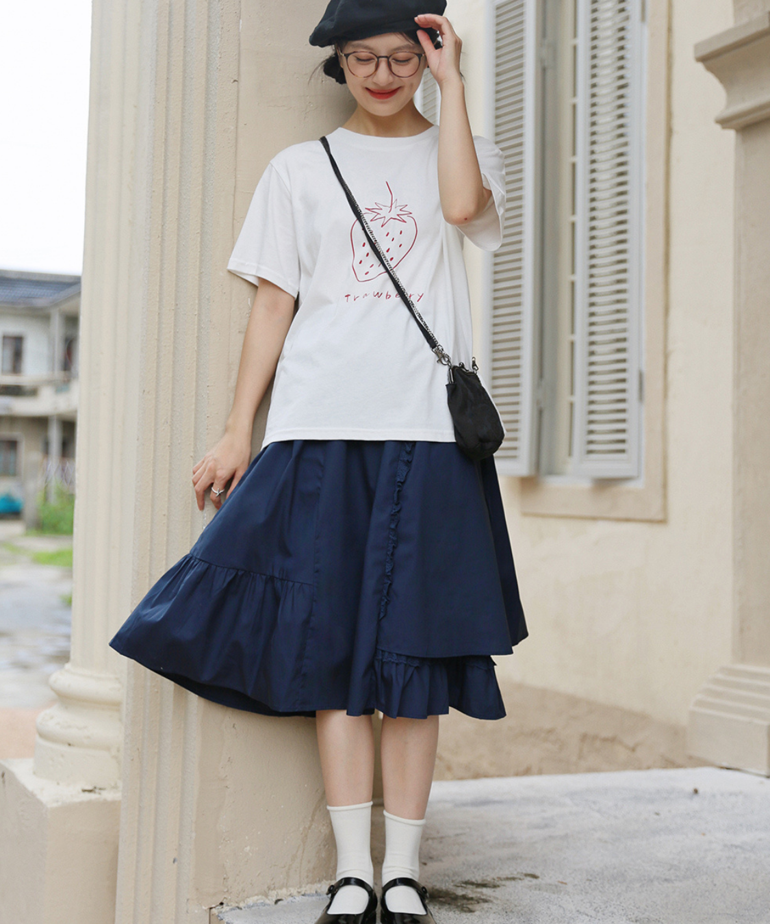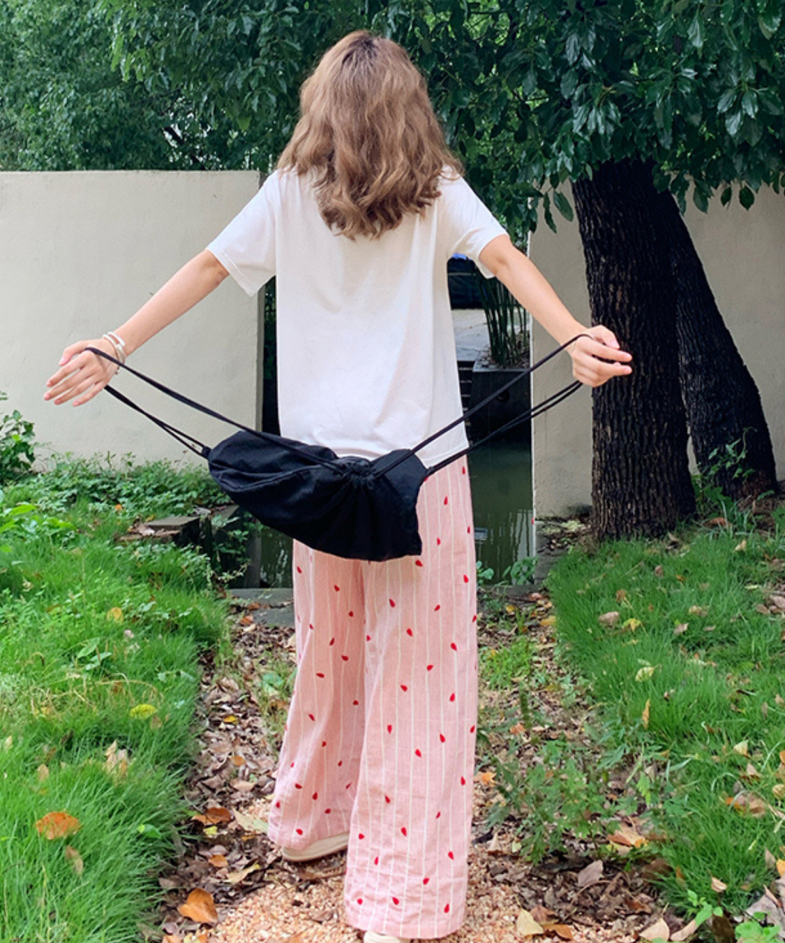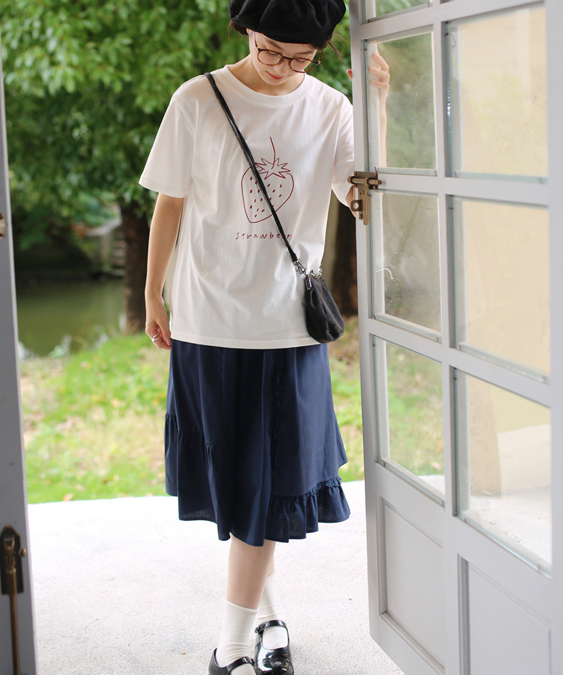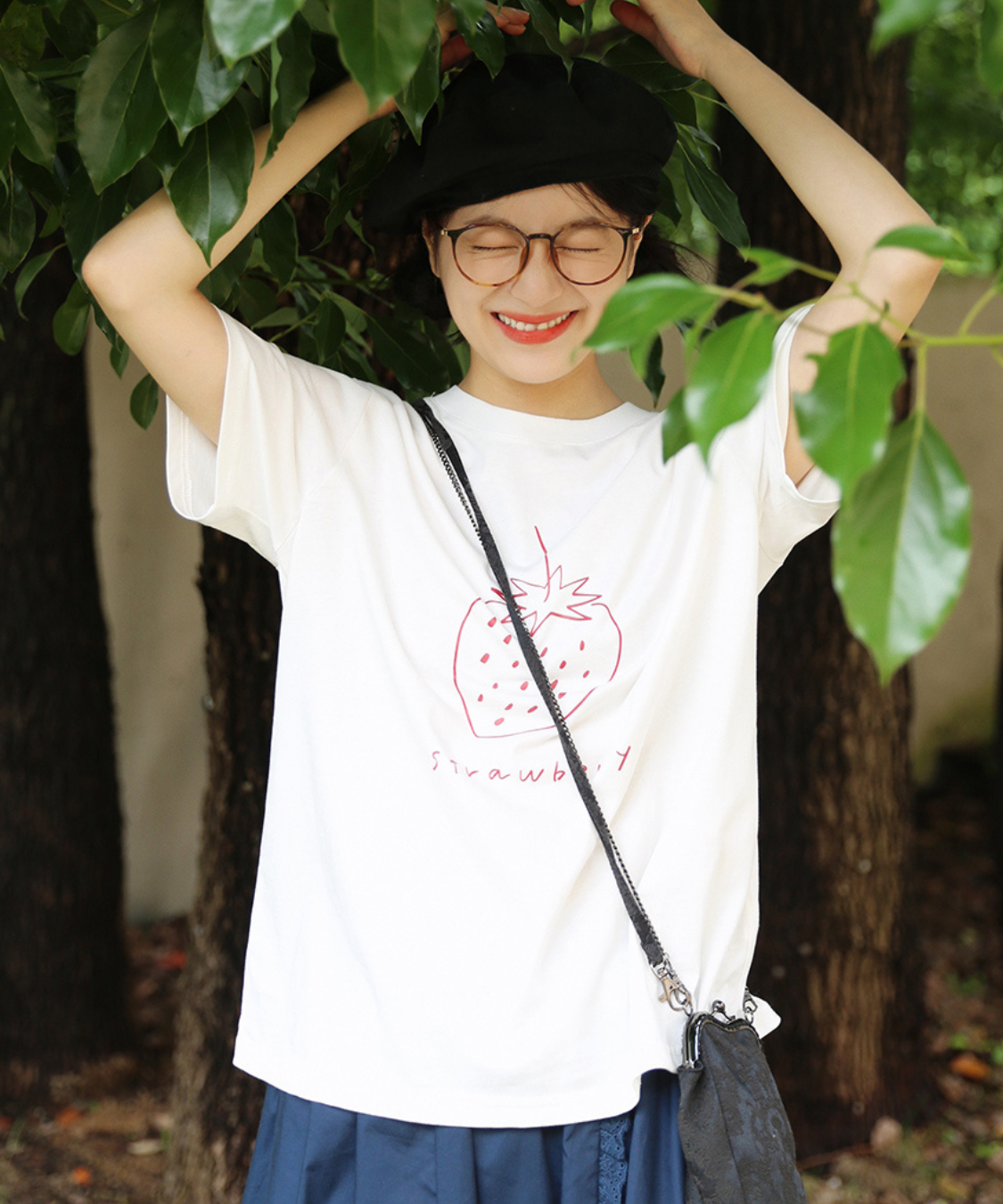 フロントのストロベリーロゴが遊び心のあるアクセントに♡