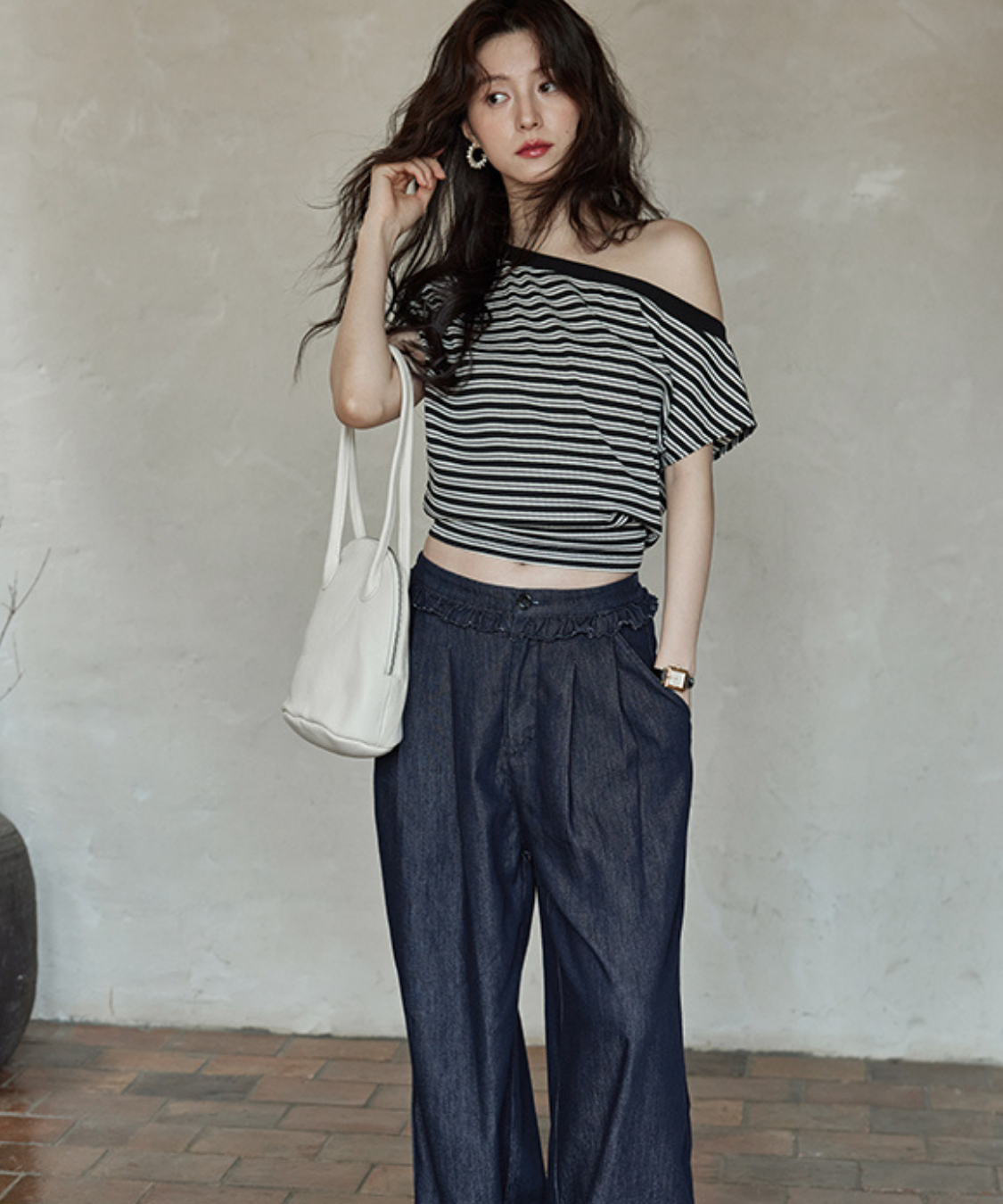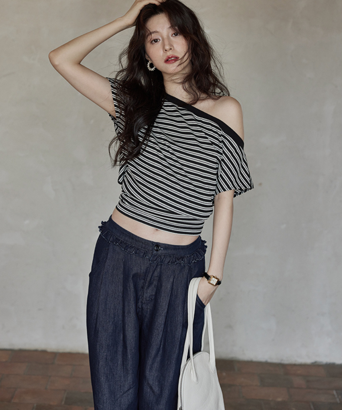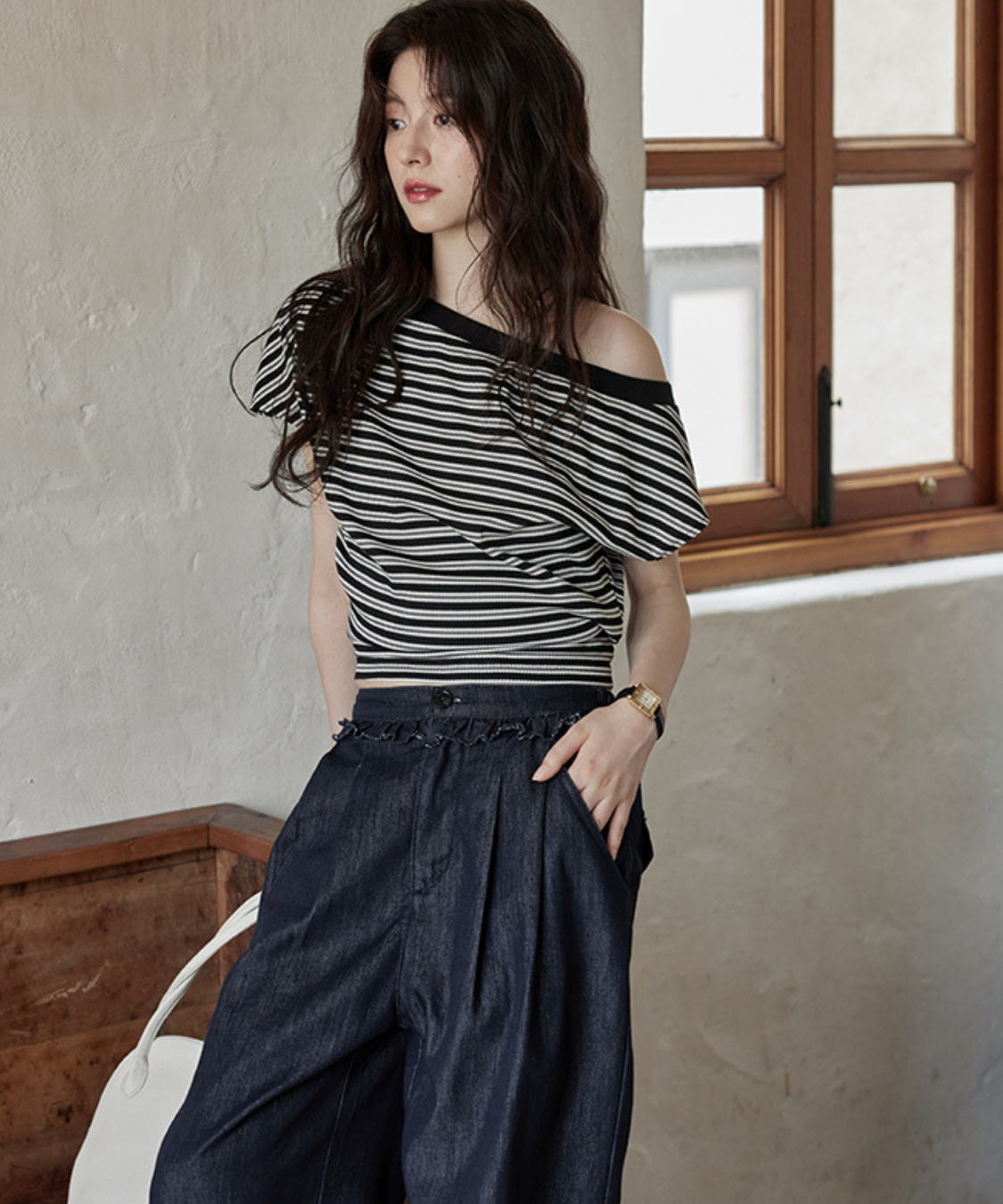 肩見せが叶うオフショルダーでヘルシーな肌見せが楽しめます♡