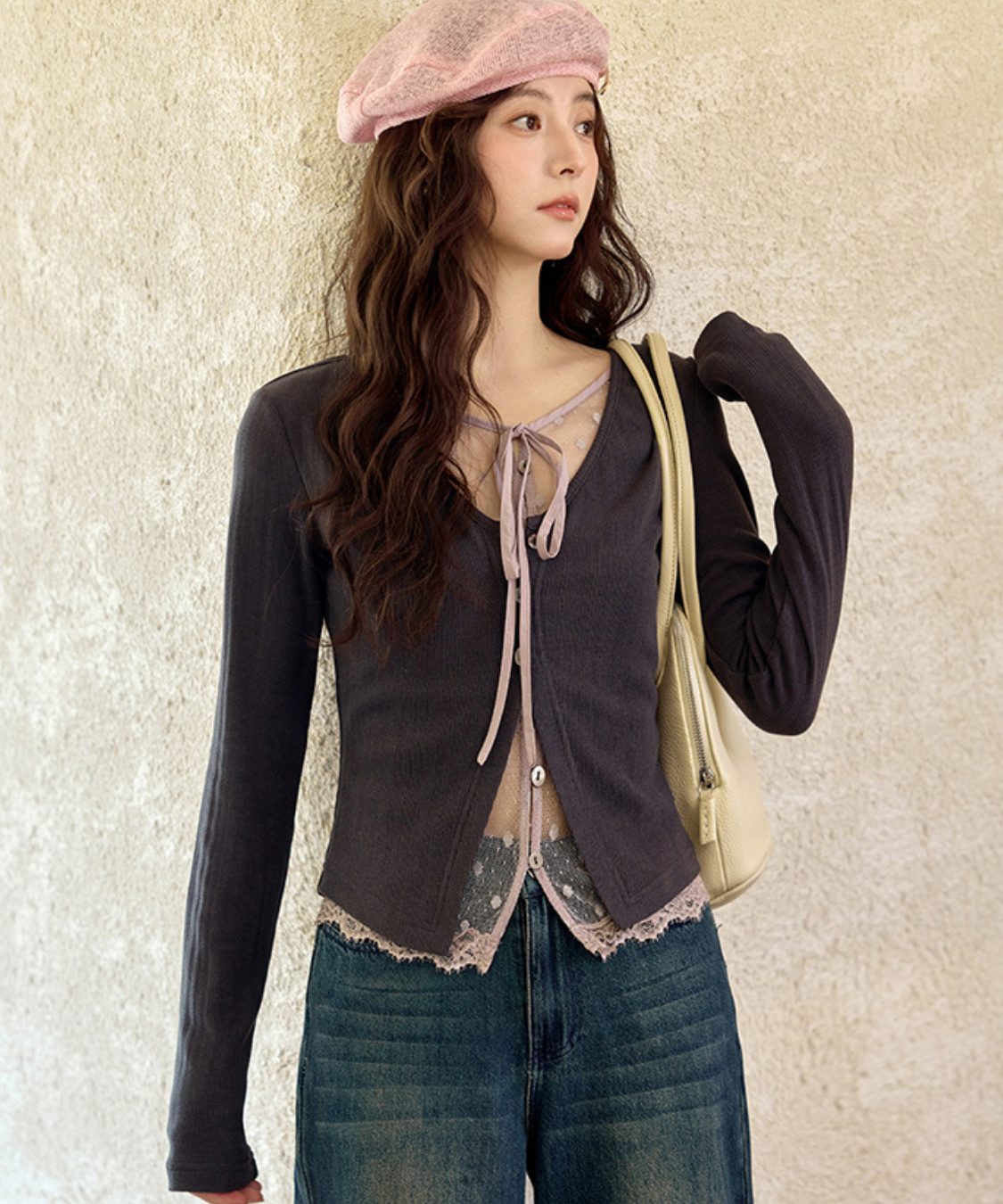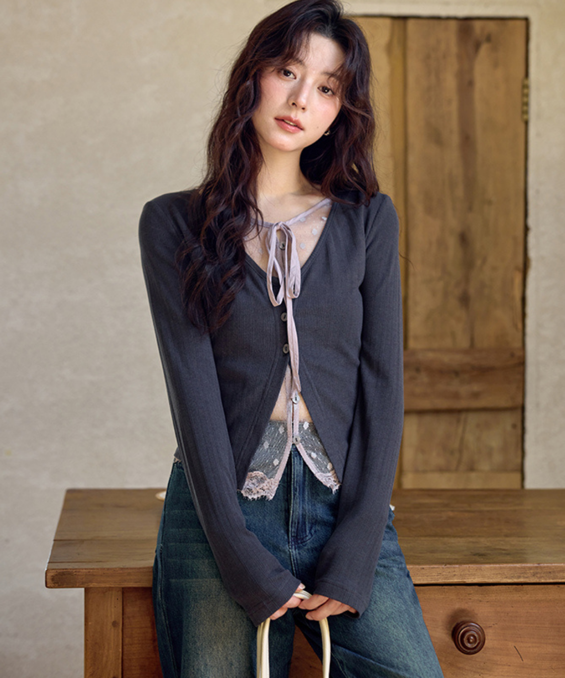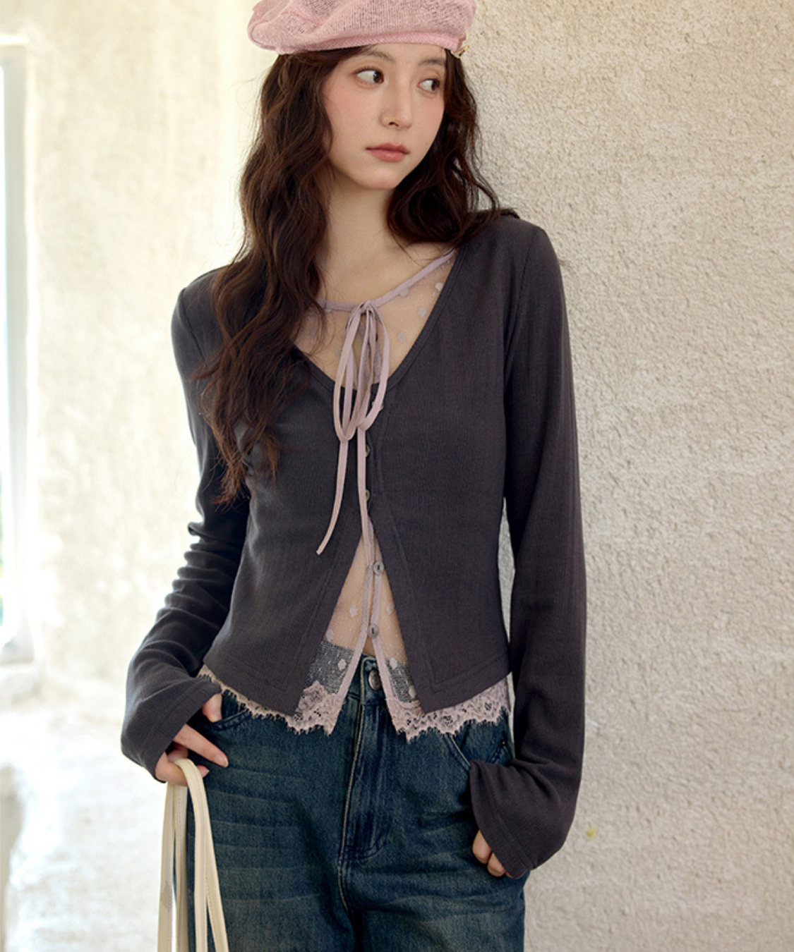 ドットチュールやリボンのディテールが、甘さを添えてくれます♡
