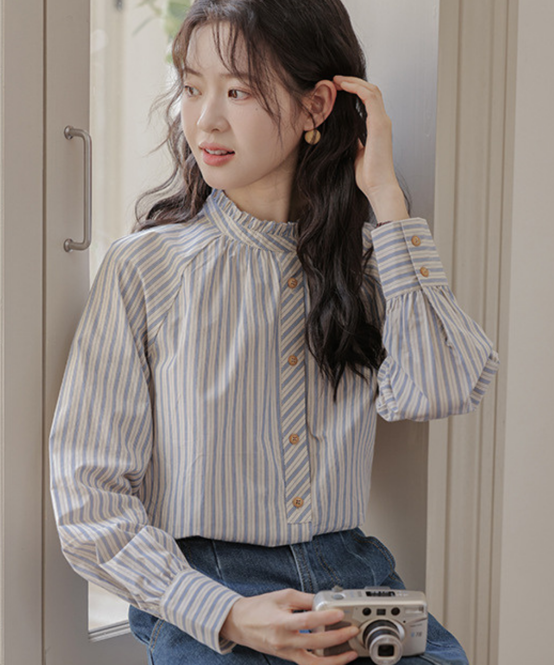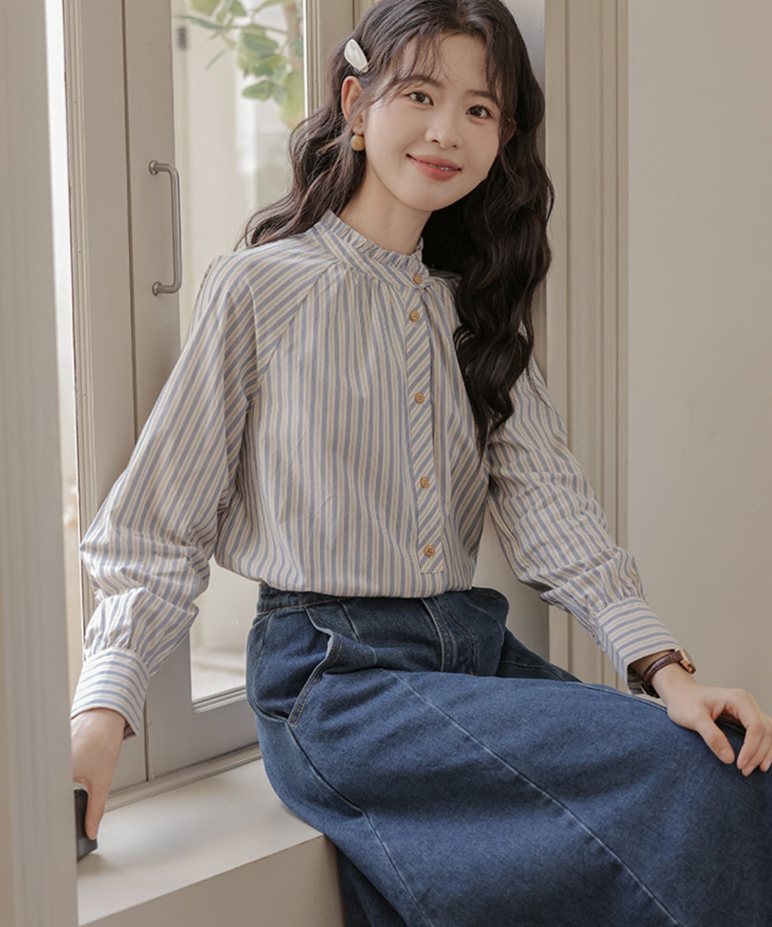 甘さ控えめのフリルで、大人でも着やすいストライプ。