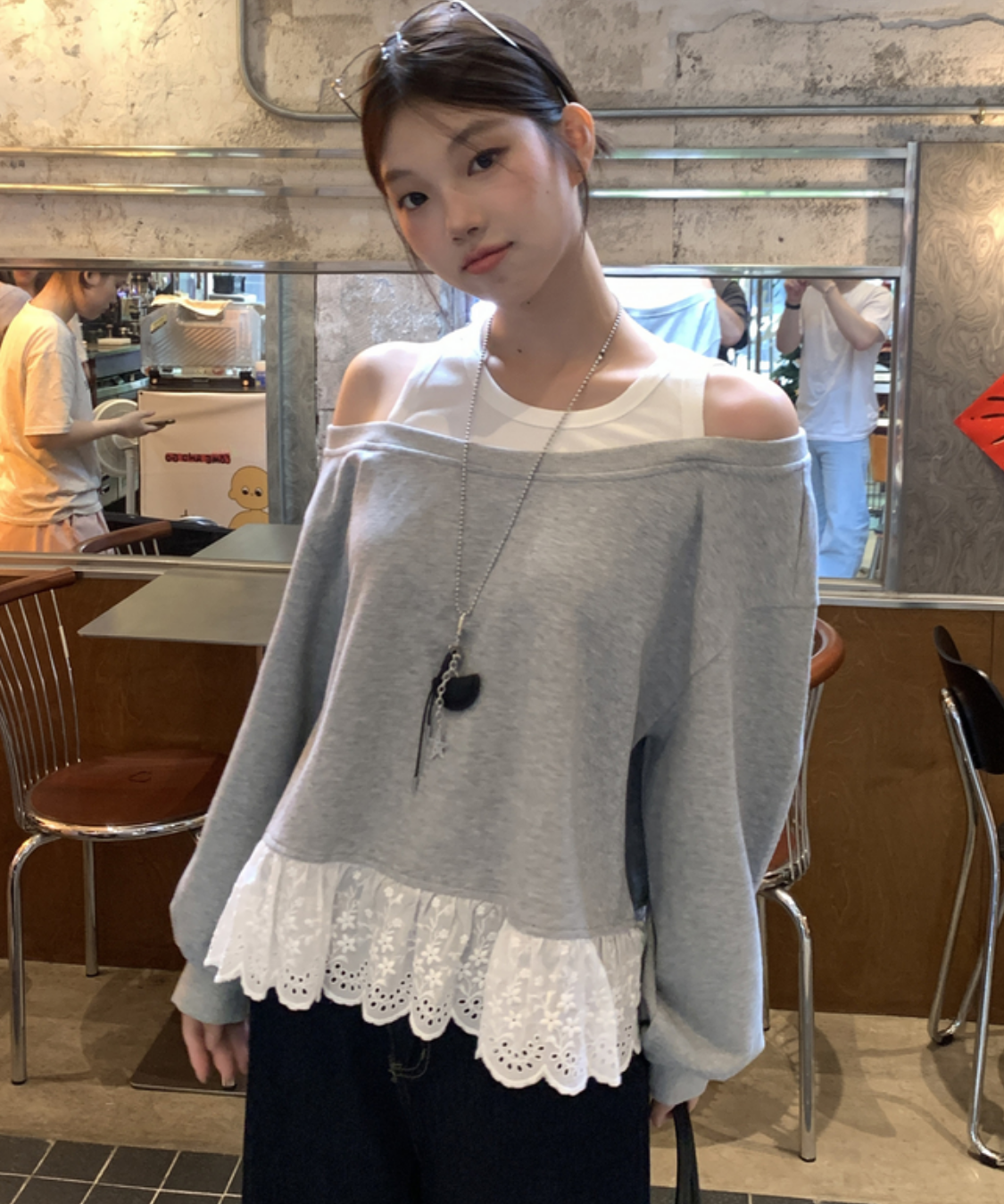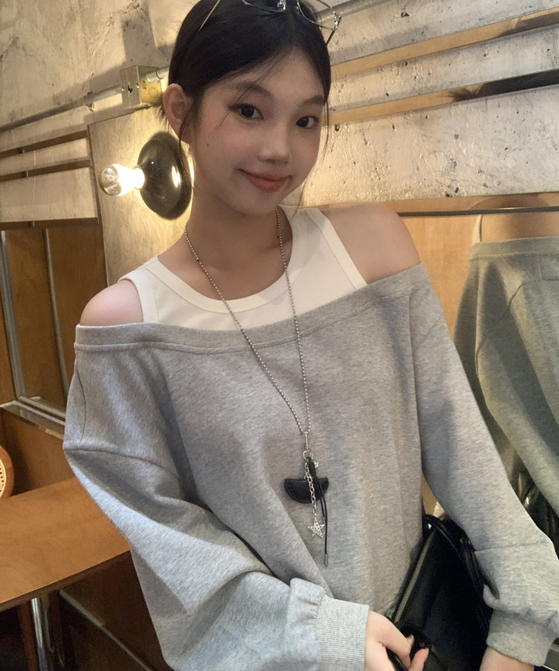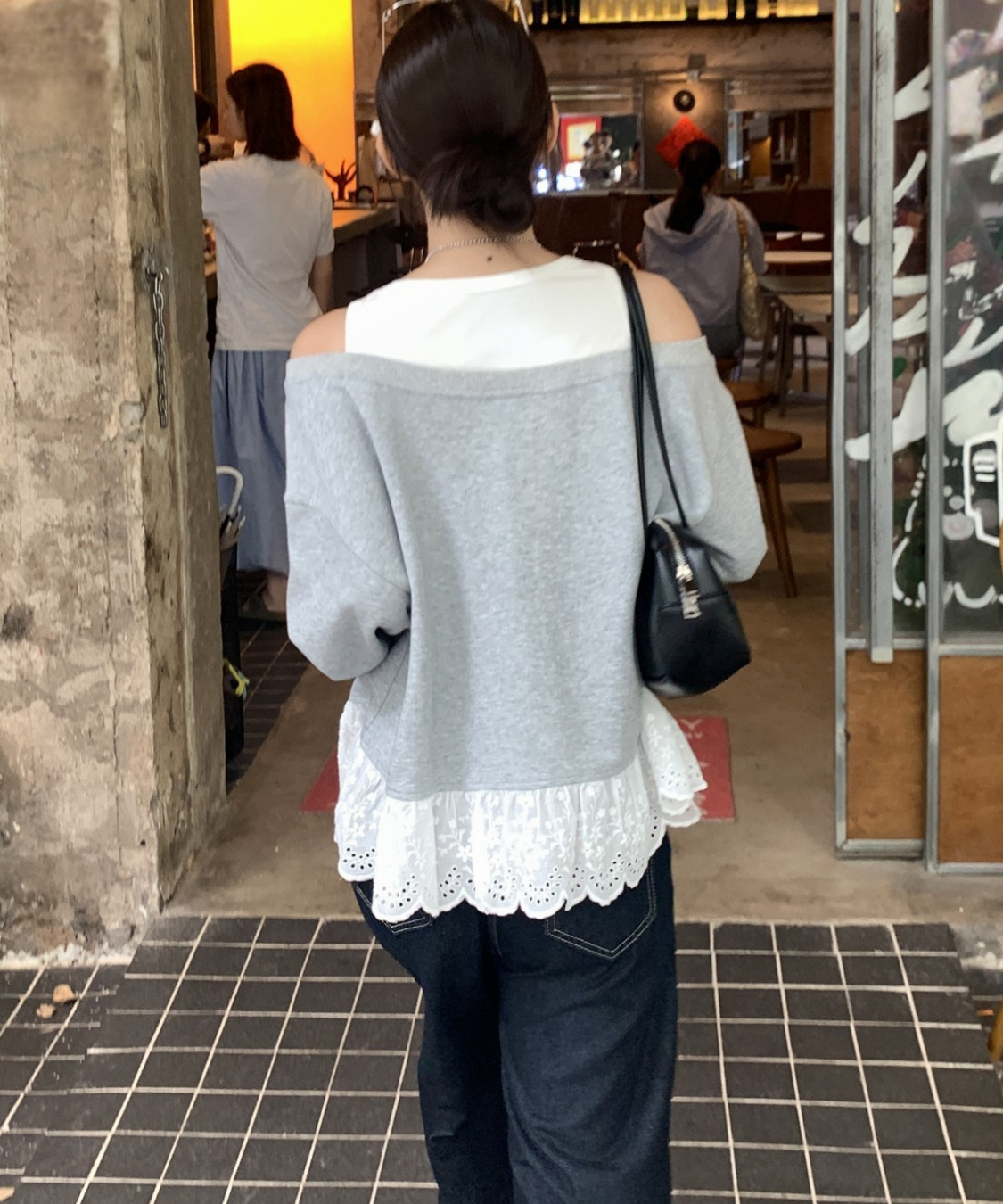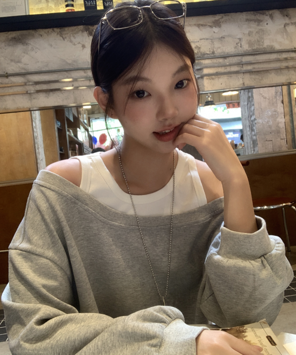 オフショル風の抜け感シルエットが可愛い、カジュアルガーリーなスウェットです。