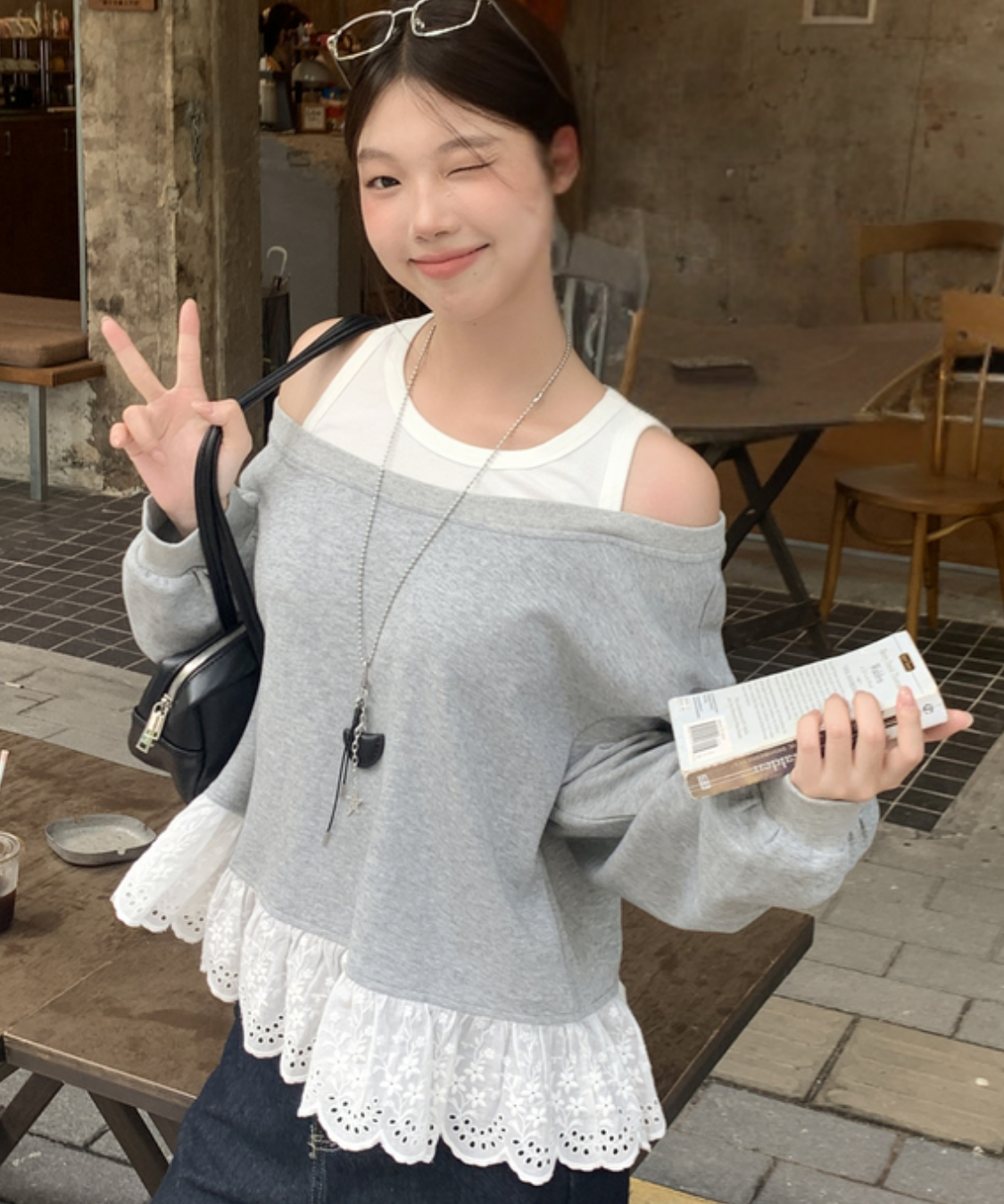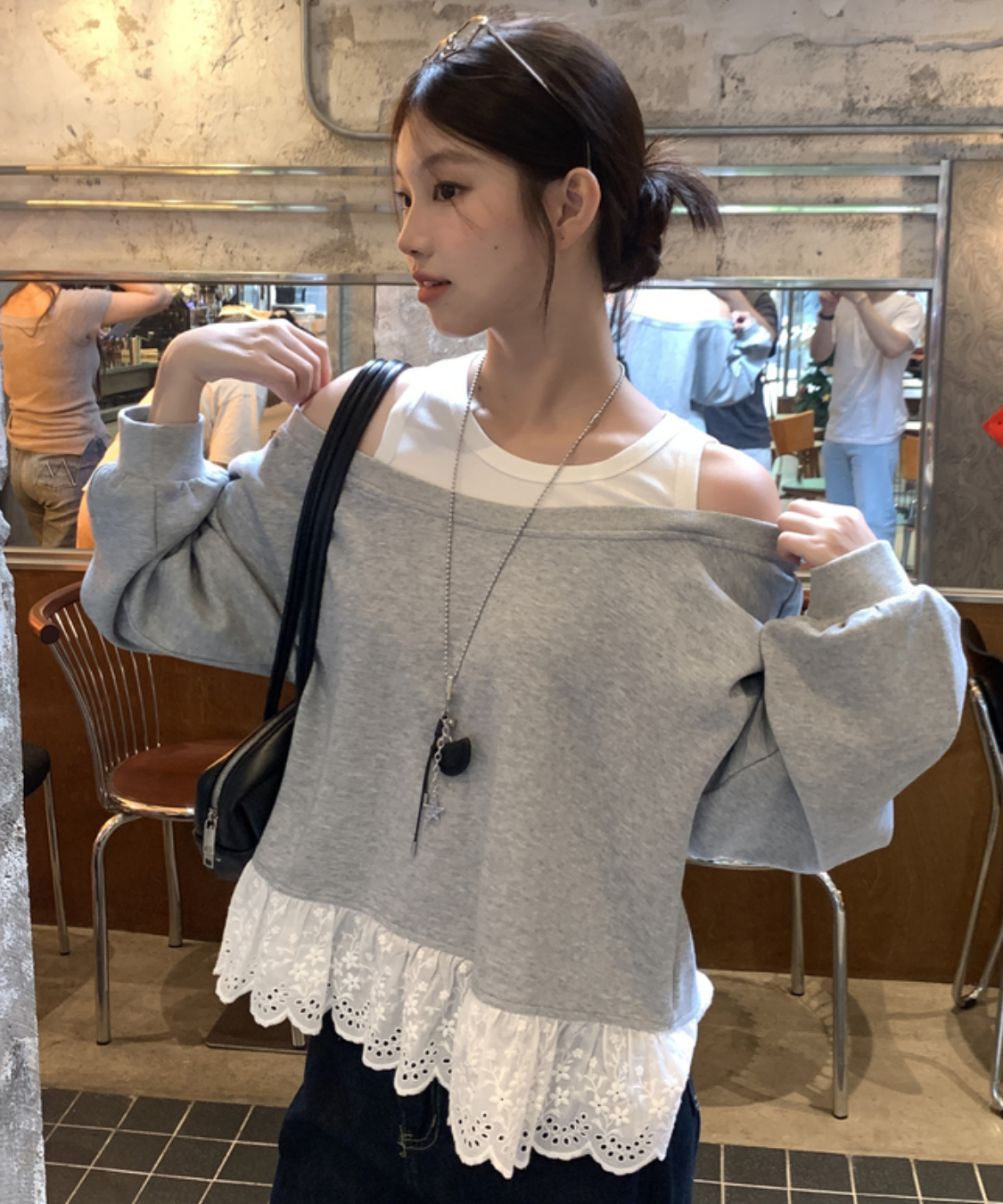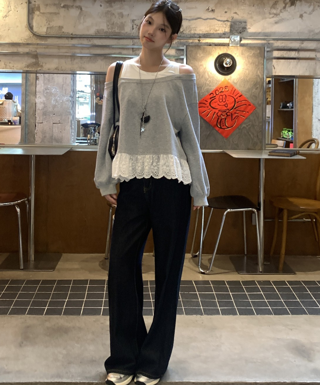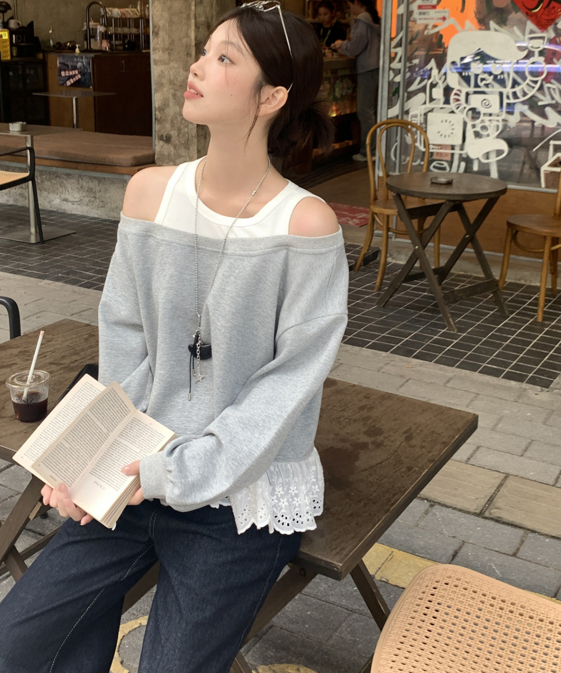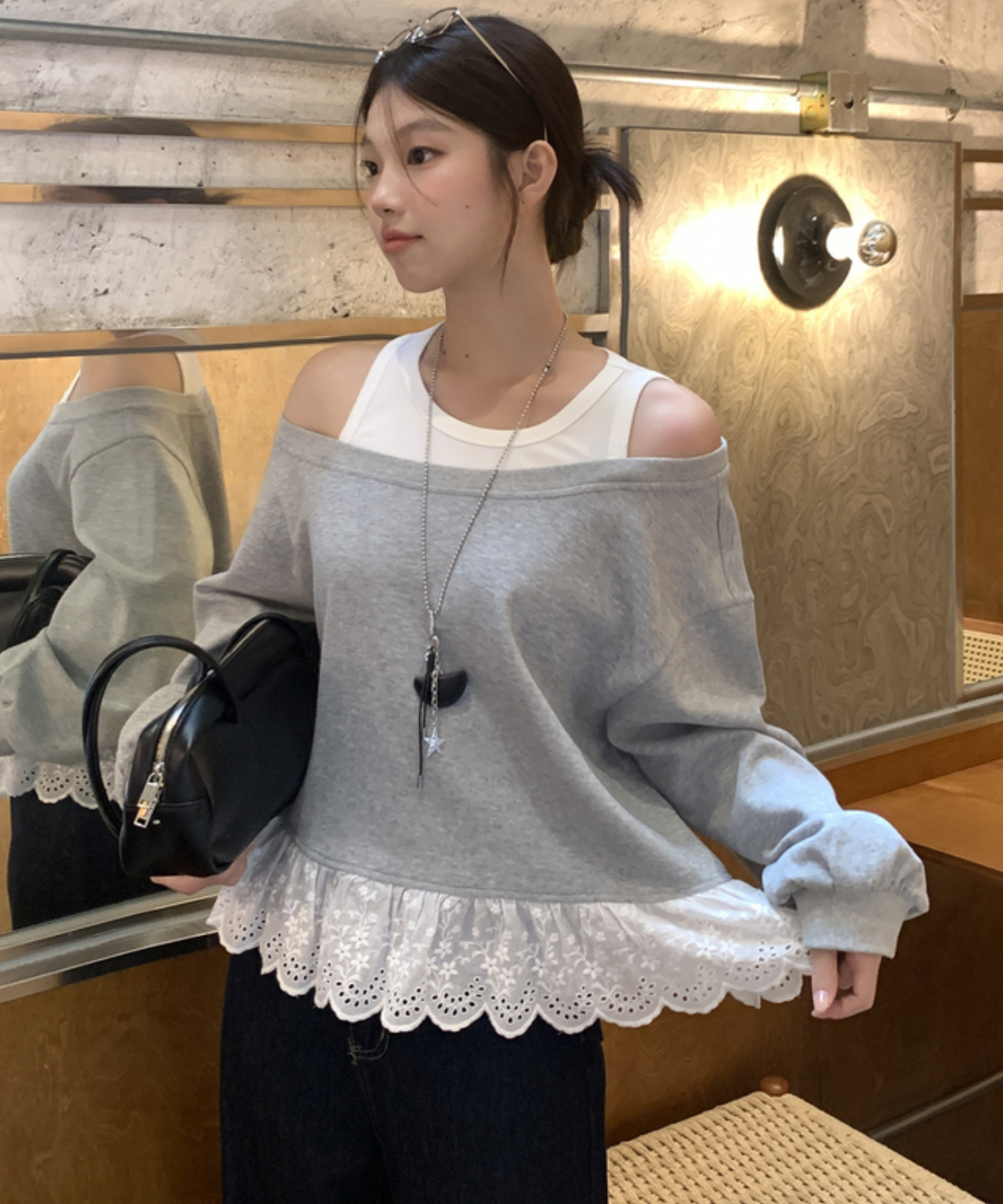 オフショル風の抜け感シルエットが可愛い、カジュアルガーリーなスウェットです。