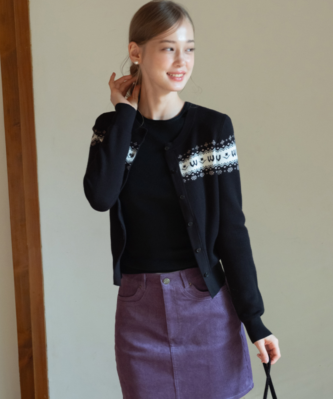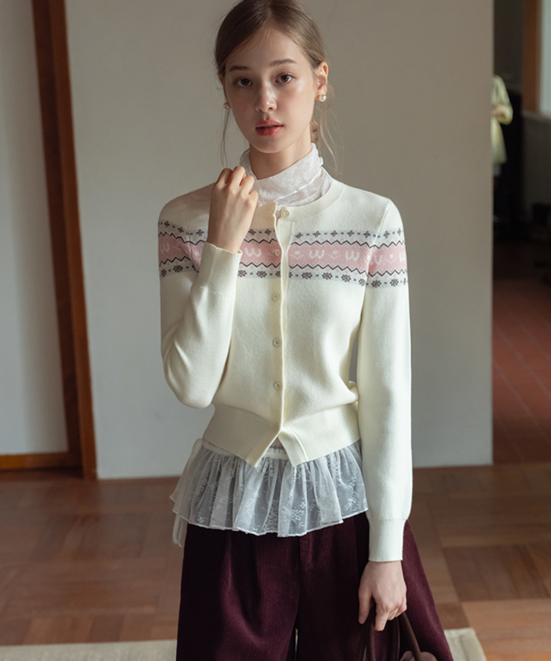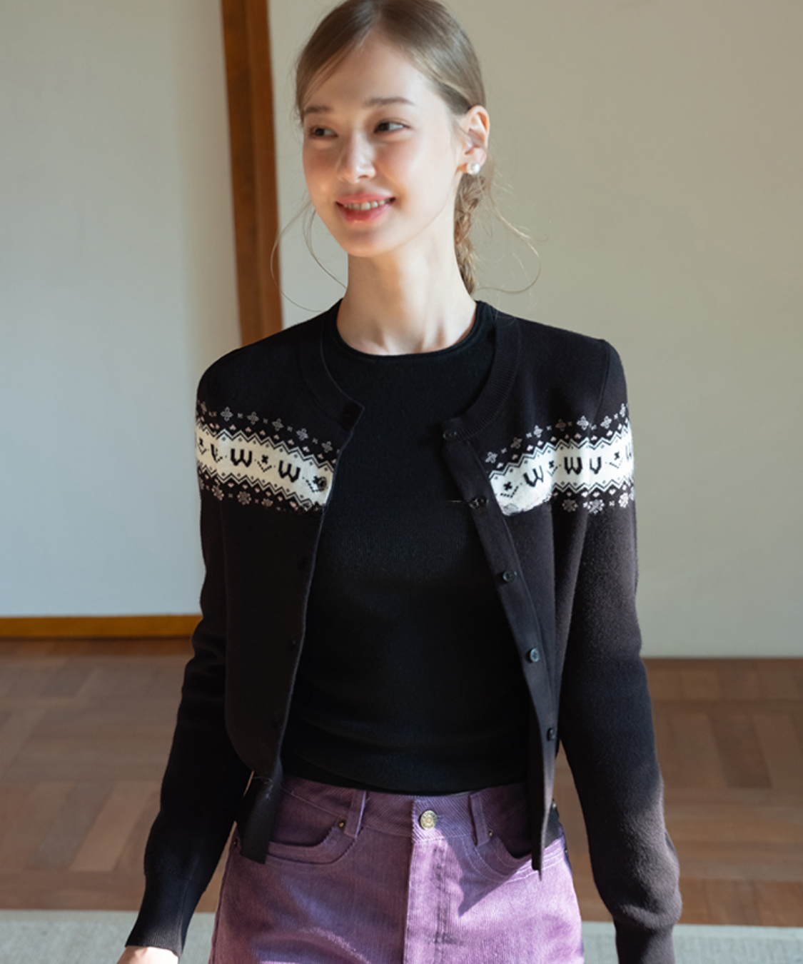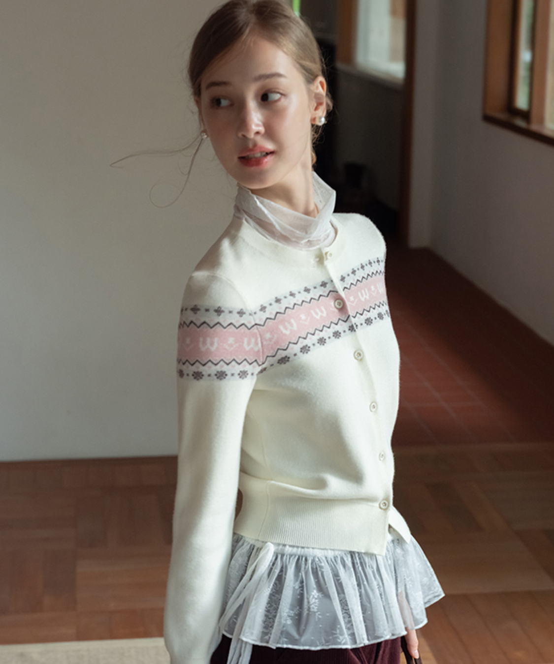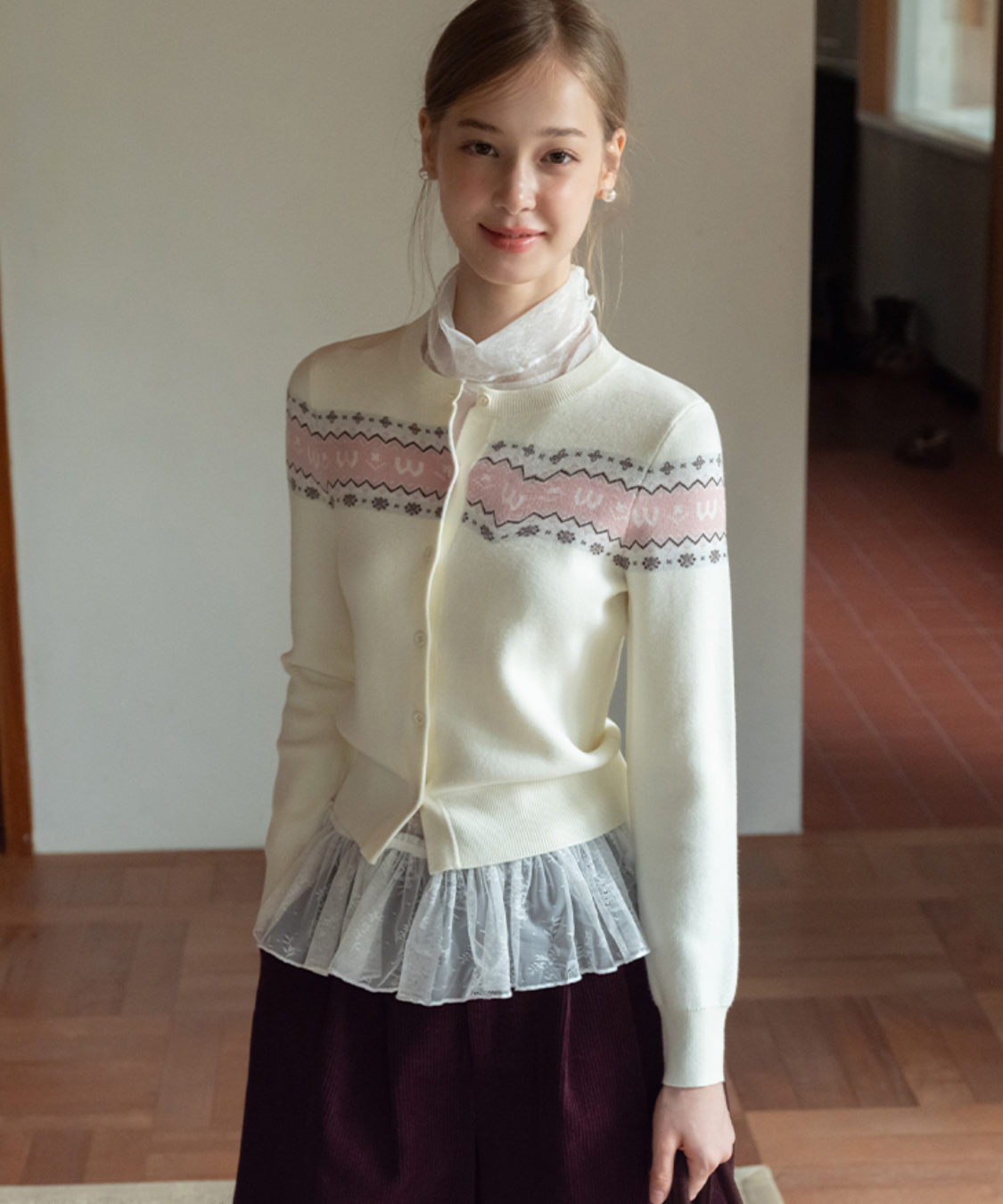クラシカルな雰囲気漂うフェアアイル柄が魅力のカーディガンです。