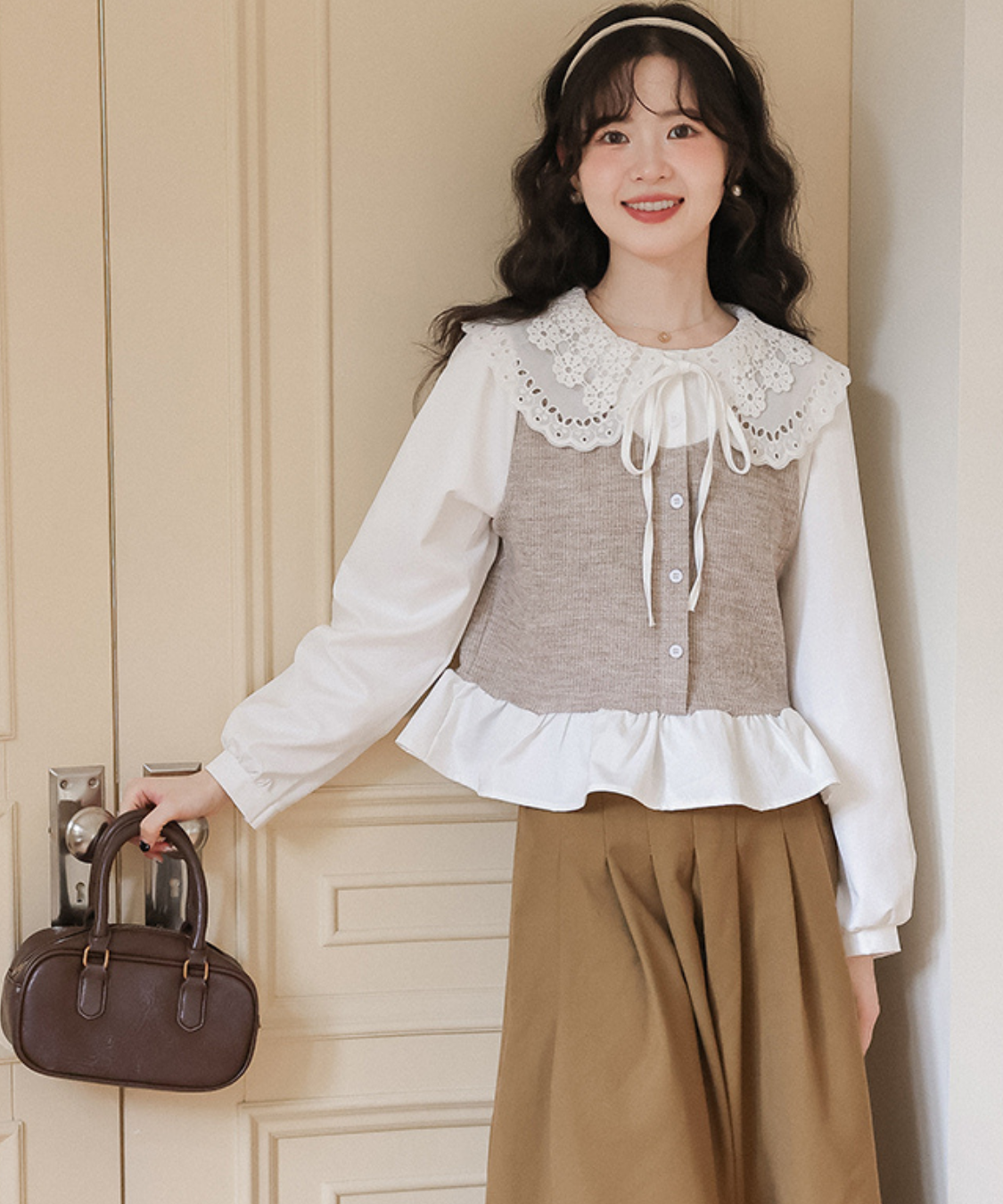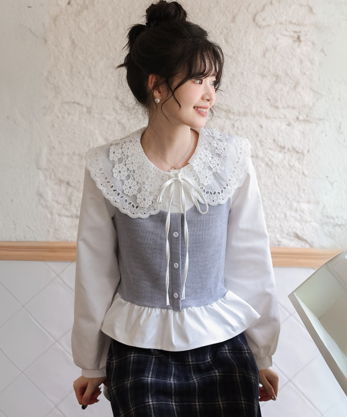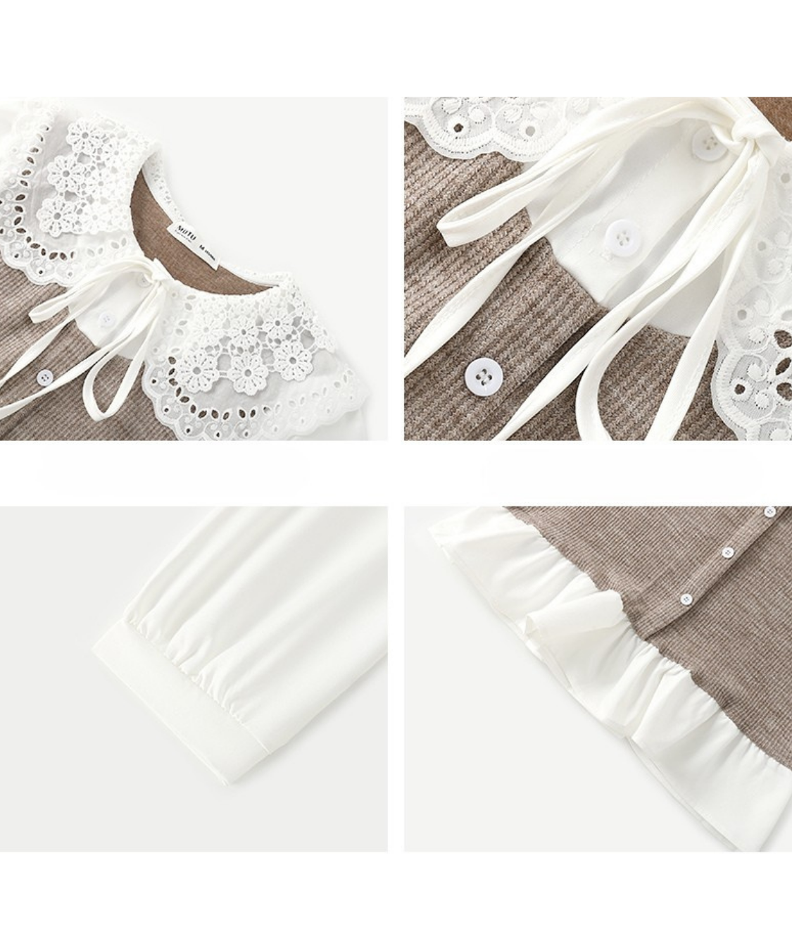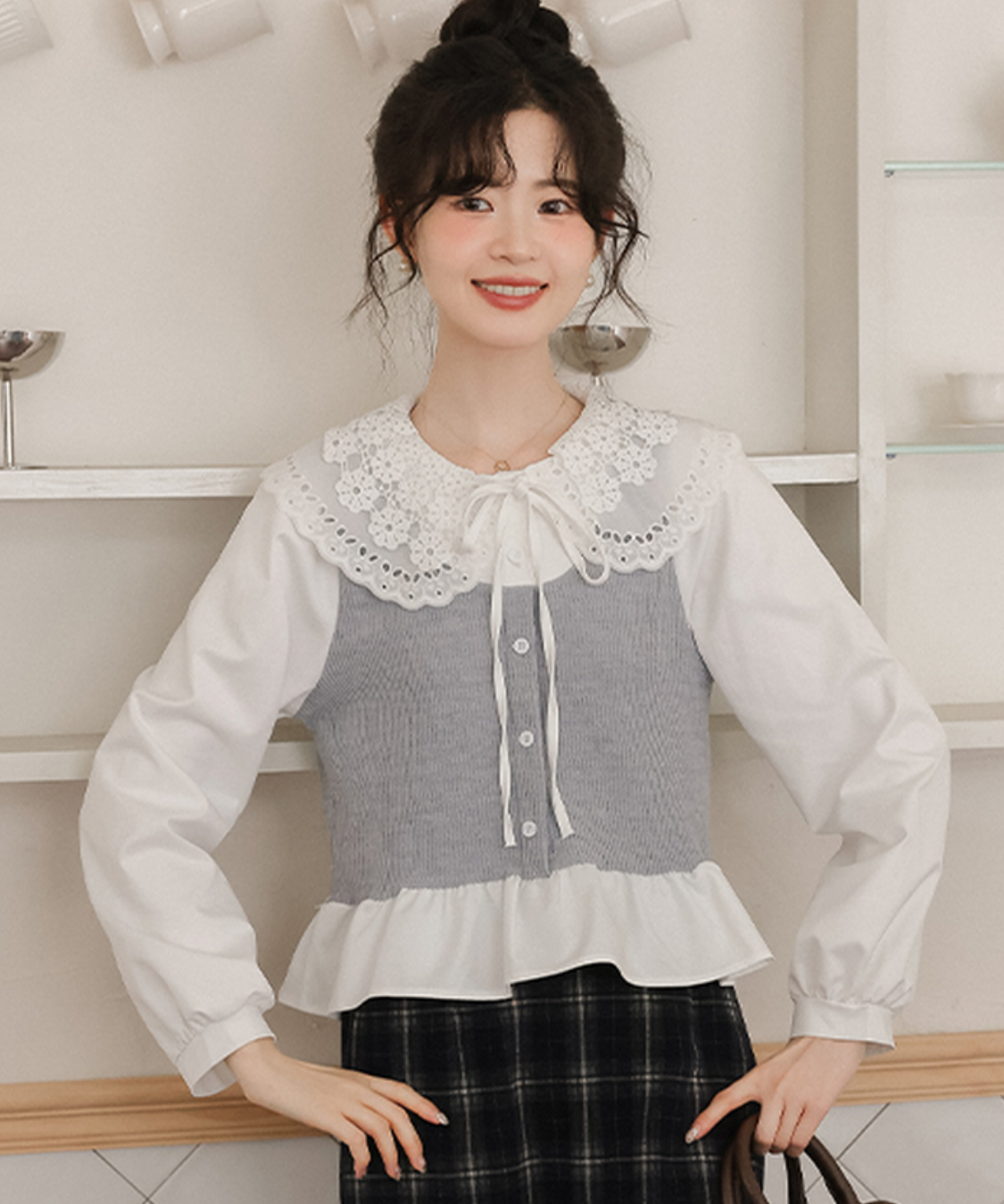 レースの襟とフリルの裾が本当に可愛くて、着るだけで即完成コーデ♡