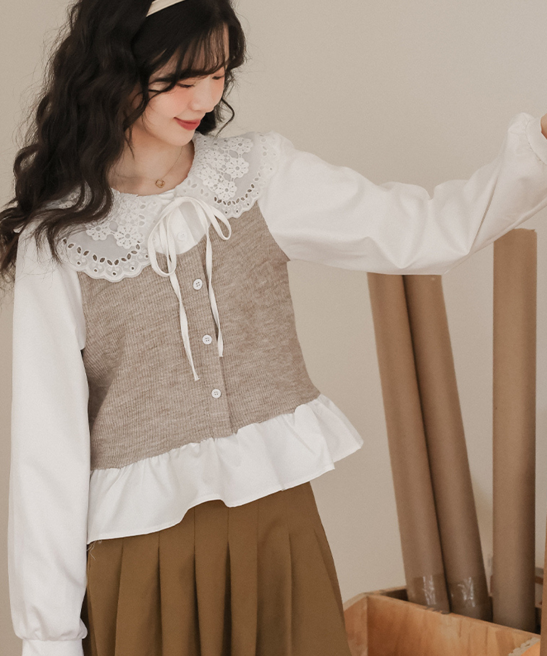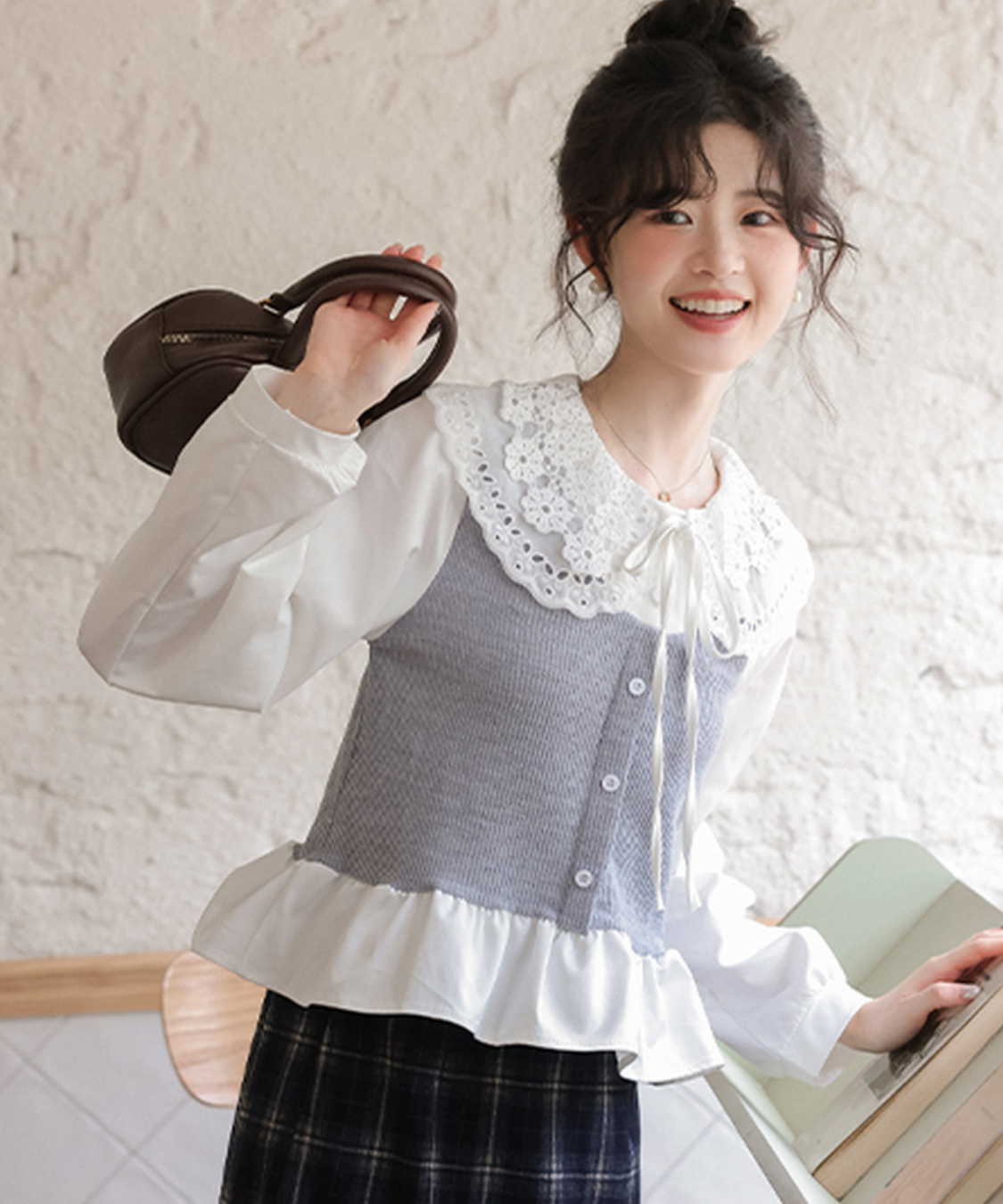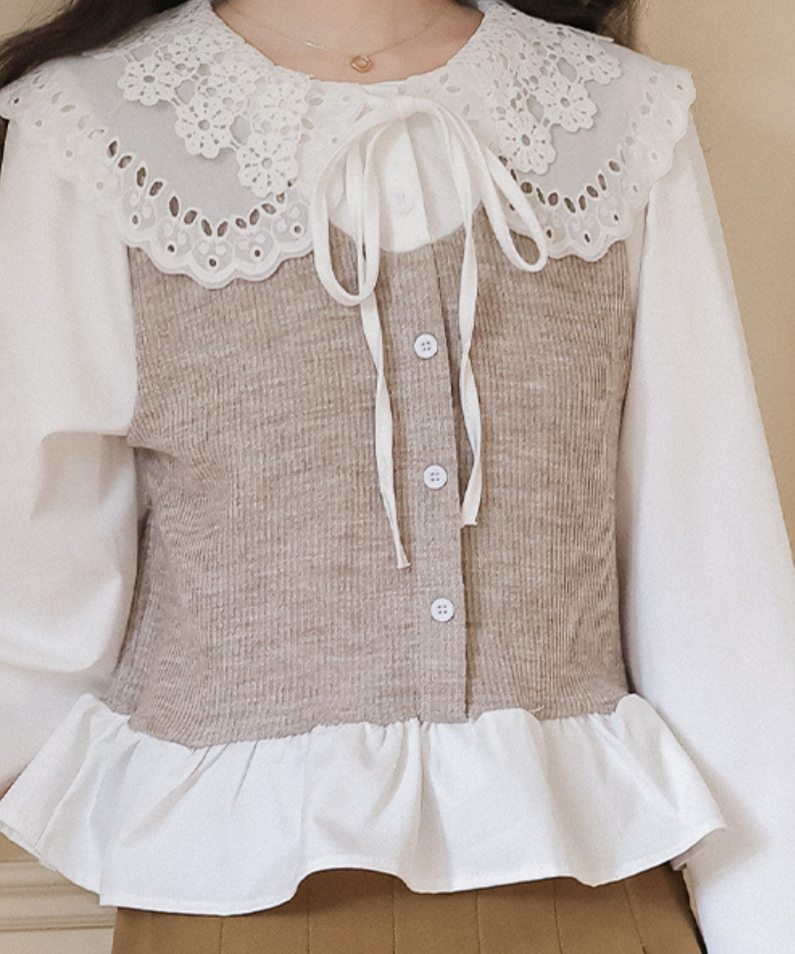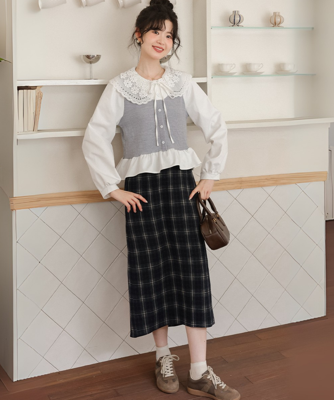 レースの襟とフリルの裾が本当に可愛くて、着るだけで即完成コーデ♡