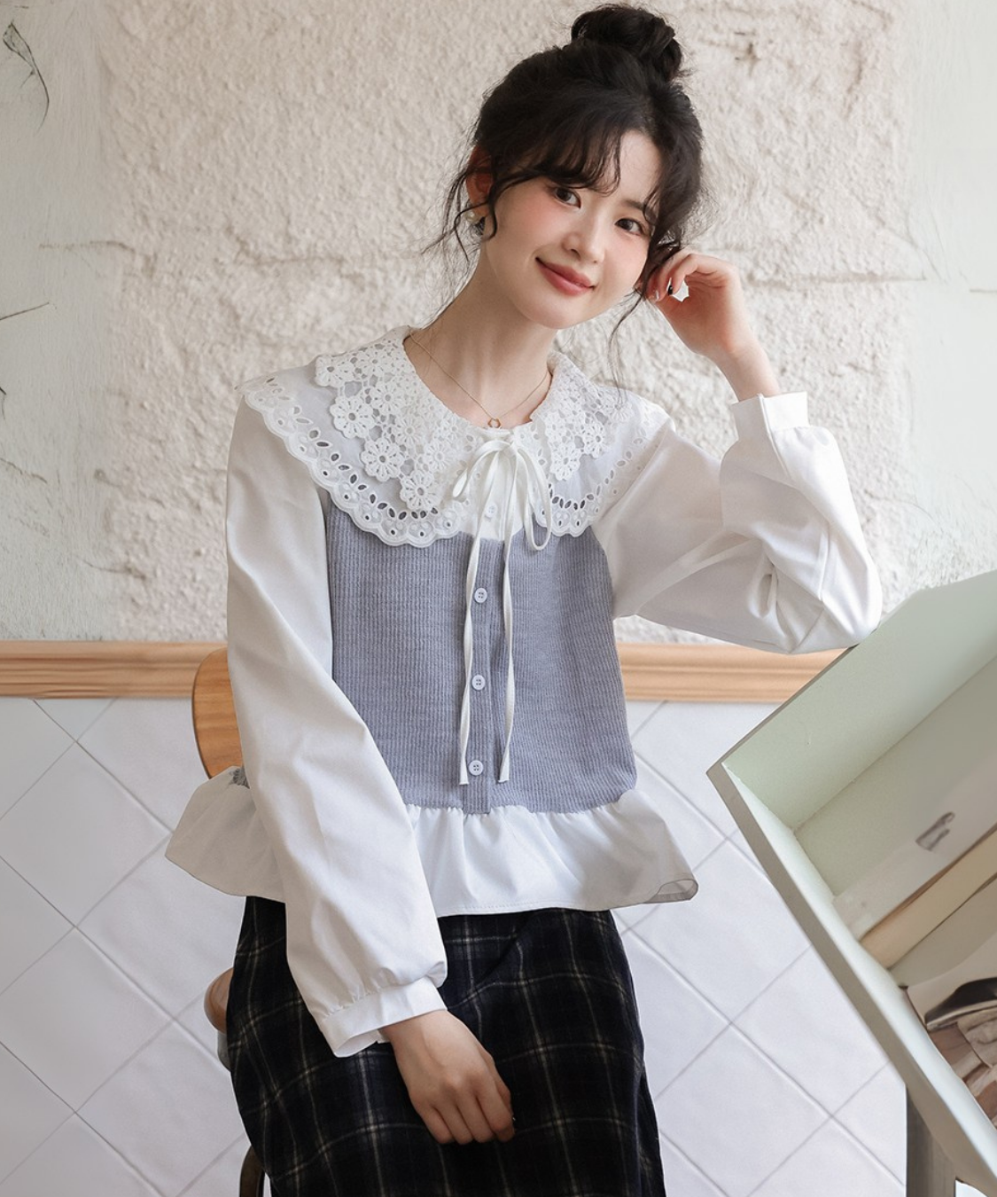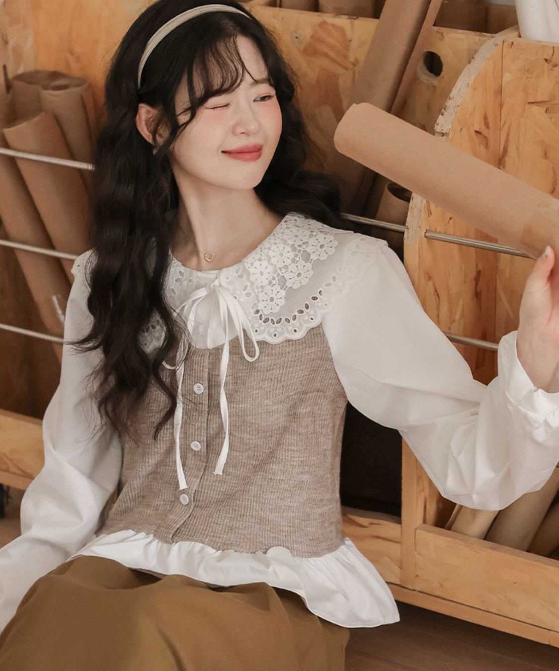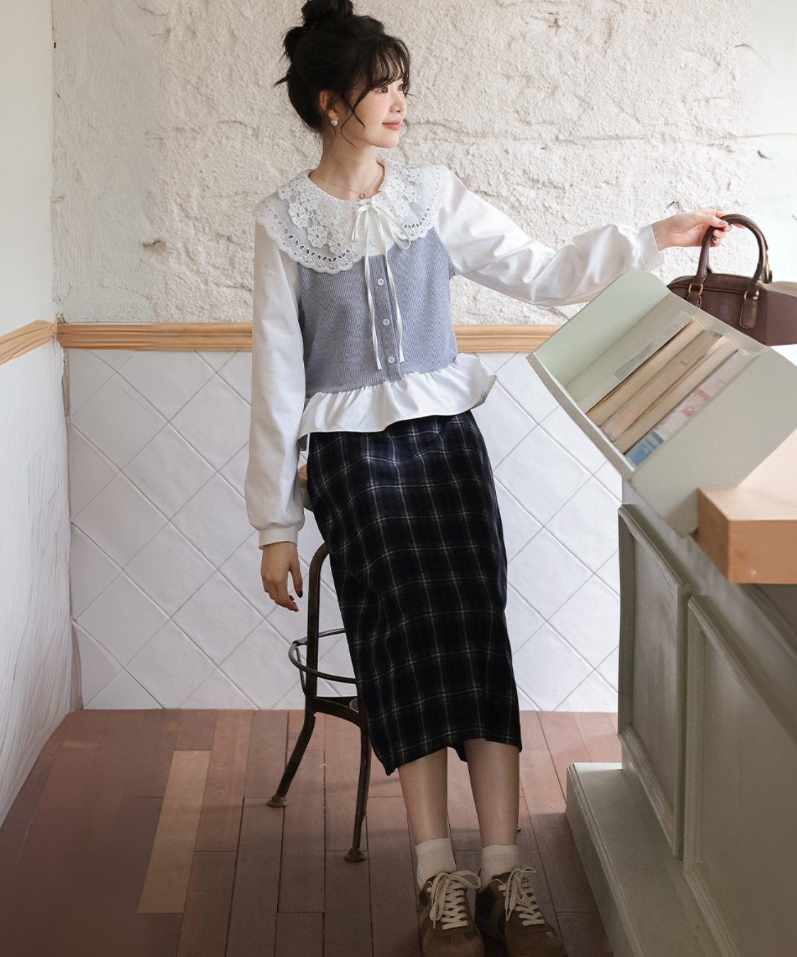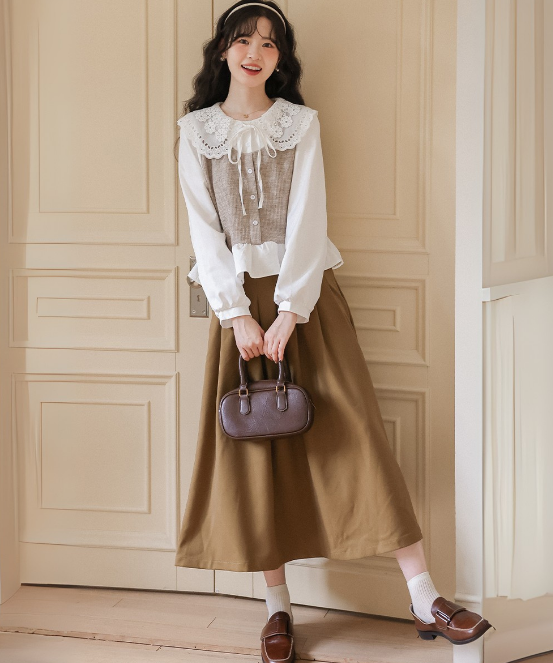 レースの襟とフリルの裾が本当に可愛くて、着るだけで即完成コーデ♡
