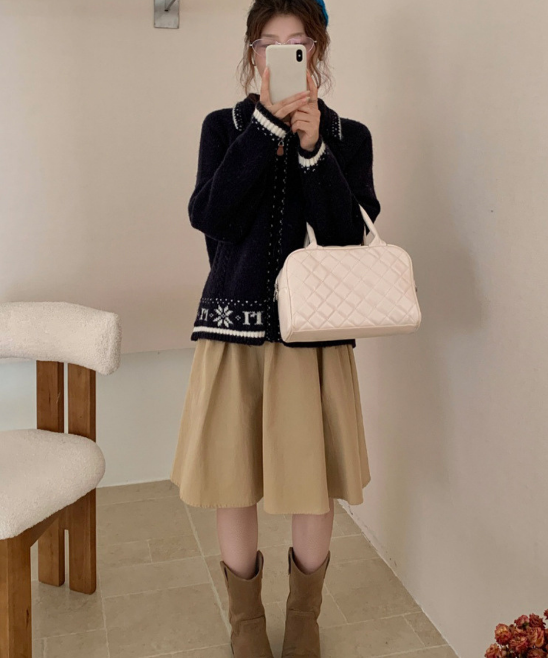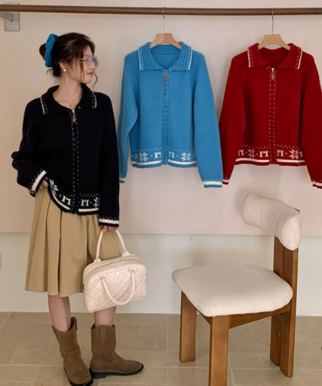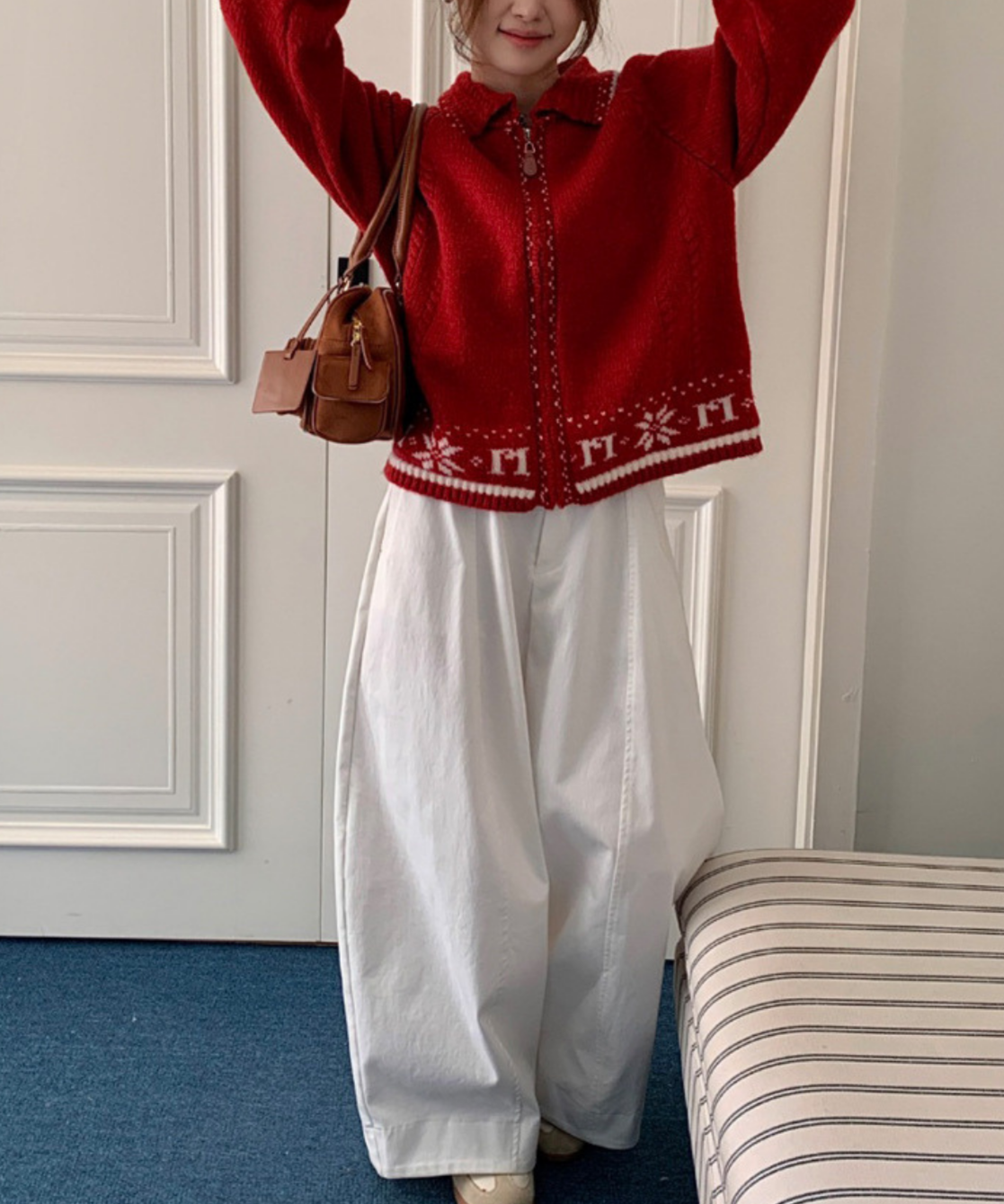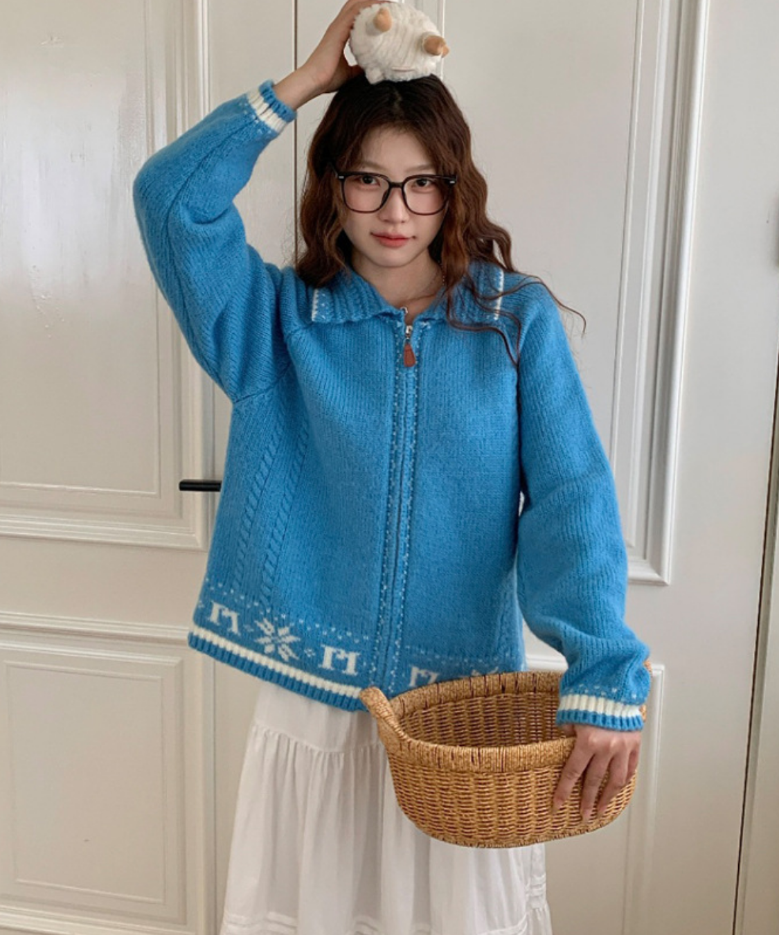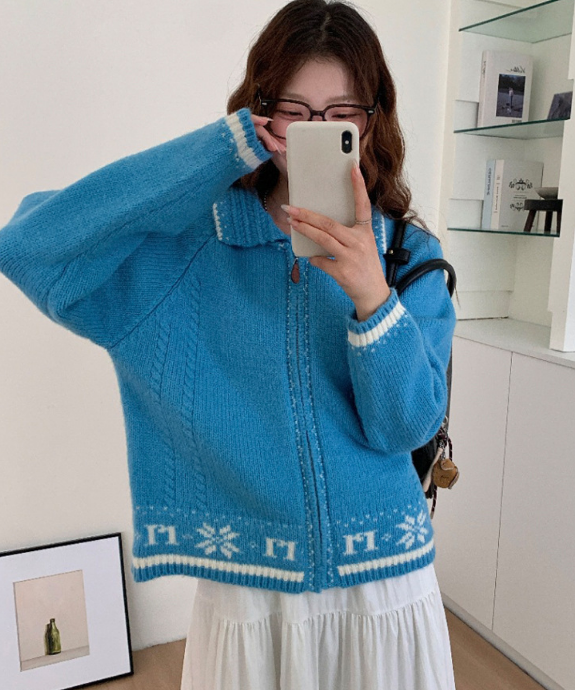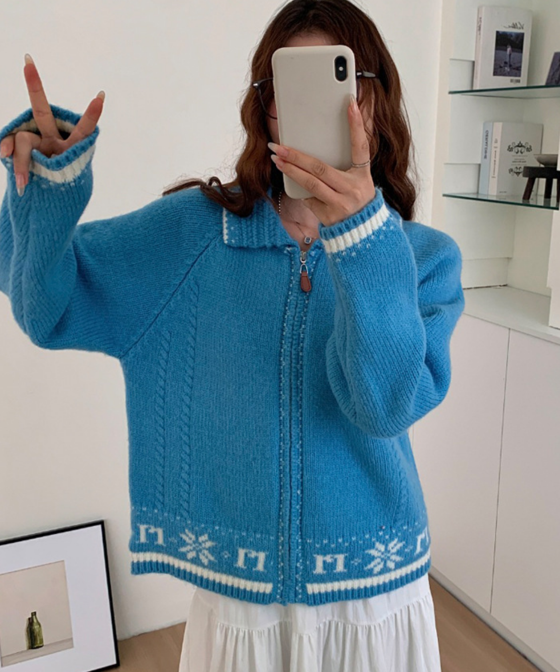 ノルディック柄と配色ラインがシーズンムードを高めてくれるニットカーディガンです。