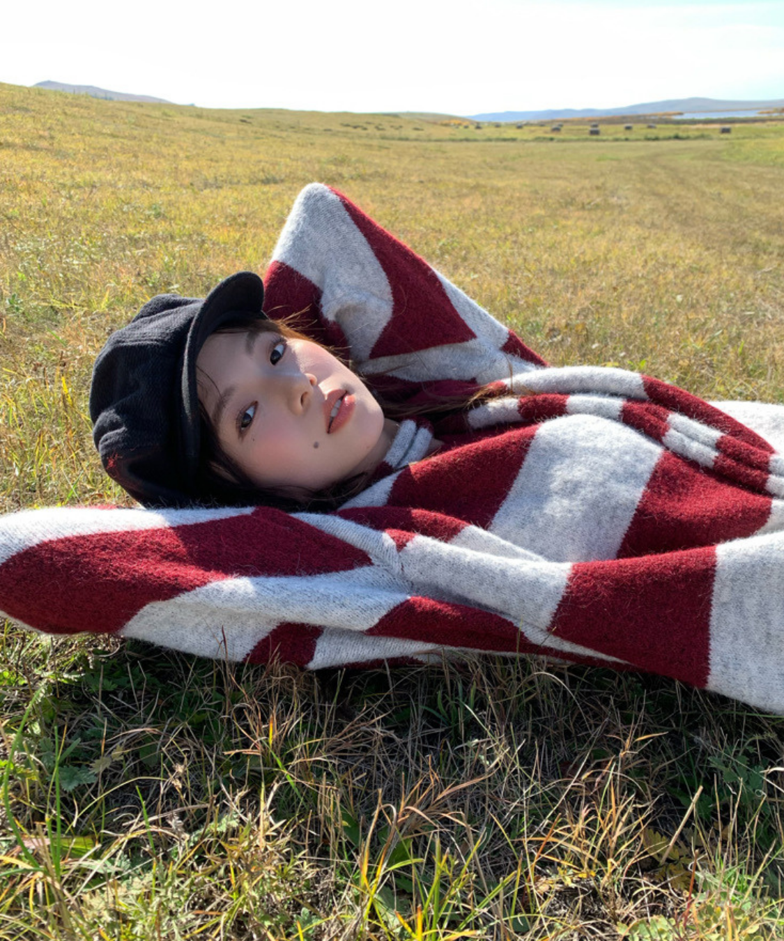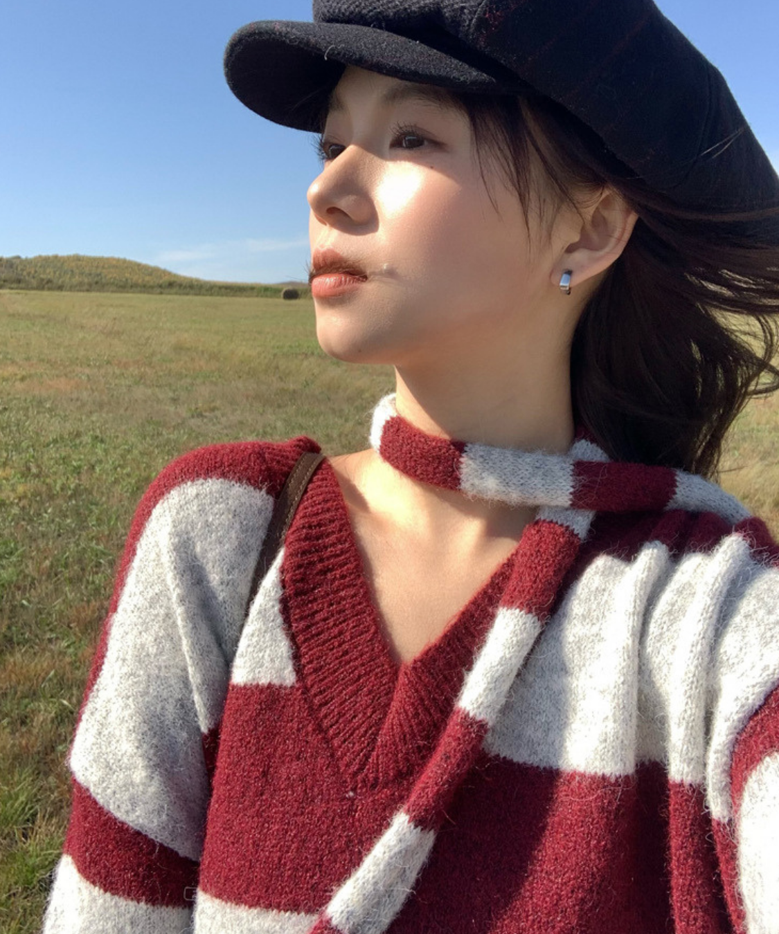 Vネックルーズボーダーニット