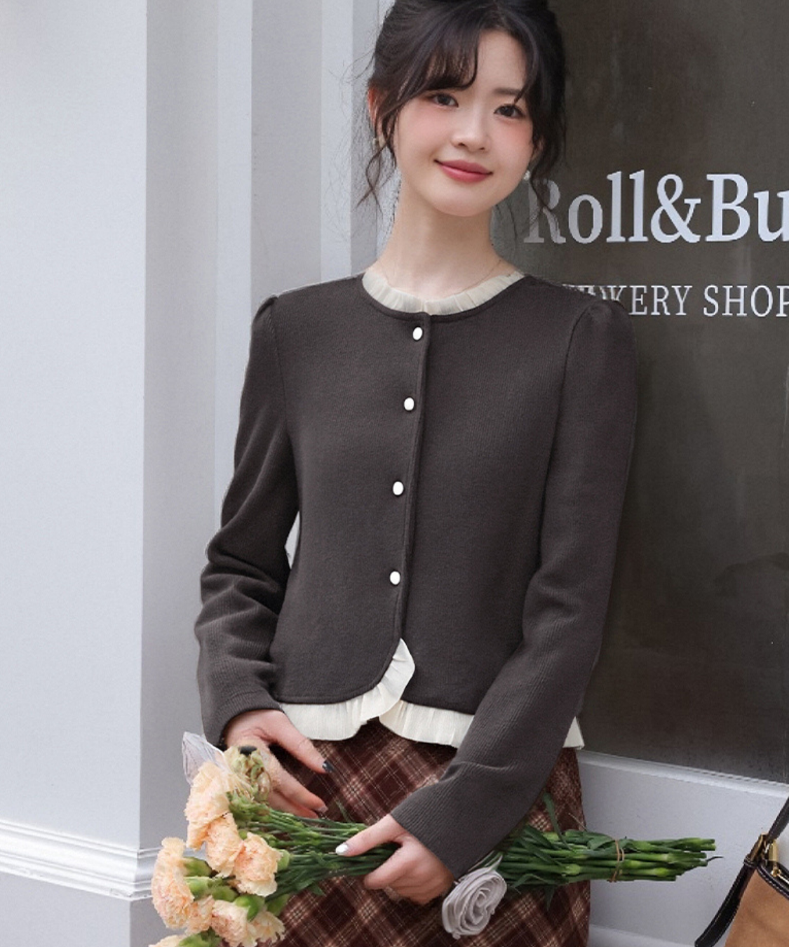 丸みのあるシルエットとフリルが上品な印象を与えてくれるカーディガンです。