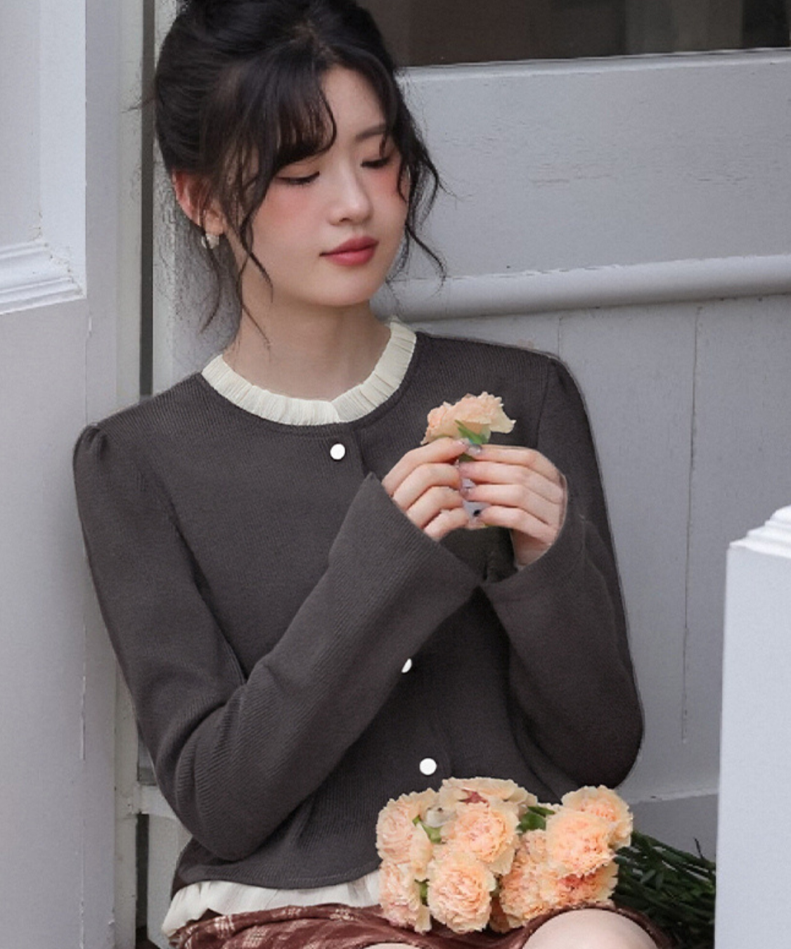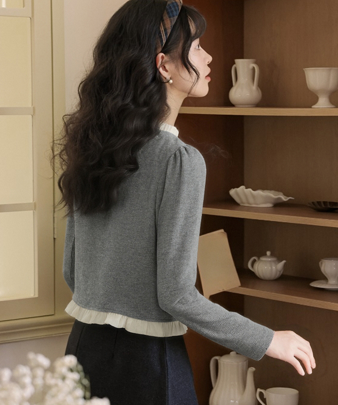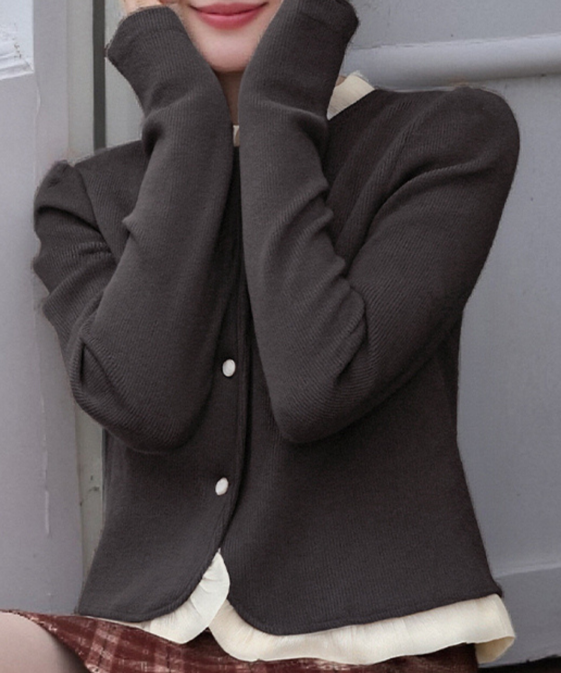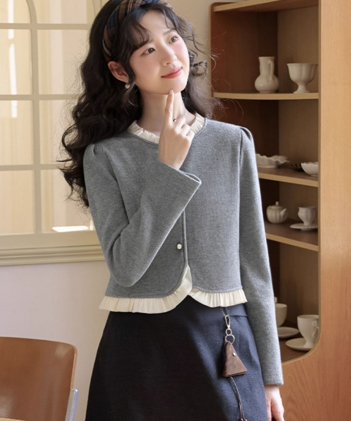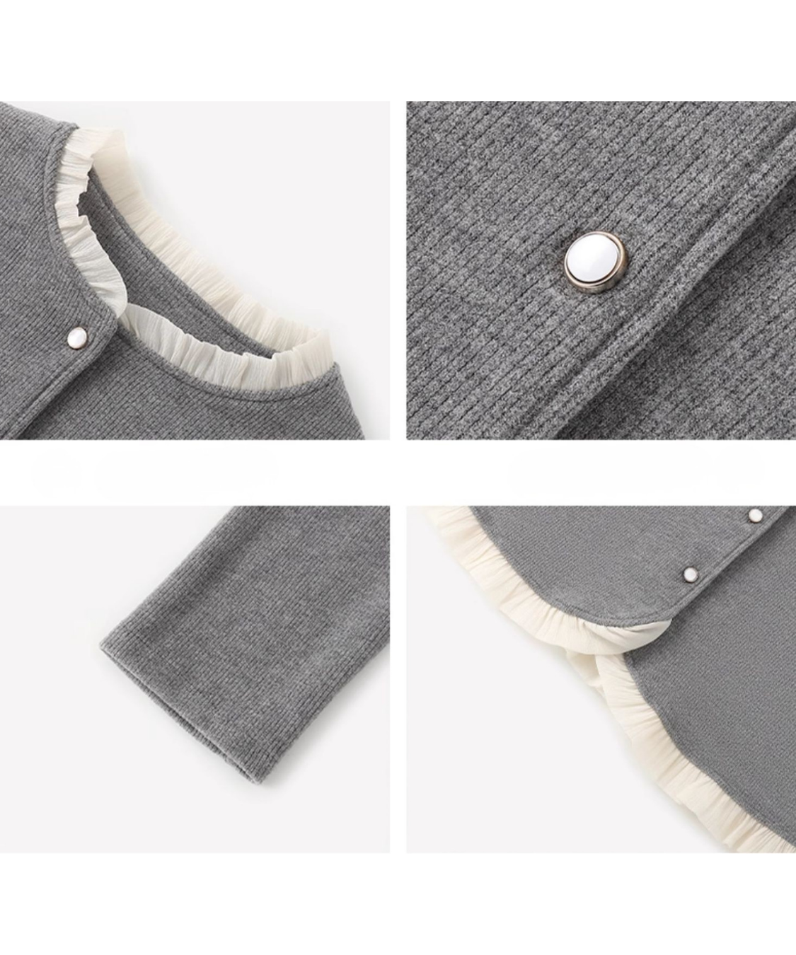 クルーネックフリルデザインカーディガン
