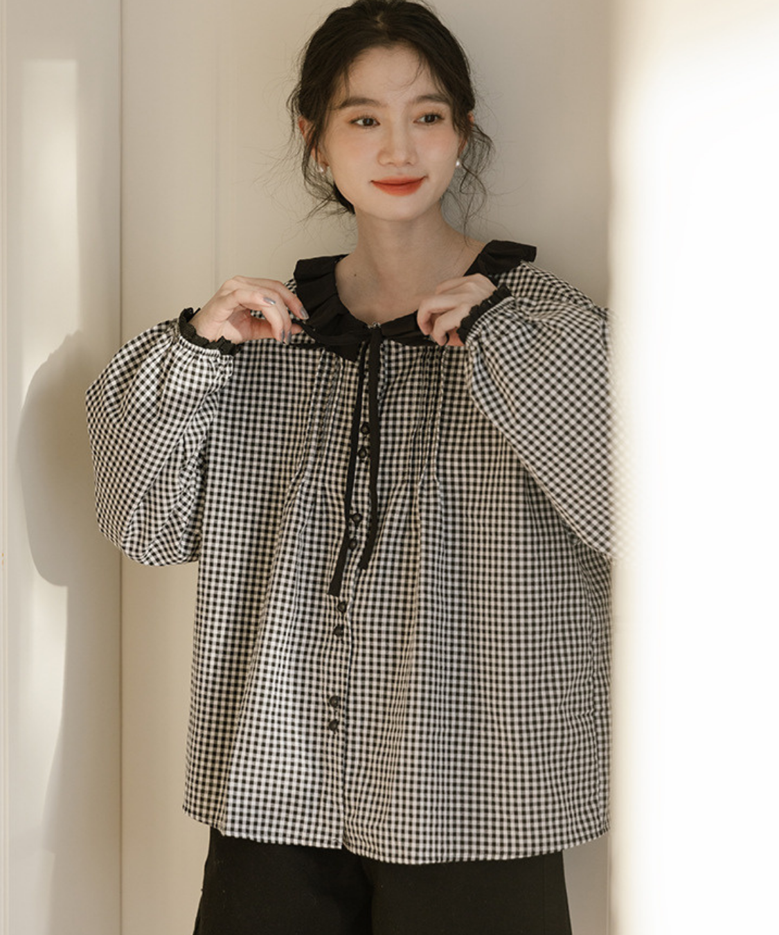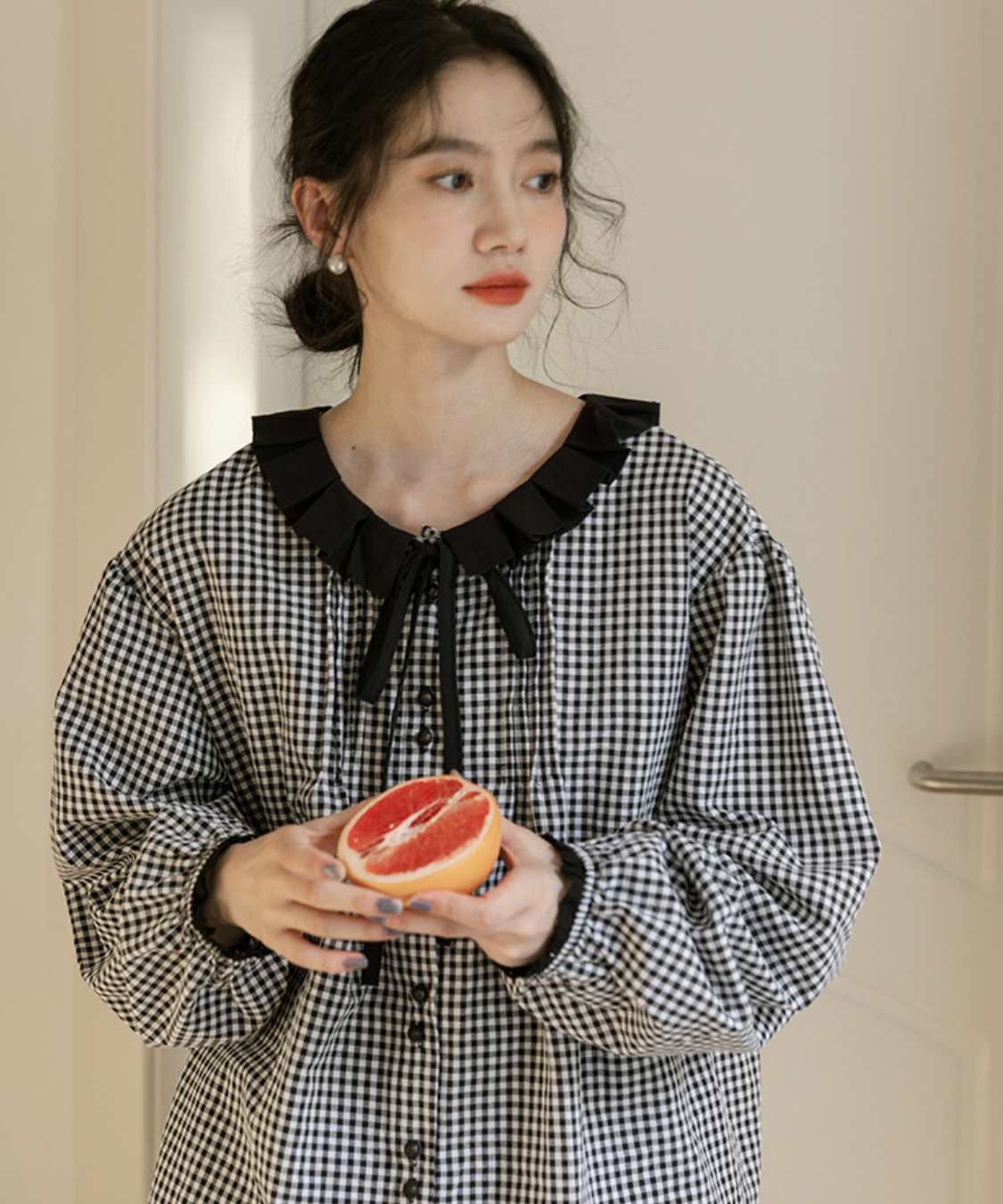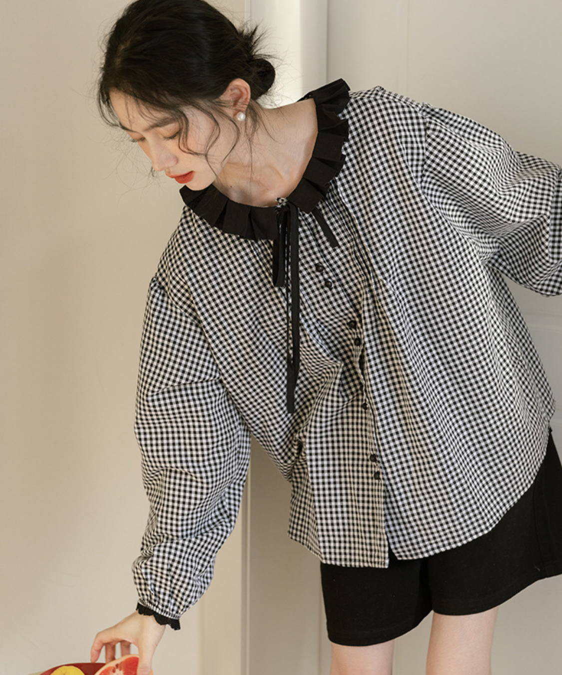 カジュアルな中にほんのり甘さを感じるギンガムチェックのブラウスです。