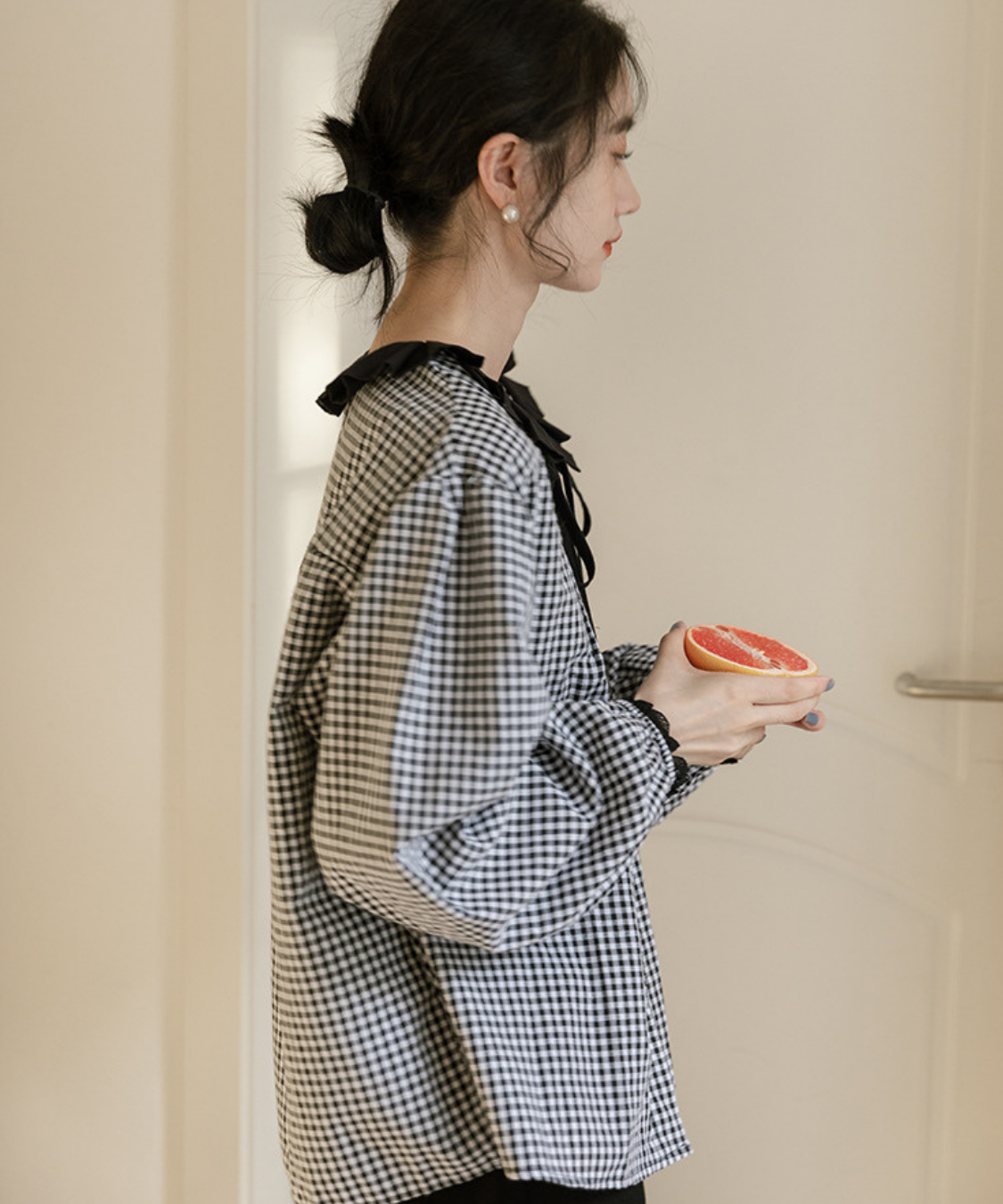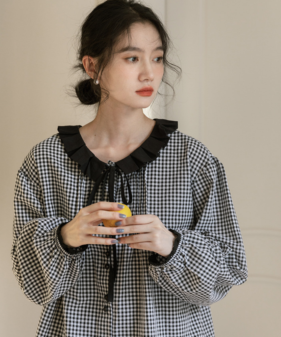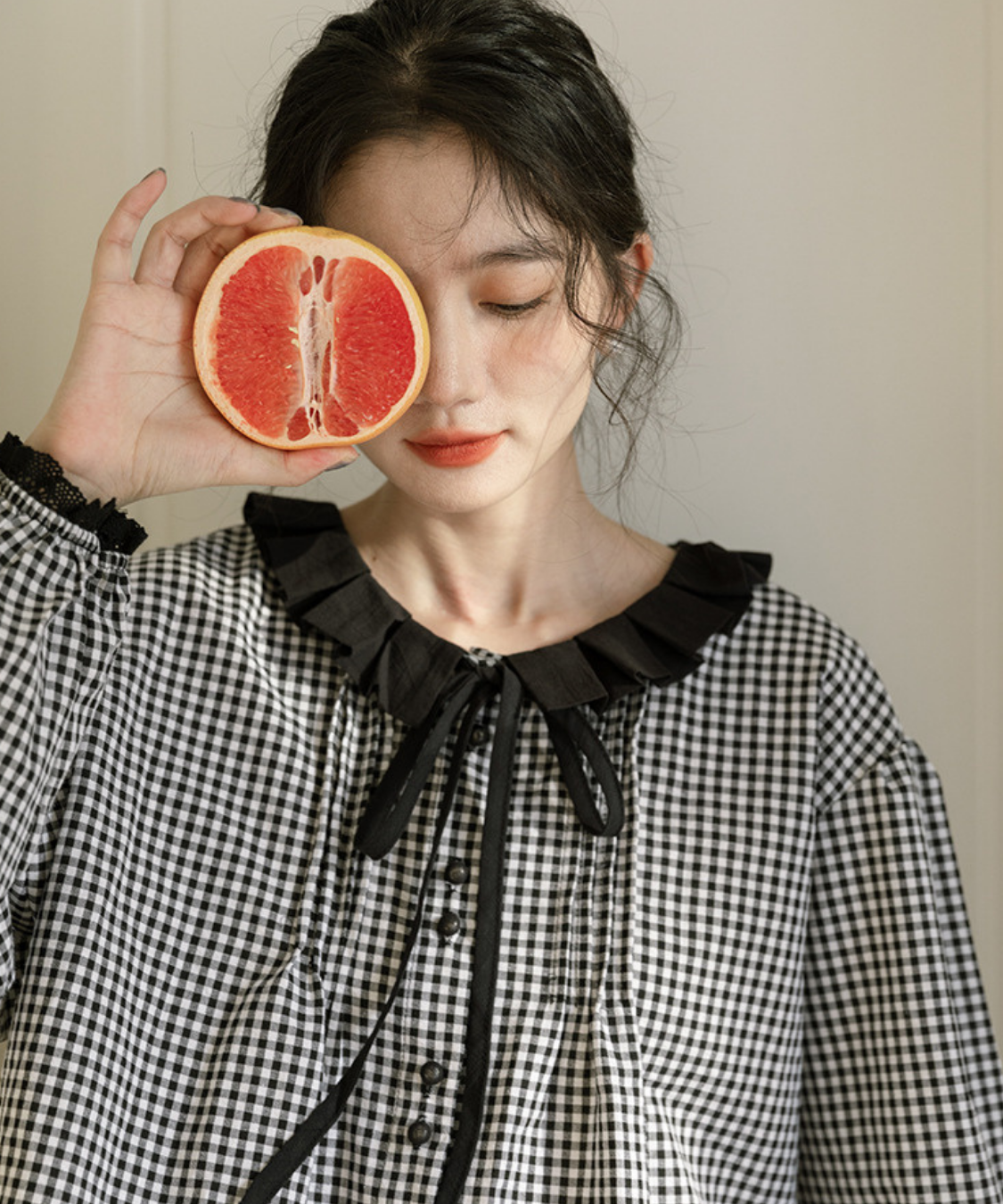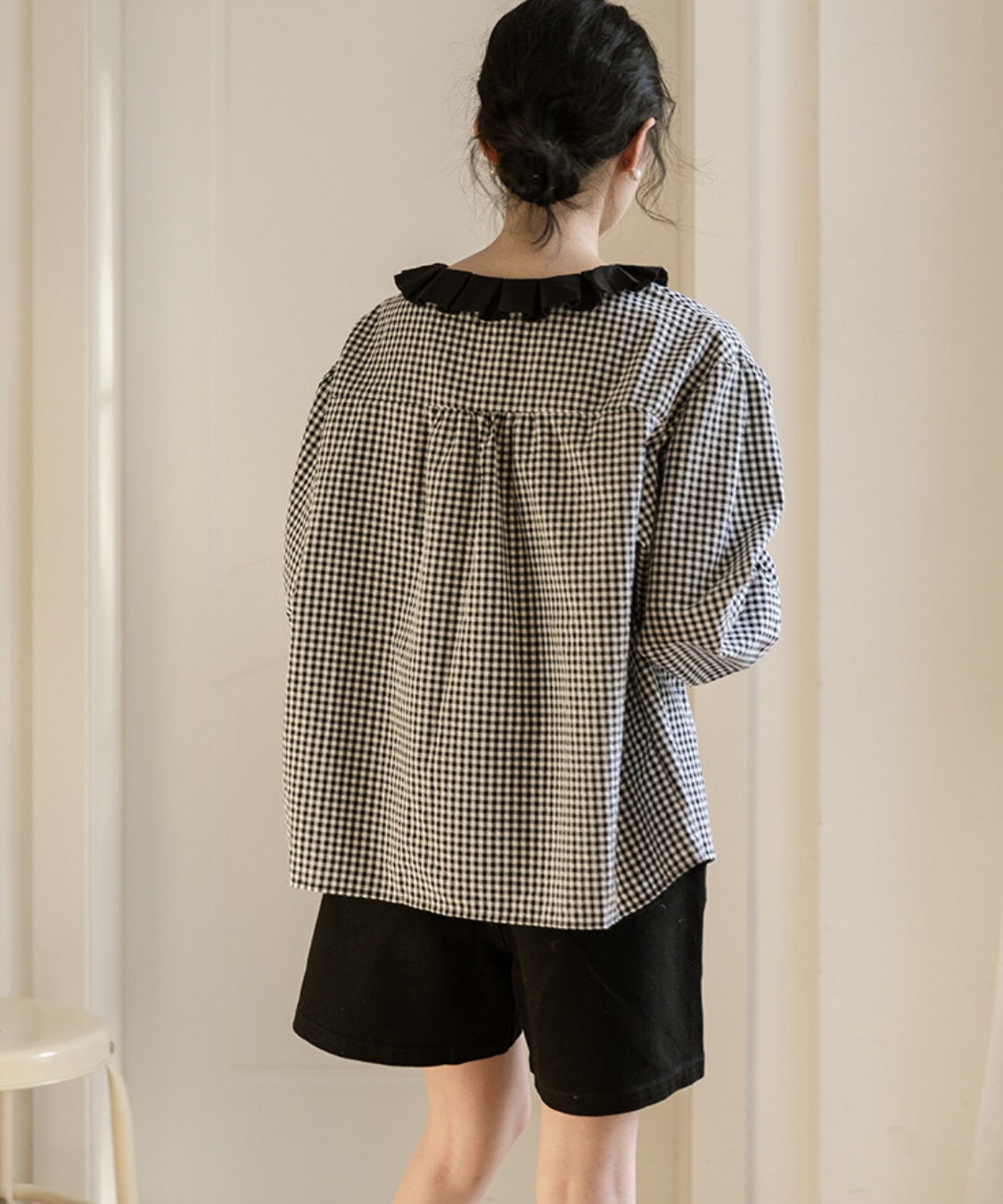 カジュアルな中にほんのり甘さを感じるギンガムチェックのブラウスです。