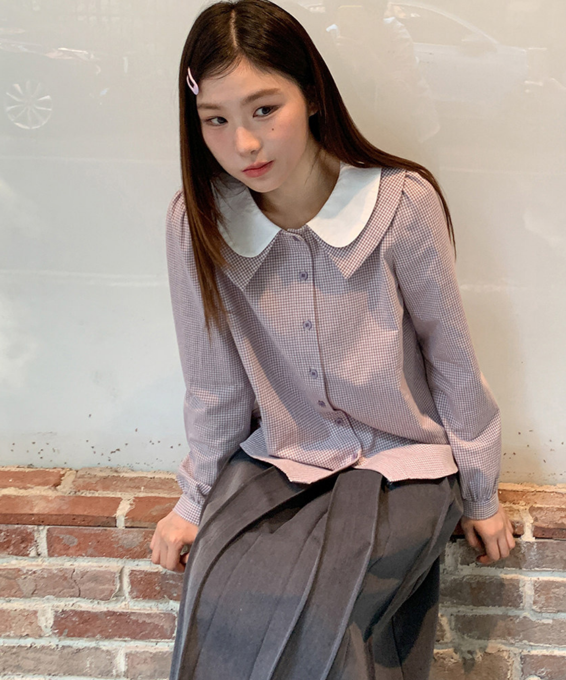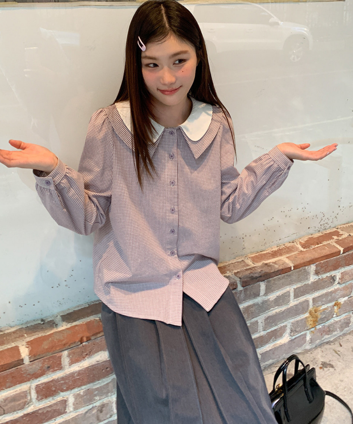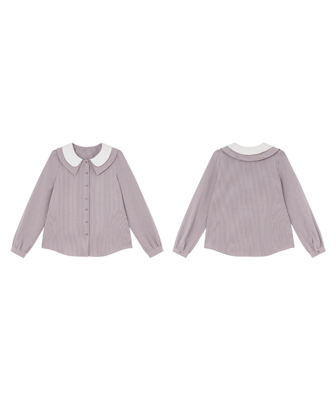 丸みのあるダブルカラーが可愛らしいアクセントになった、ガーリーなブラウスです。