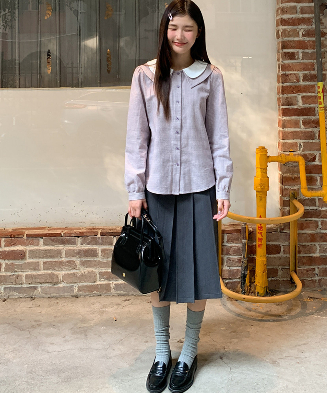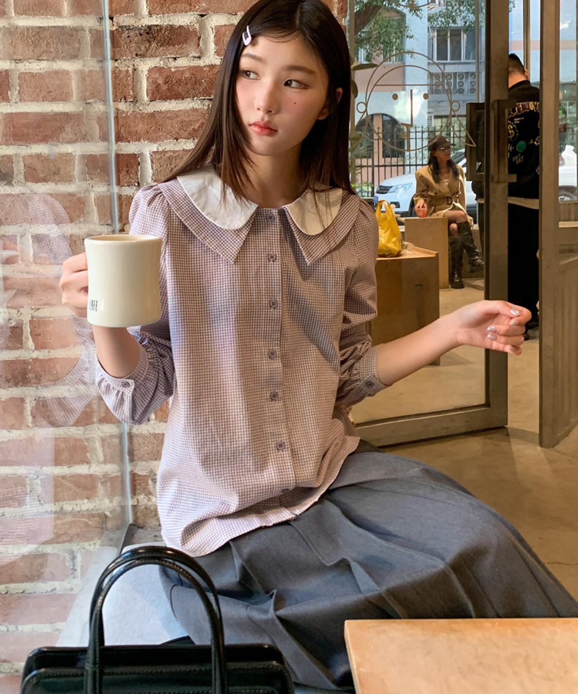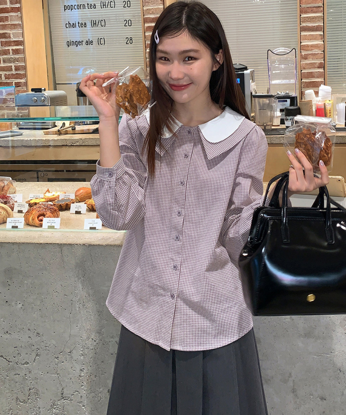 丸みのあるダブルカラーが可愛らしいアクセントになった、ガーリーなブラウスです。